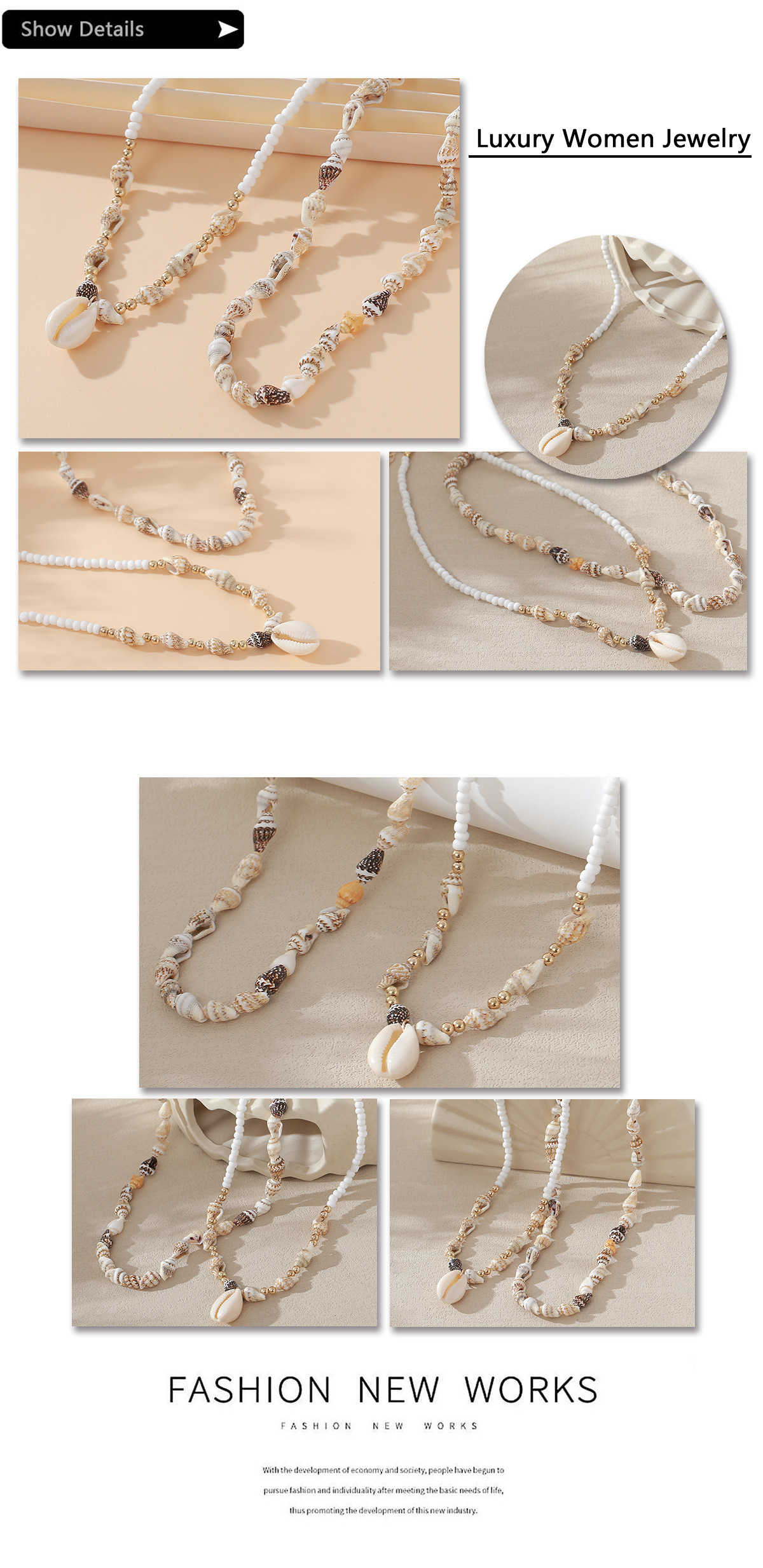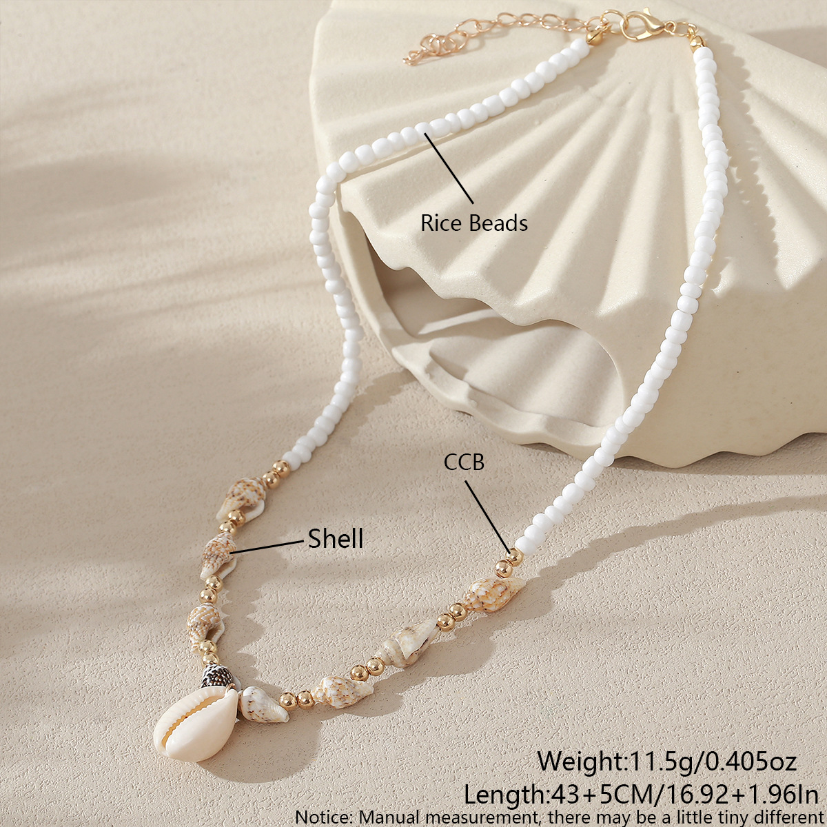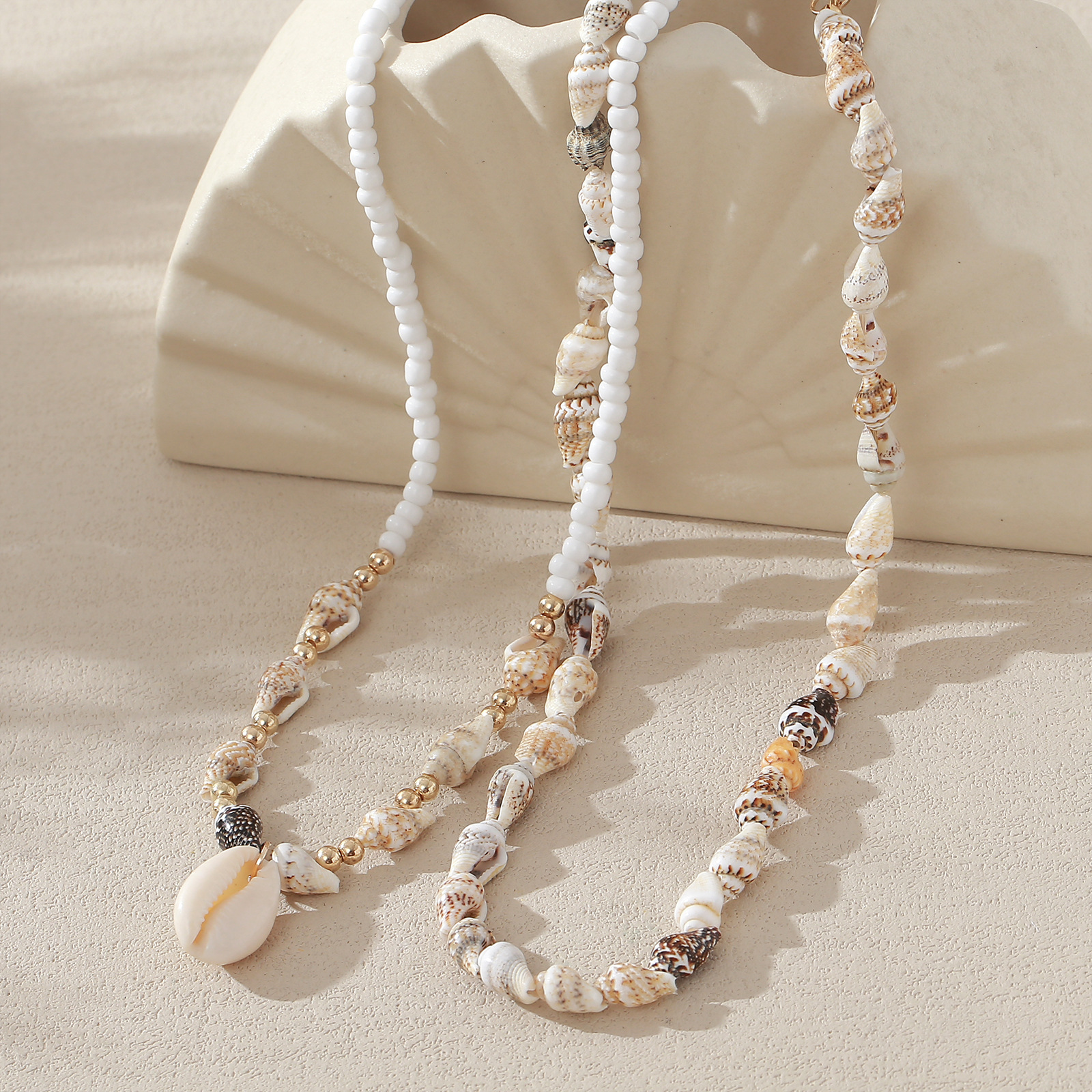 欧美跨境首饰串珠项链沙滩天然贝壳海螺项链沙滩度假风吊坠锁骨链