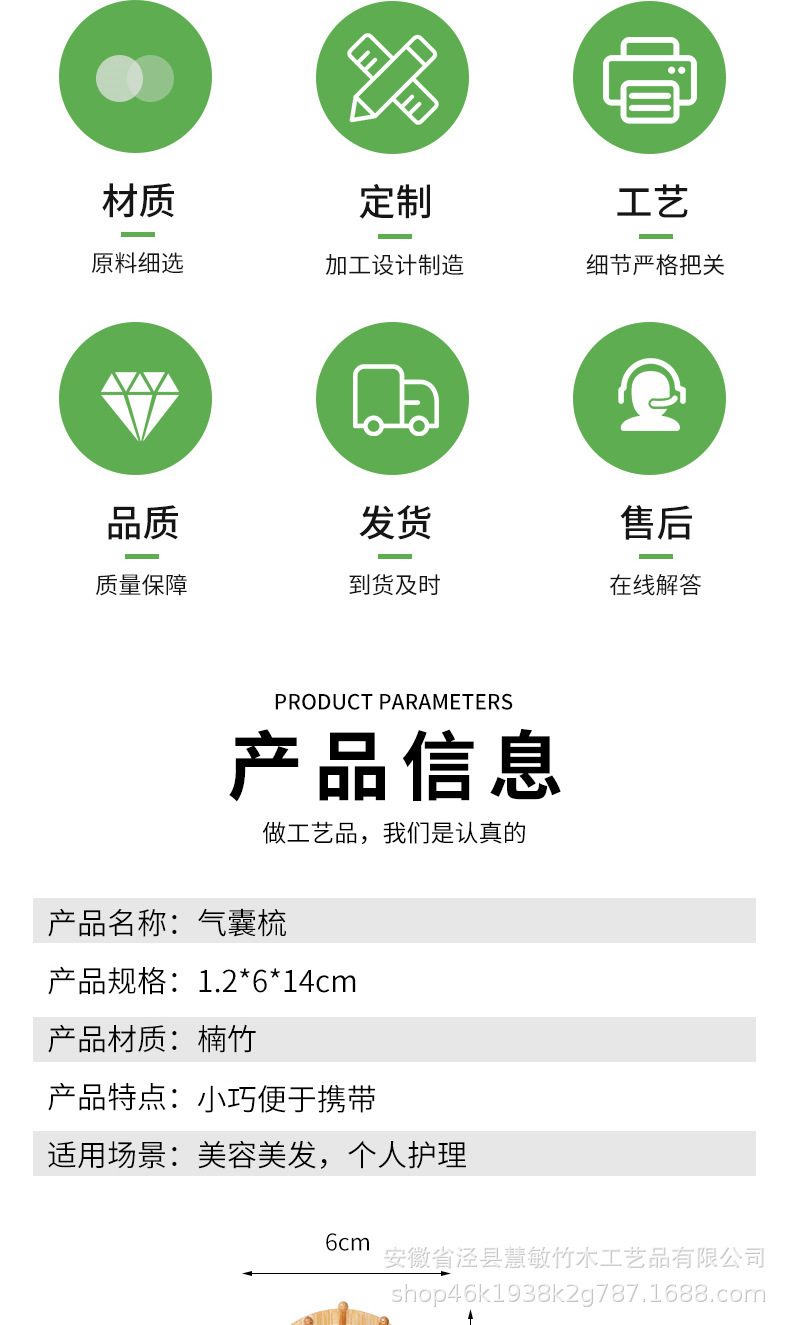 迷你楠竹气囊梳儿童梳便携按摩防静电顺发美发气垫梳木梳可定制