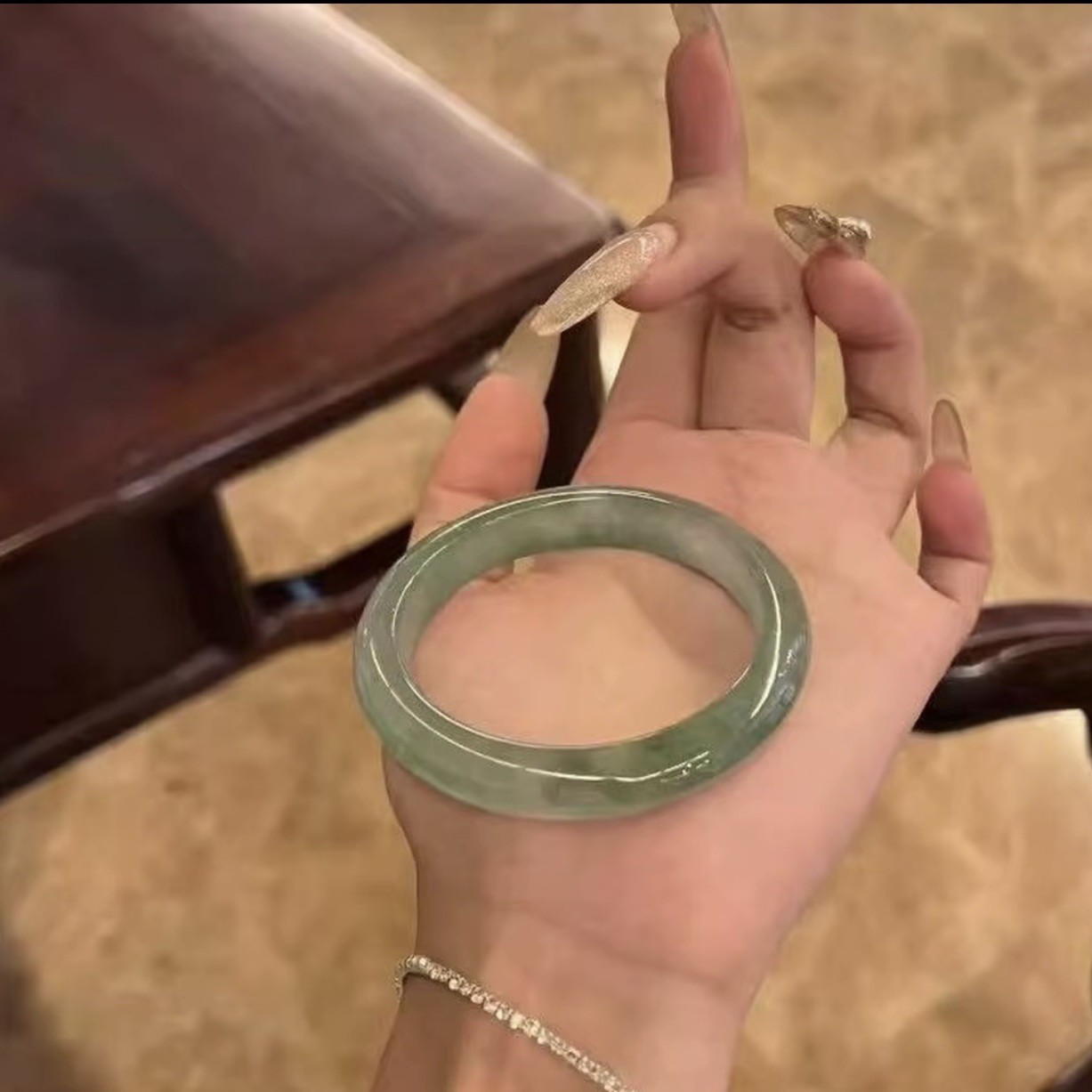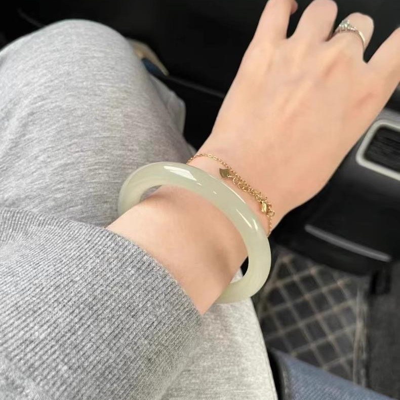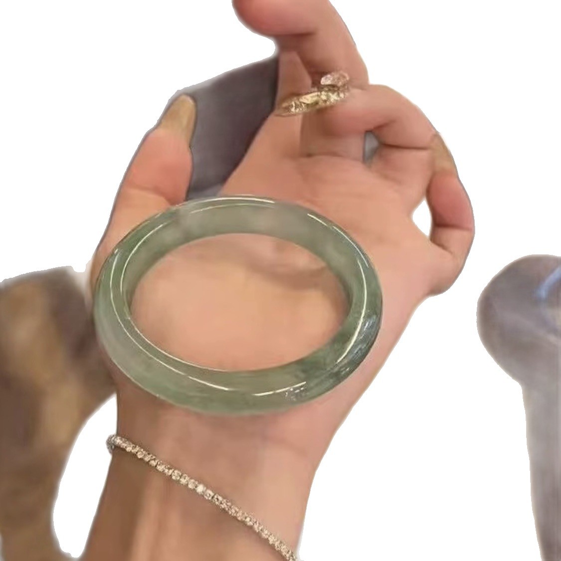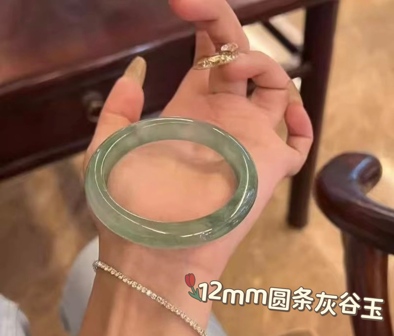 12mm圆条粗款灰古玉手镯灰古玉新中式旗袍配饰贵妃镯国风手镯配饰