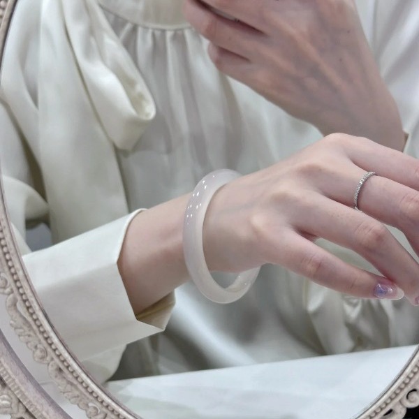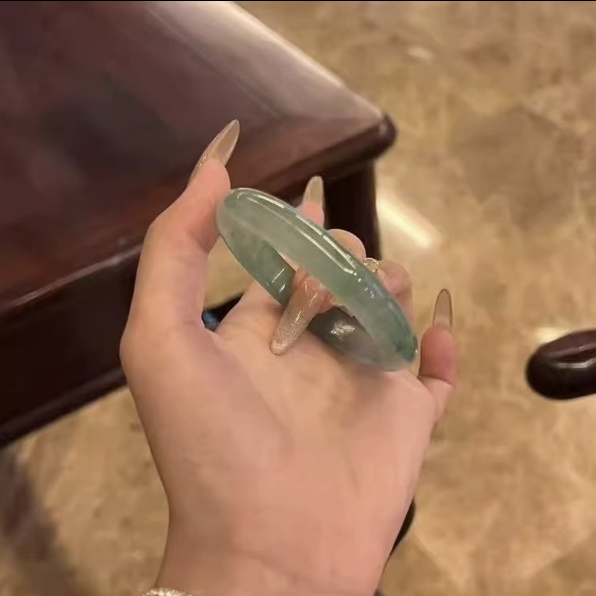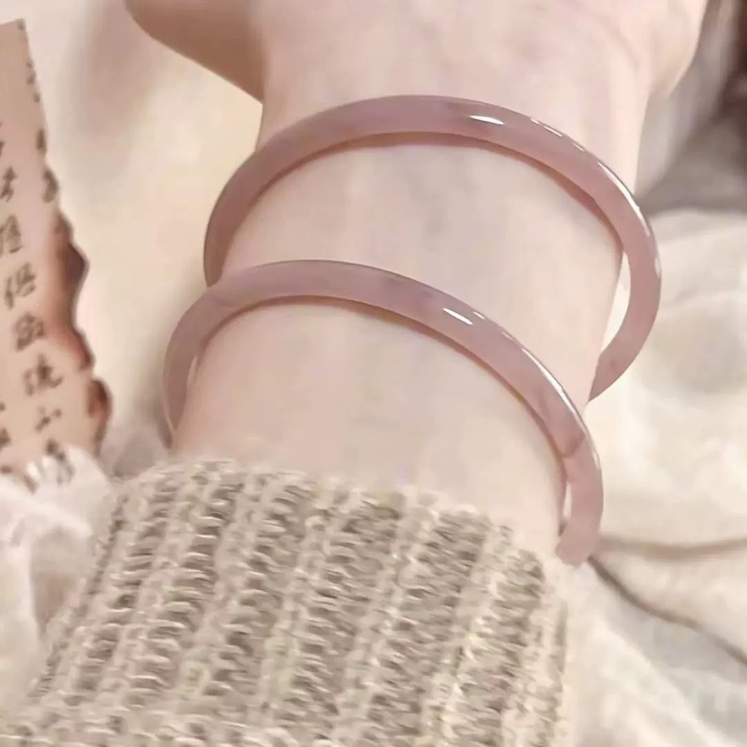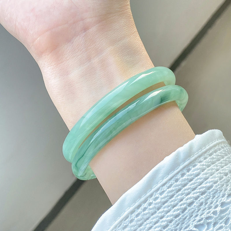 12mm圆条粗款灰古玉手镯灰古玉新中式旗袍配饰贵妃镯国风手镯配饰