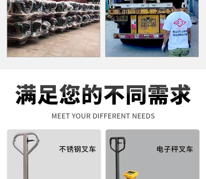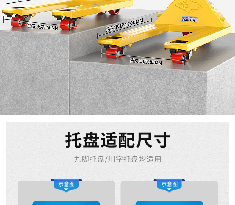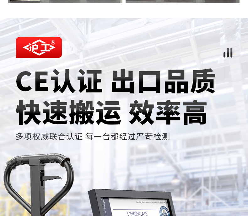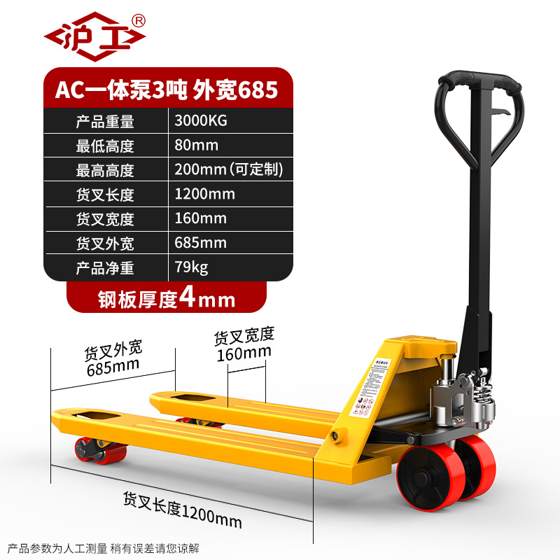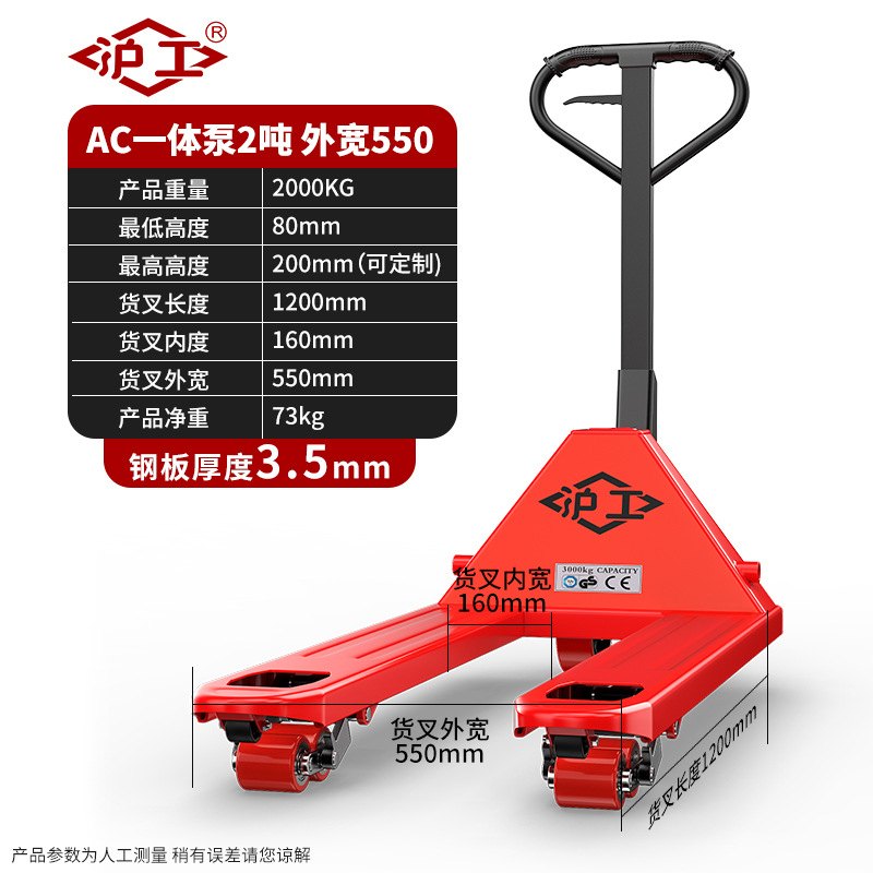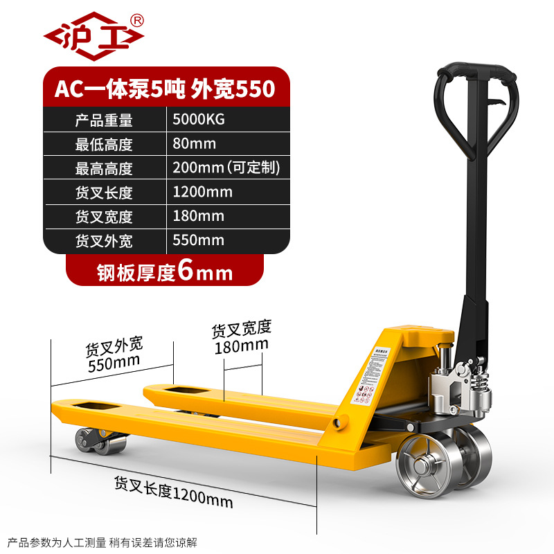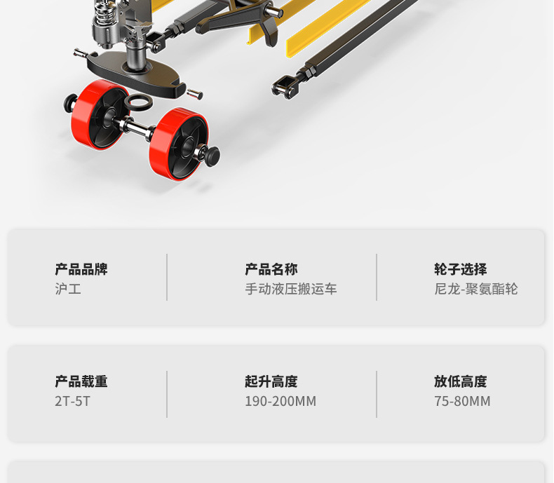 沪工液压搬运车3吨5吨升高车手推托盘车升降地牛尼龙钢轮手动叉车