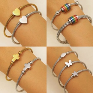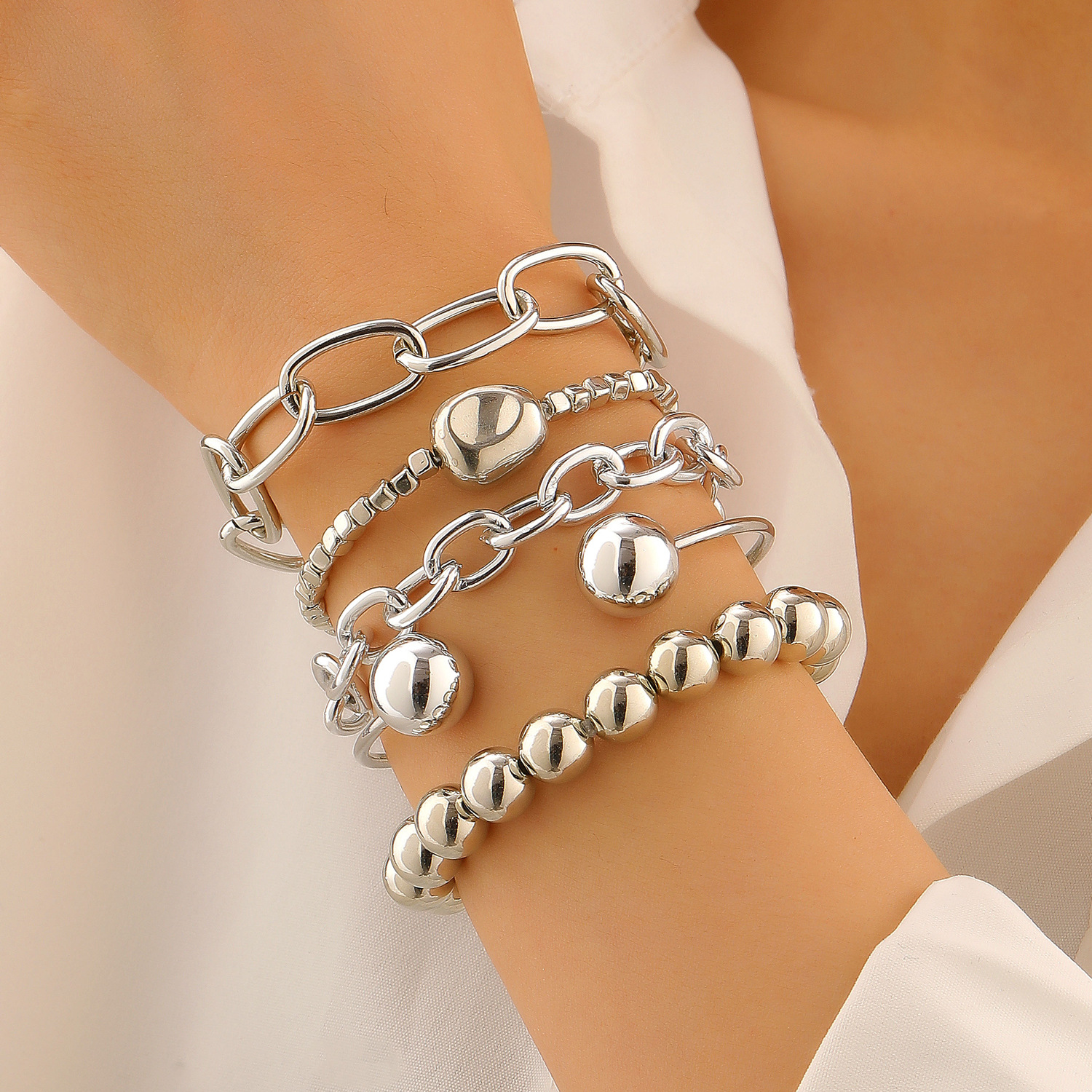 跨境民族风合金手饰 复古宽面手镯套装女 金色光面手环手链十件套