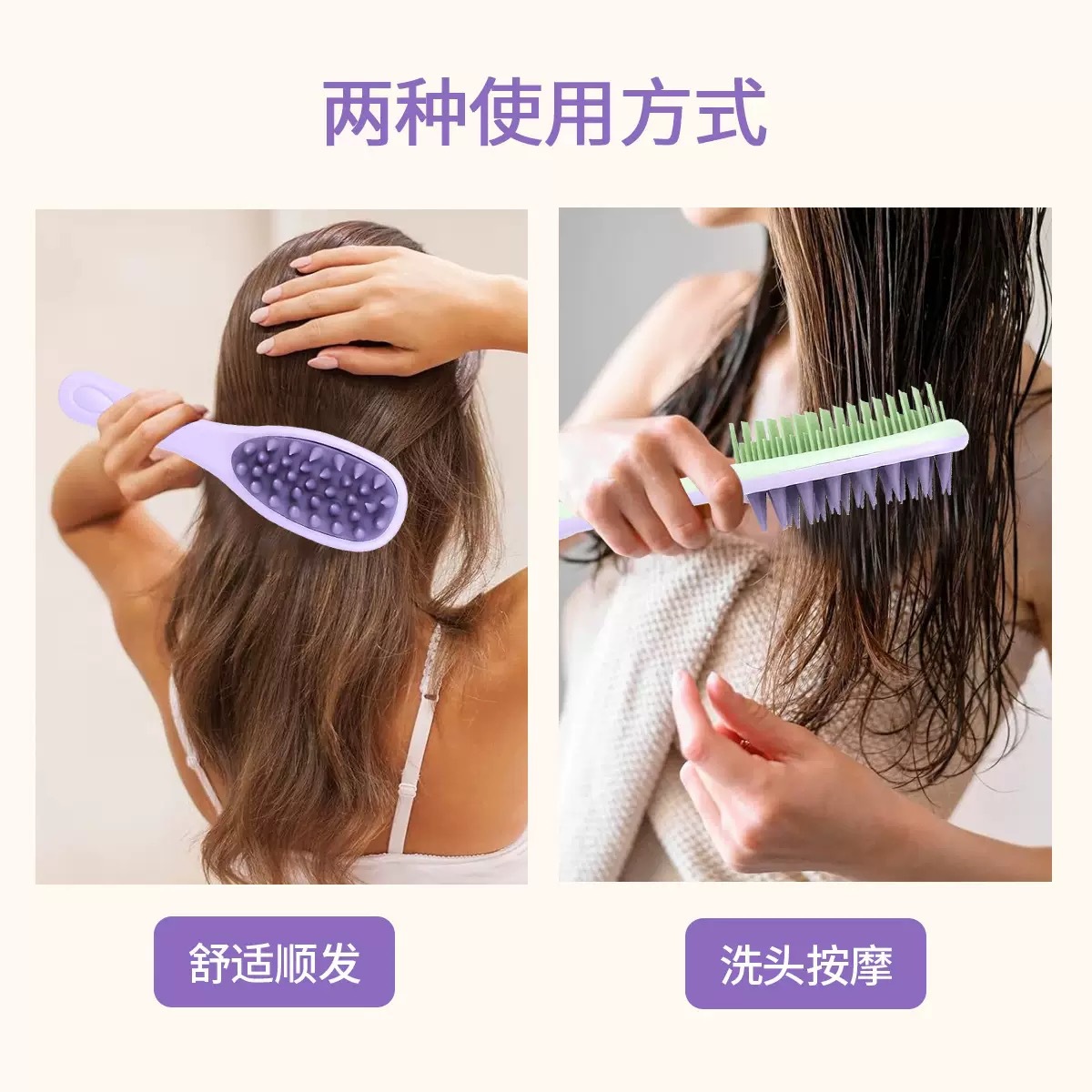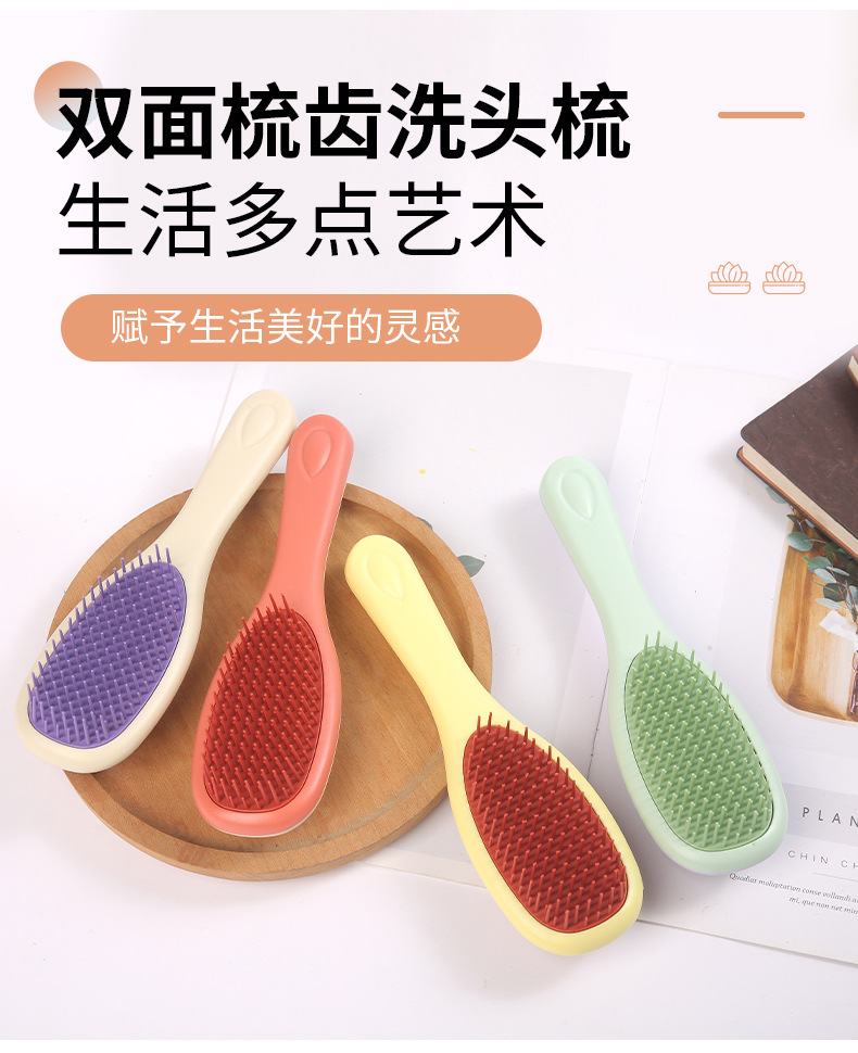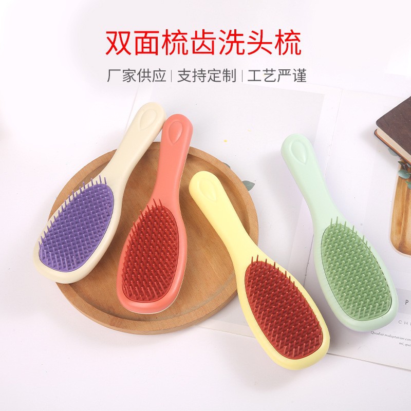 跨境新款双面齿洗头梳长手柄气垫按摩梳家用美发梳清洁头皮洗头刷