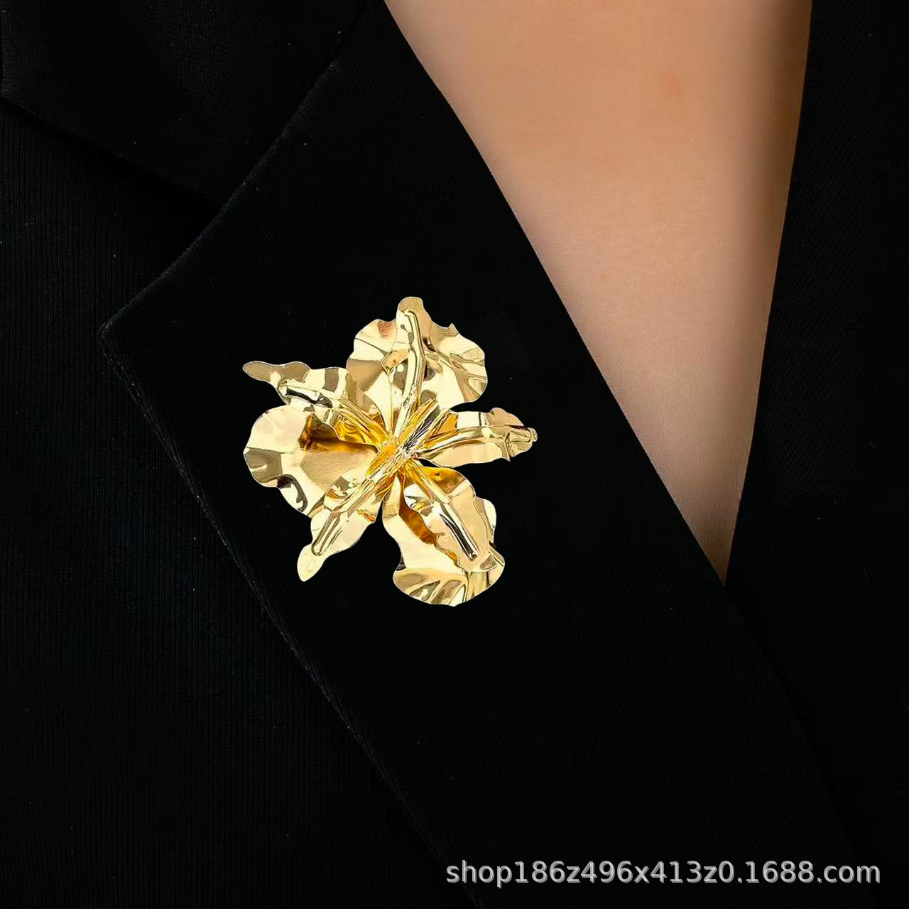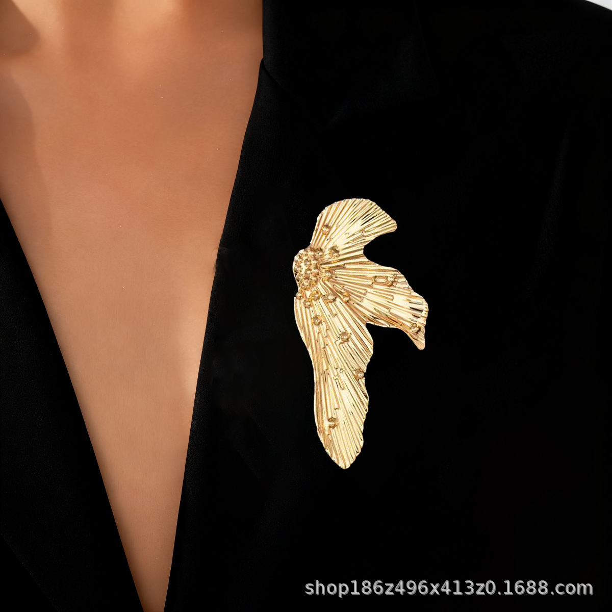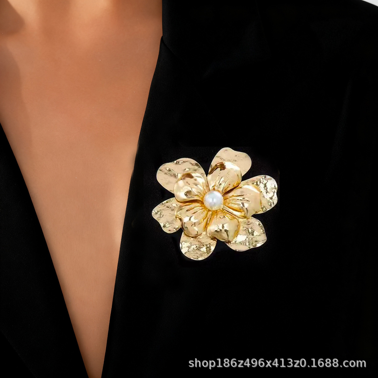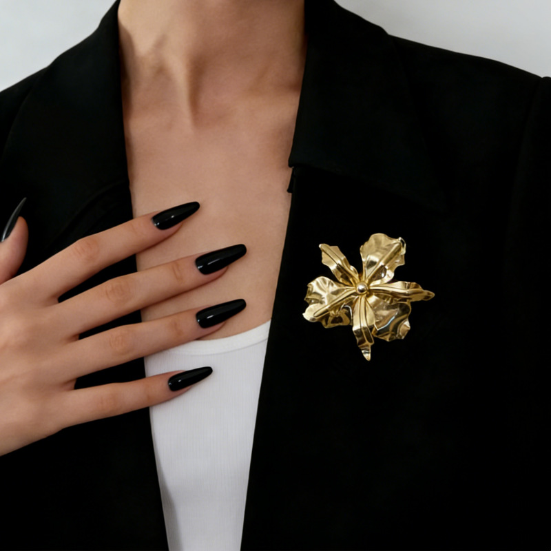 欧美跨境夸张时尚个性潮流金属大花朵胸针秋冬简约高级感胸花配饰