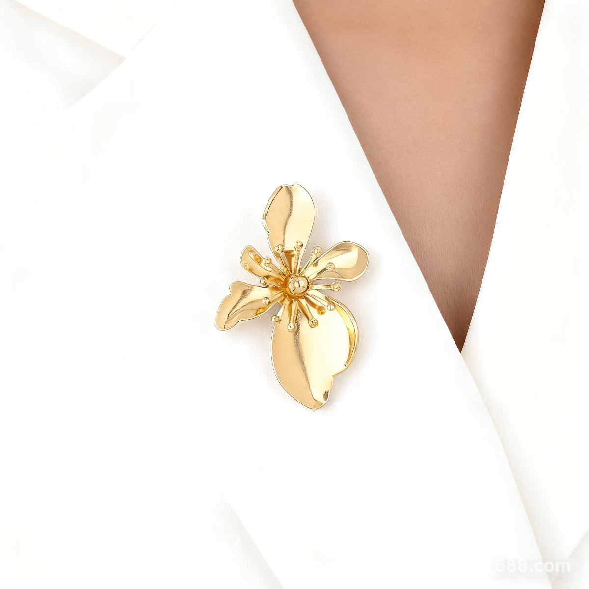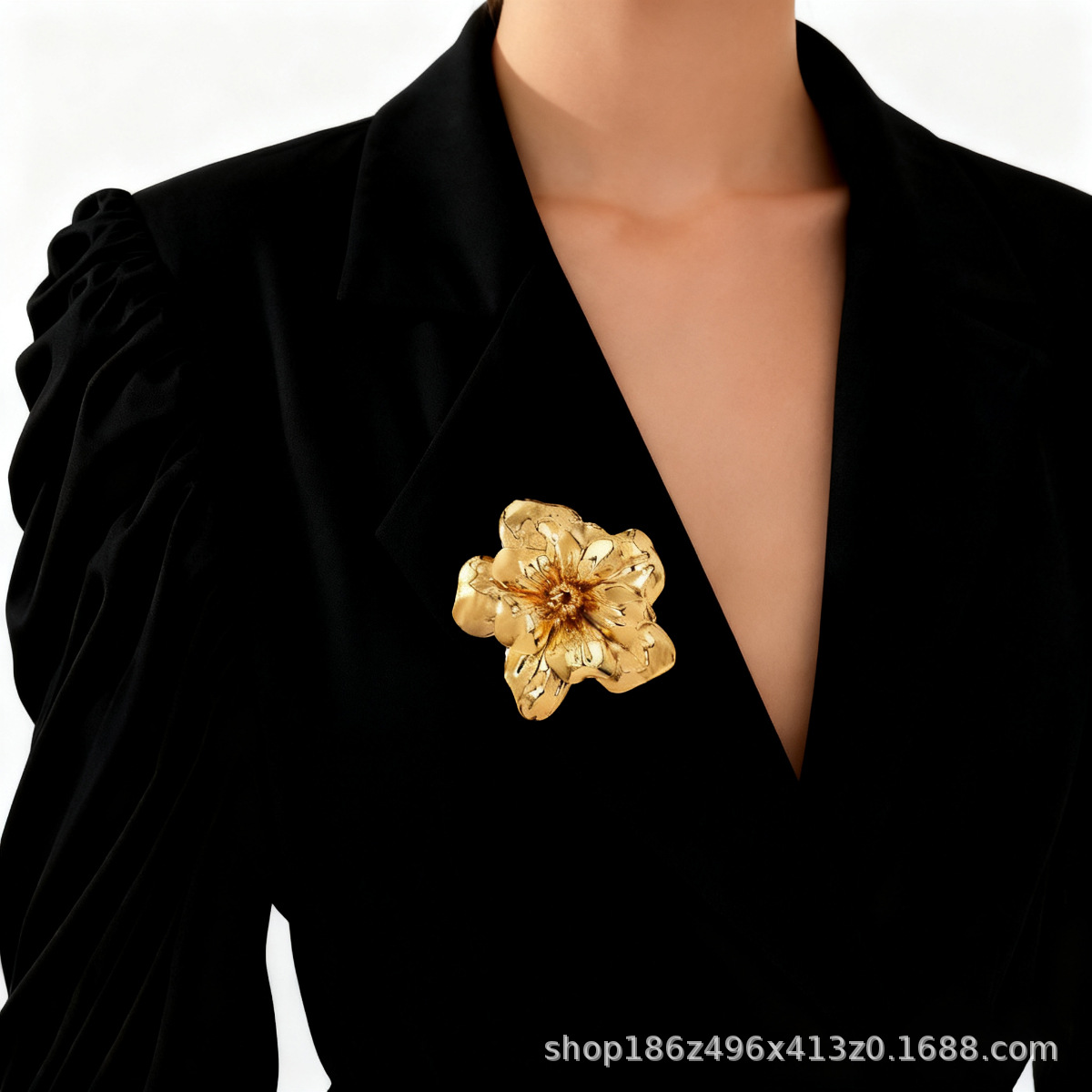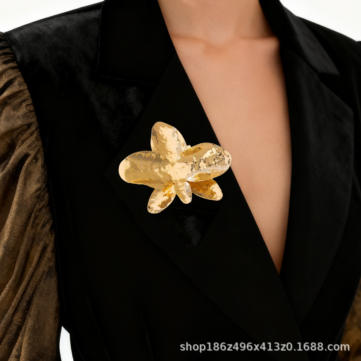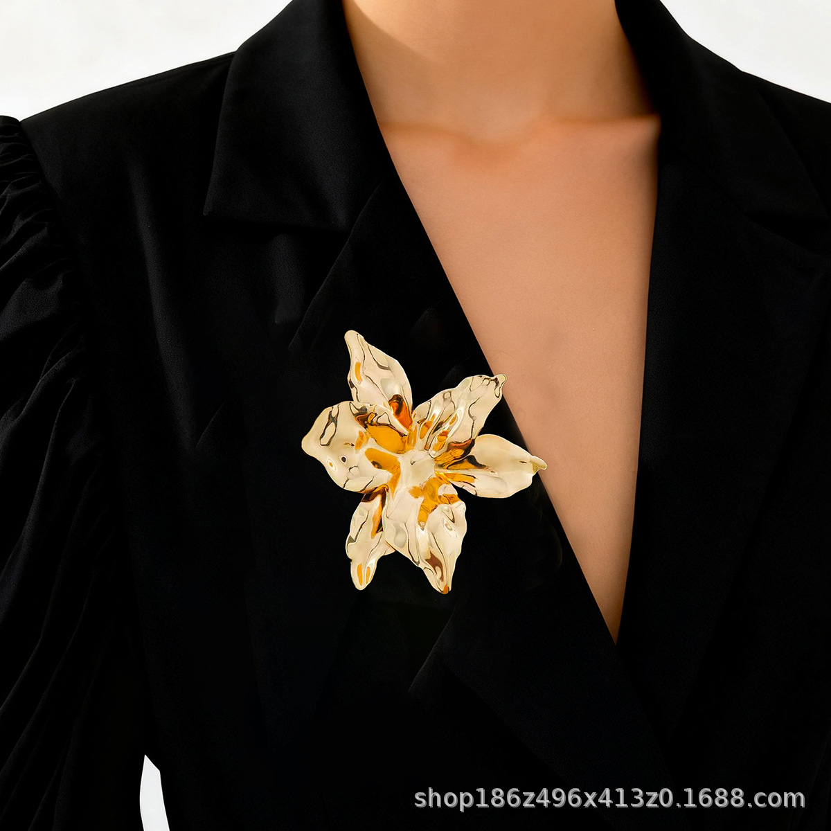 欧美跨境夸张时尚个性潮流金属大花朵胸针秋冬简约高级感胸花配饰
