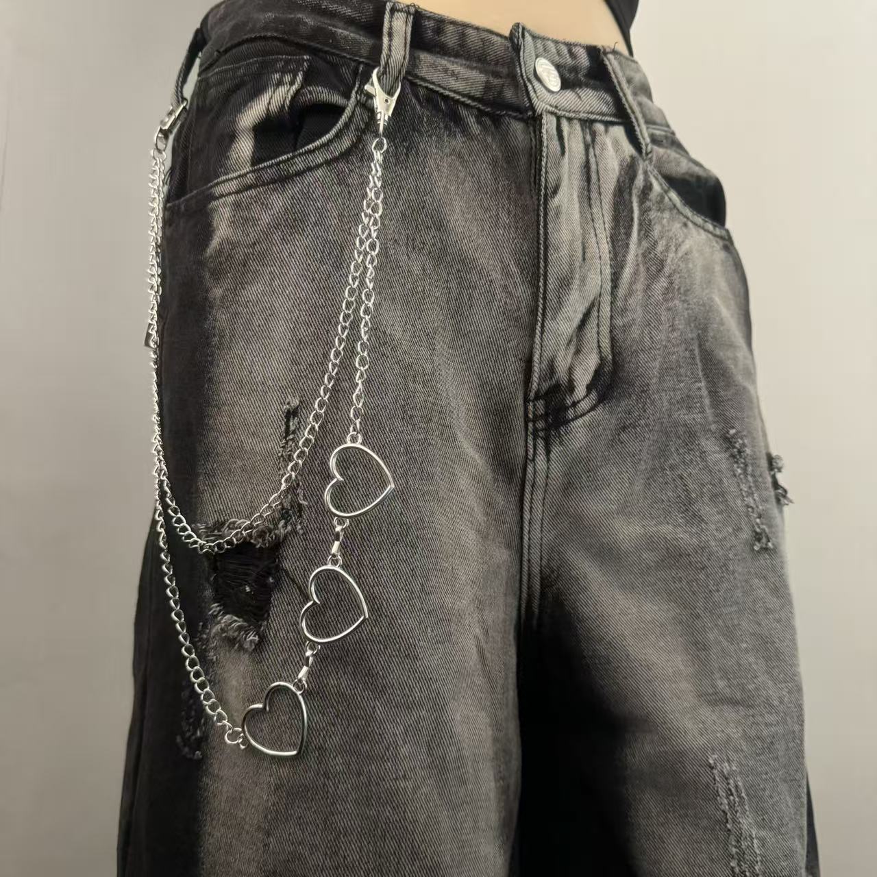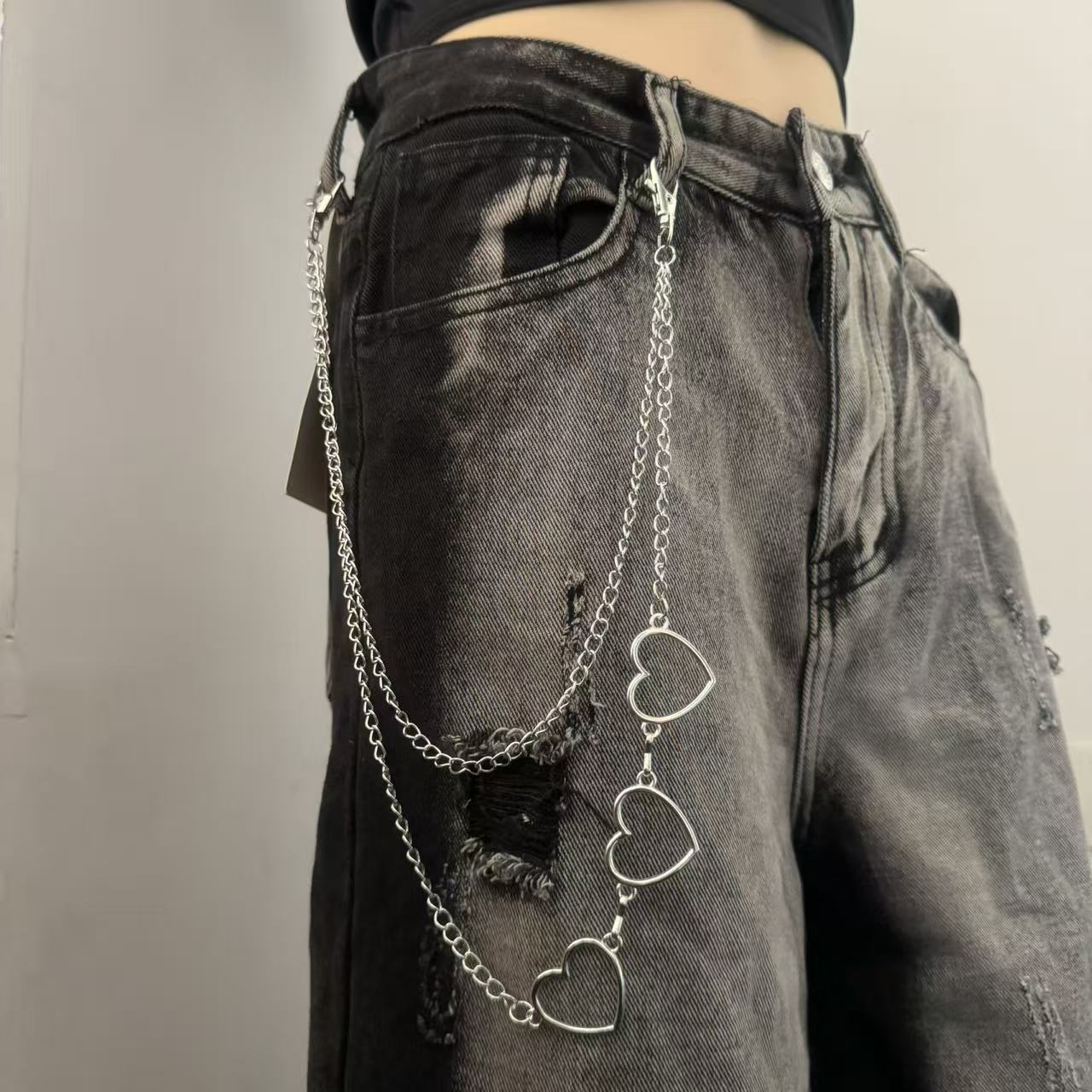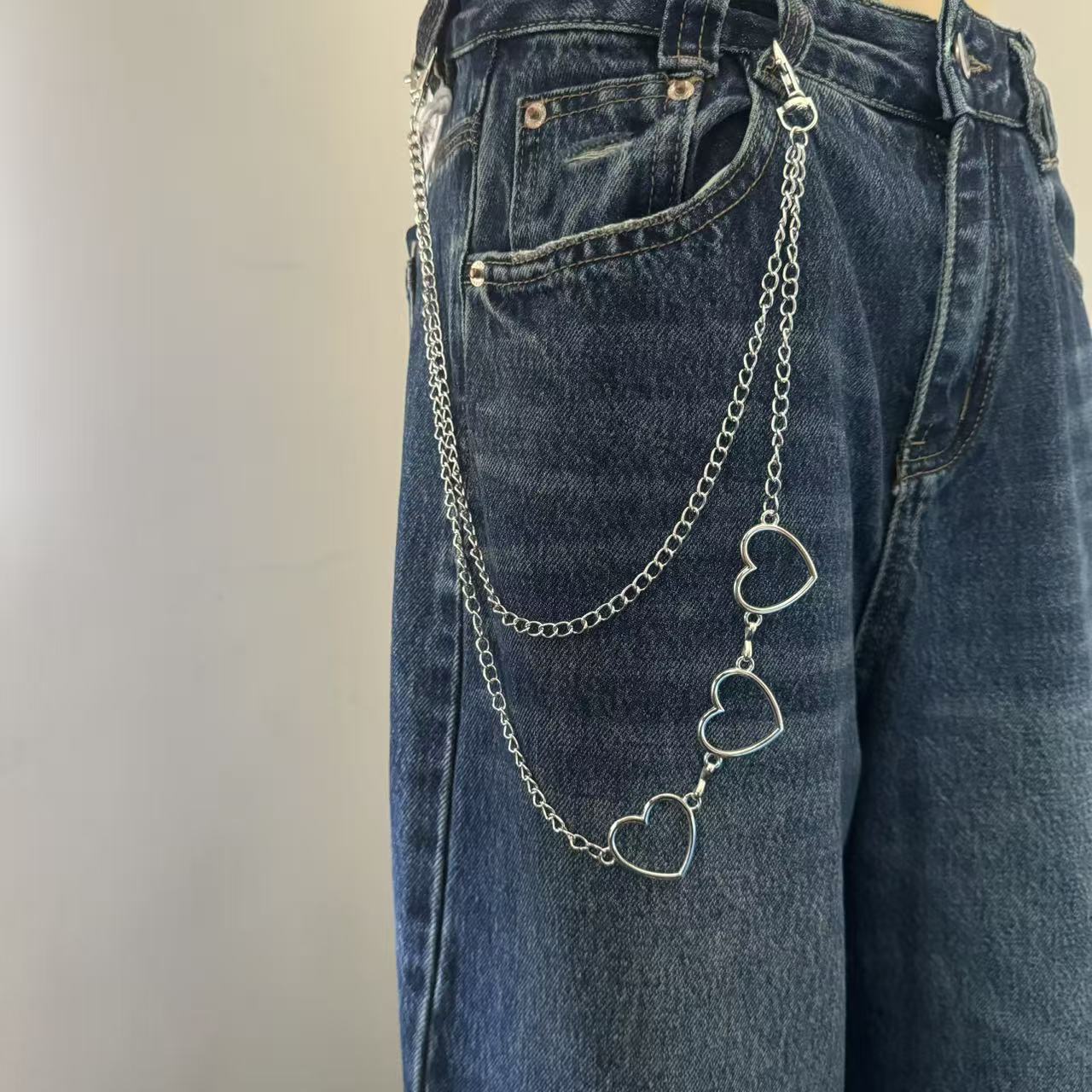 欧美跨境裤链 个性潮流嘻哈金属爱心双层裤链 男款休闲搭配腰链