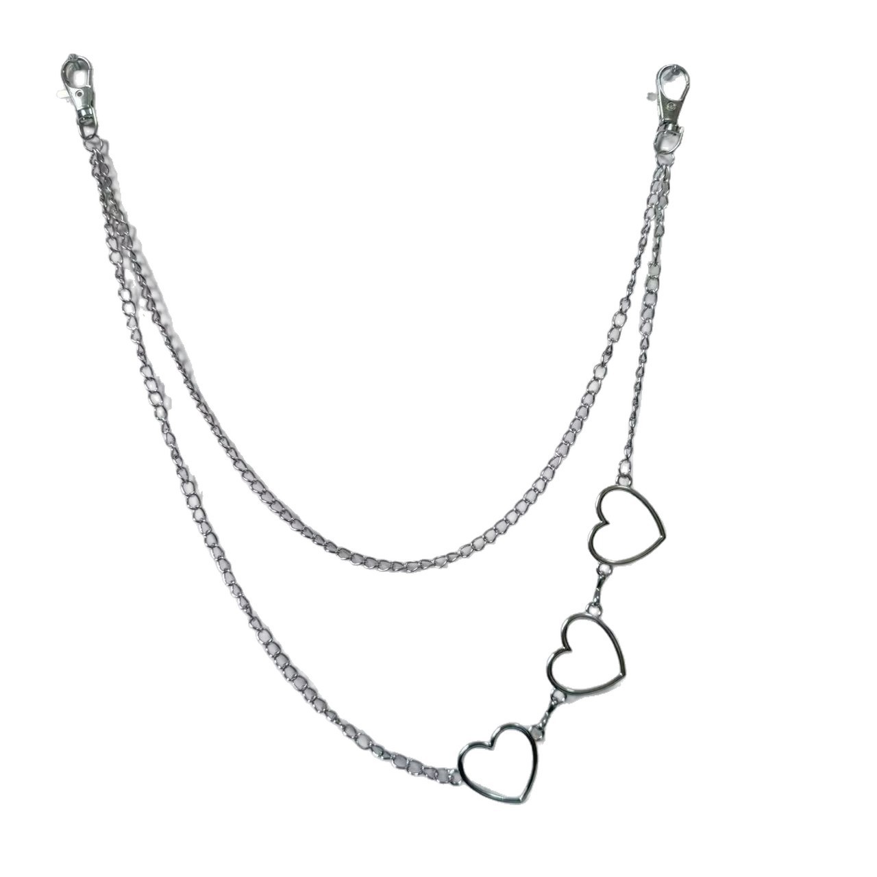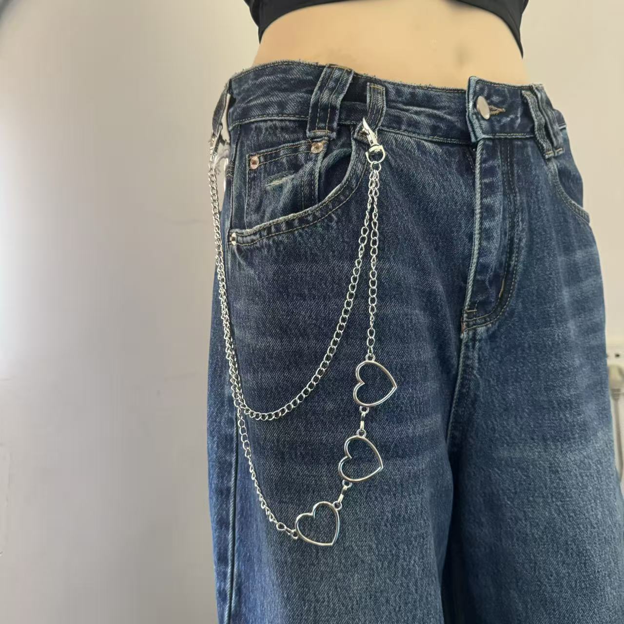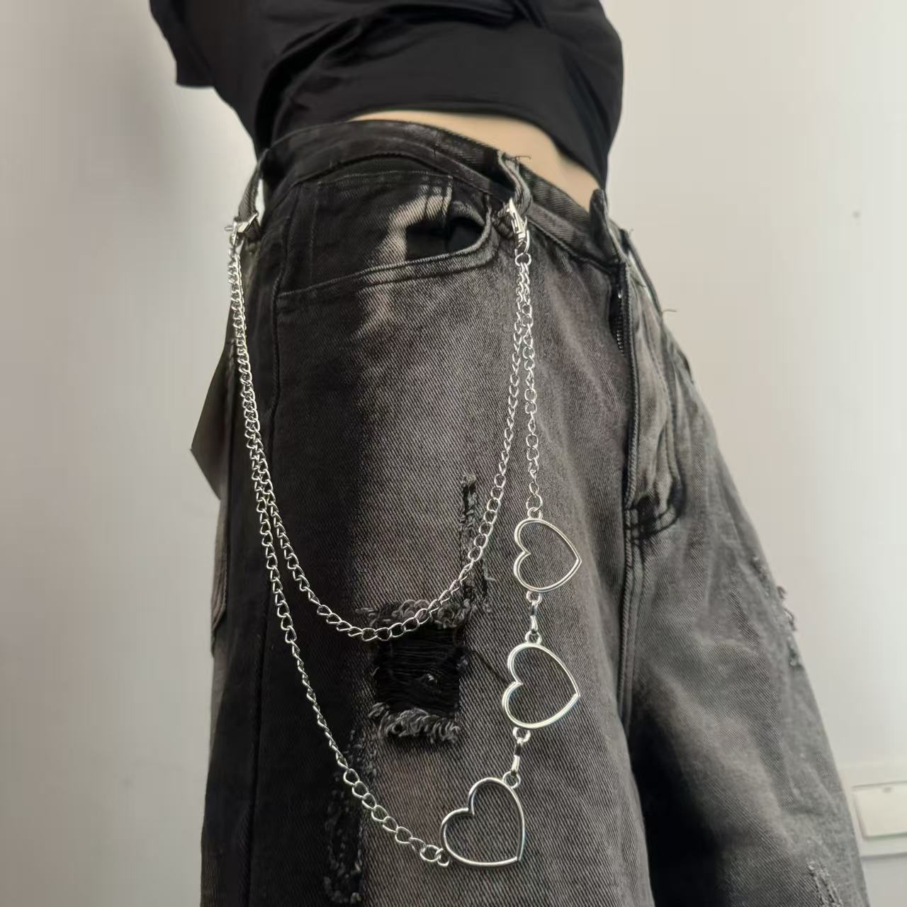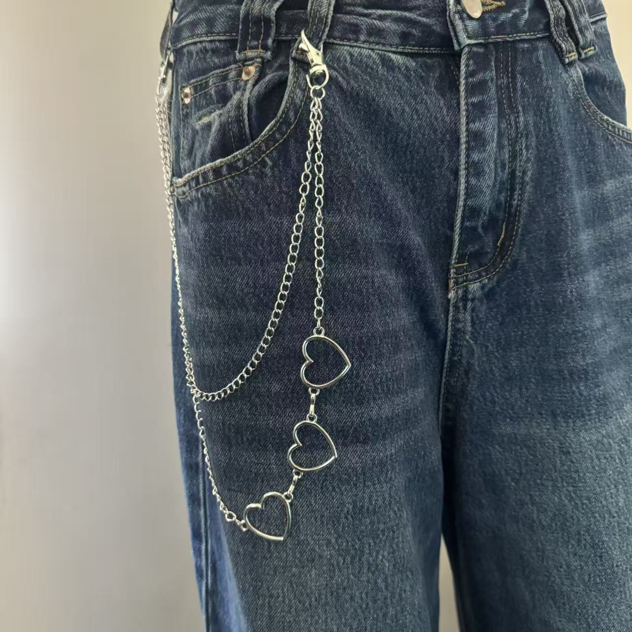 欧美跨境裤链 个性潮流嘻哈金属爱心双层裤链 男款休闲搭配腰链