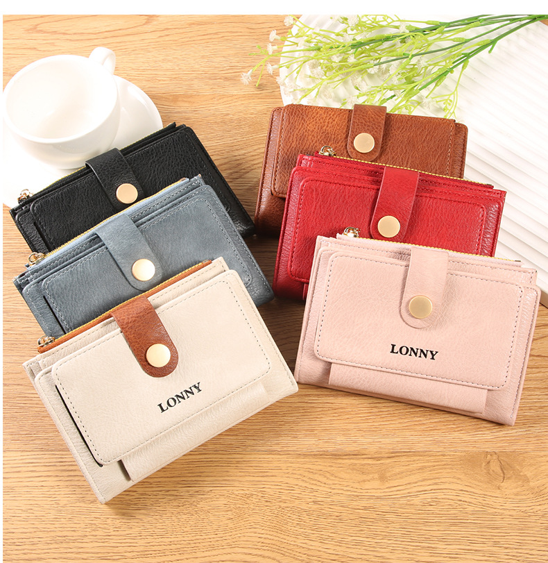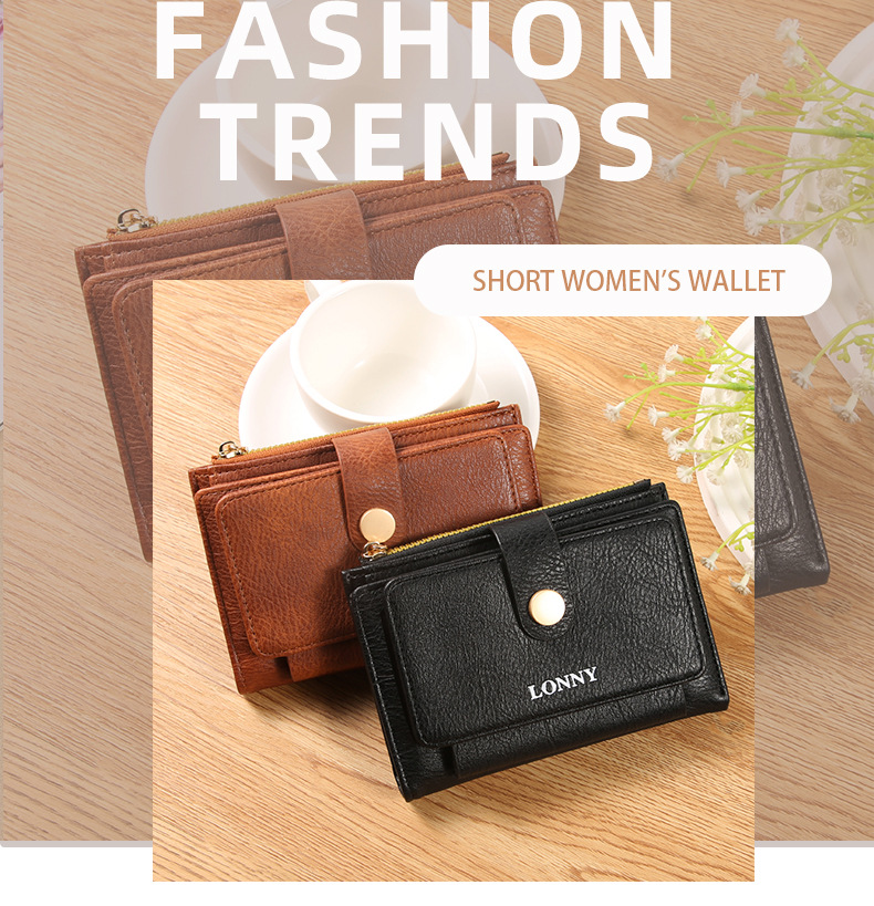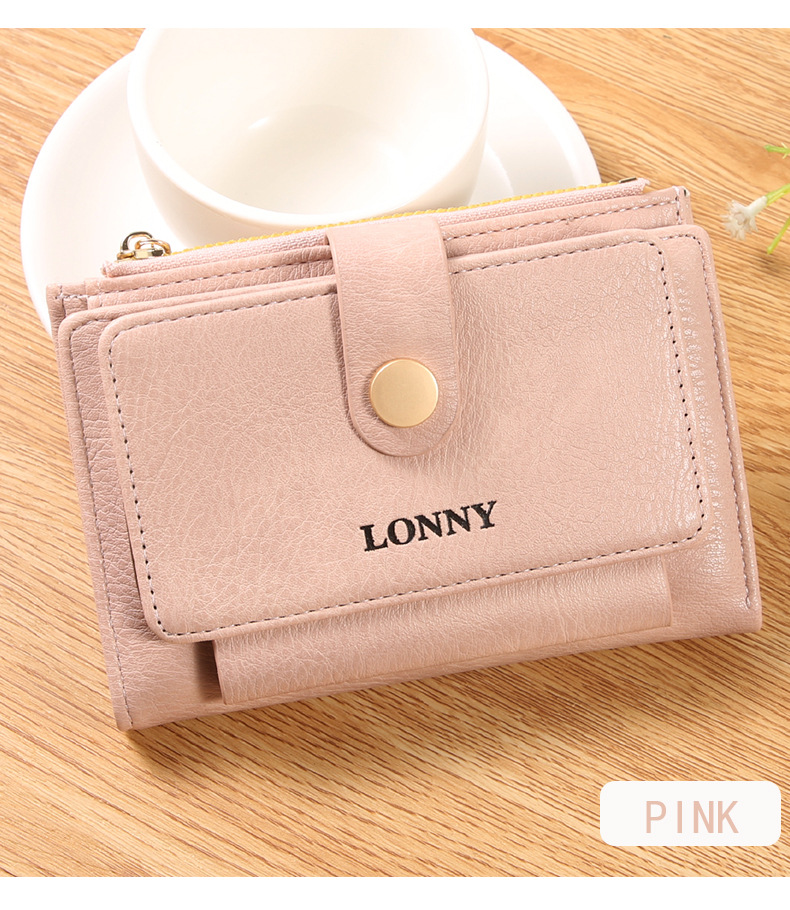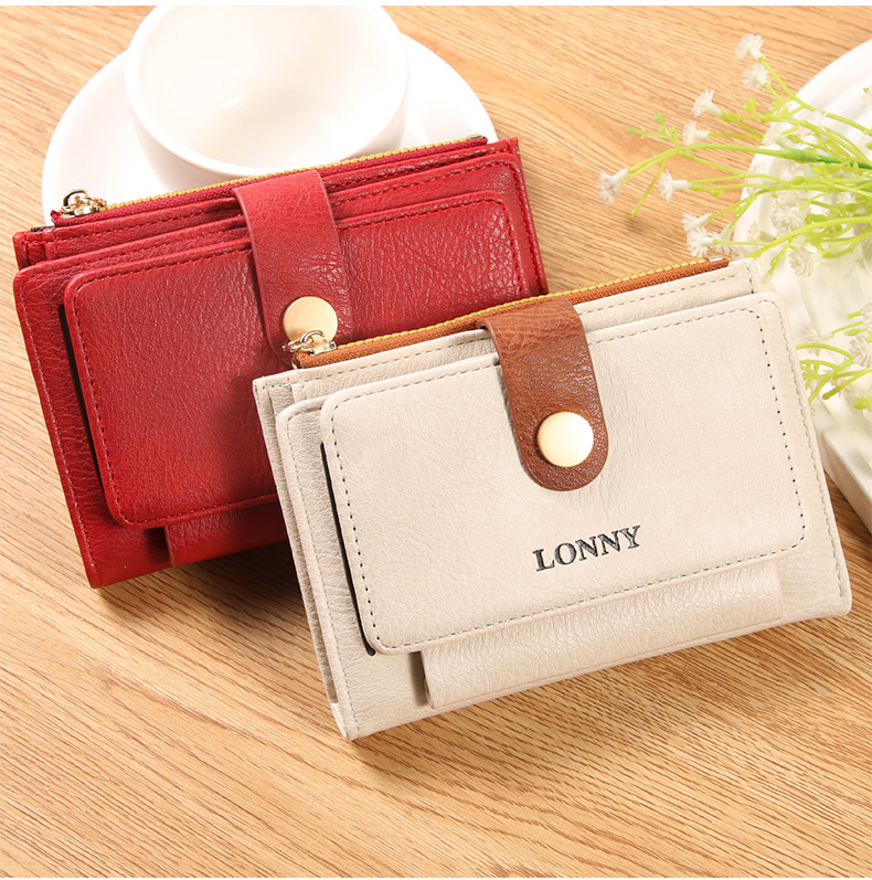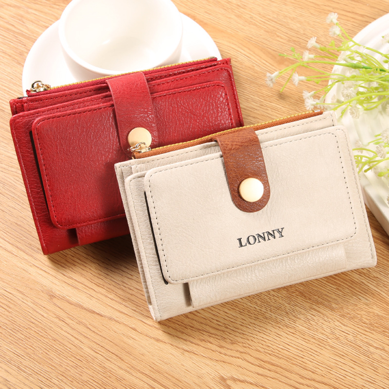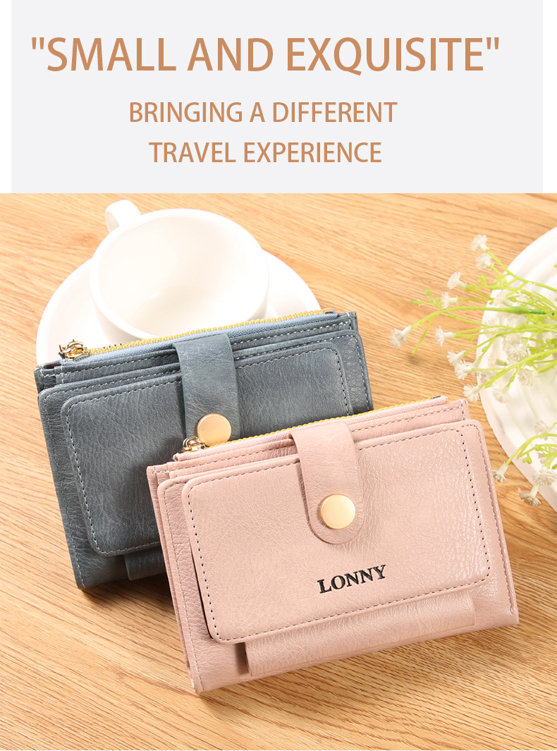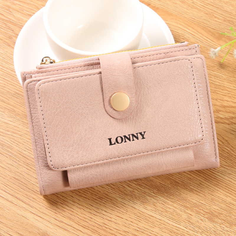 女钱包短款卡包可爱简约女士零钱包ins风女士钱包两折钱夹纯色