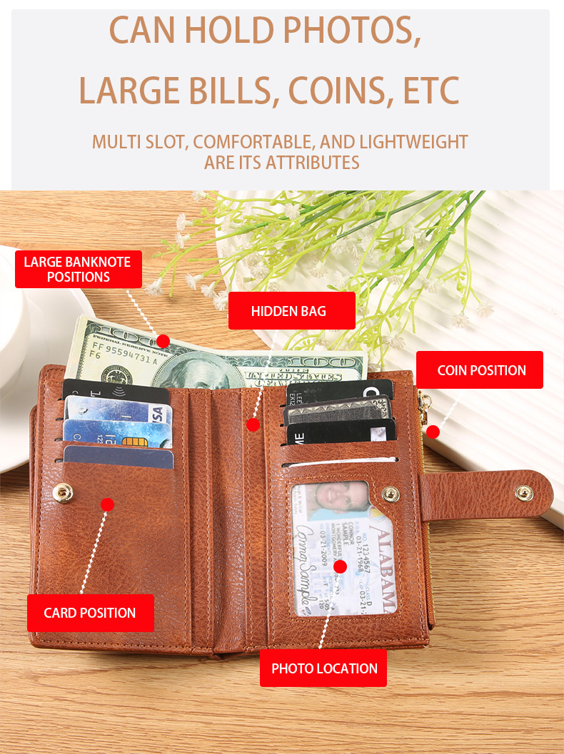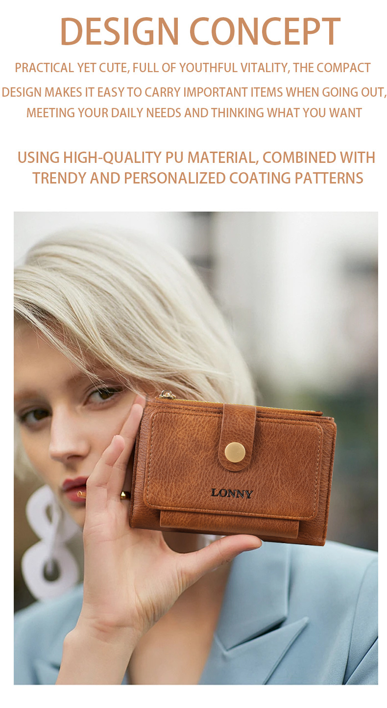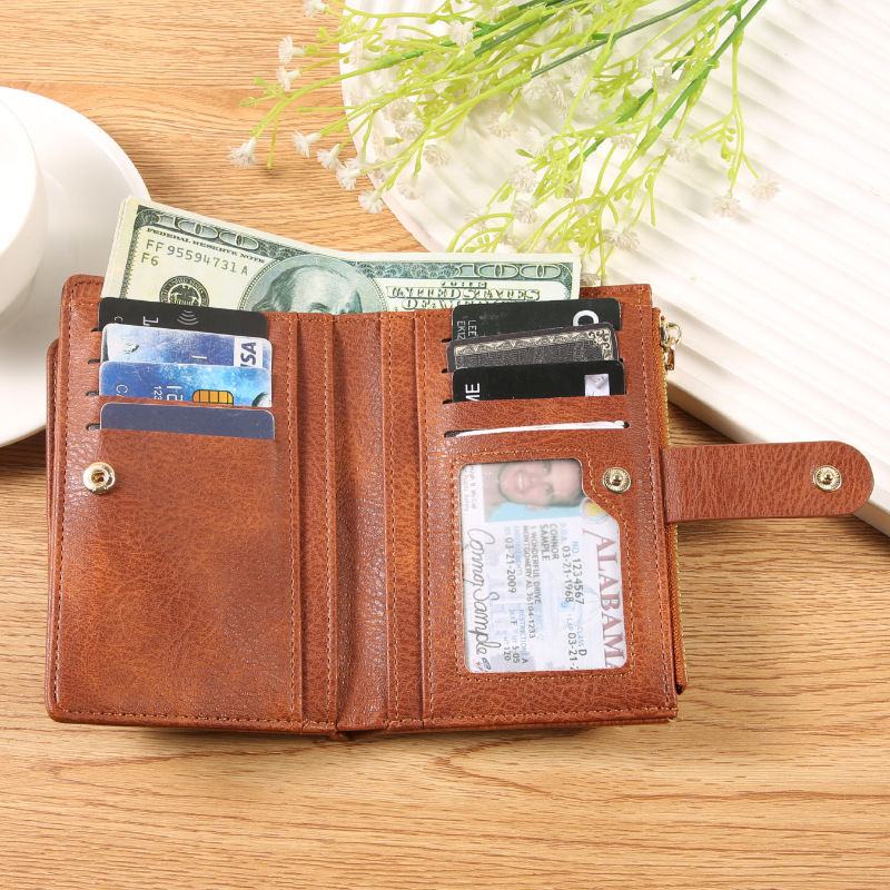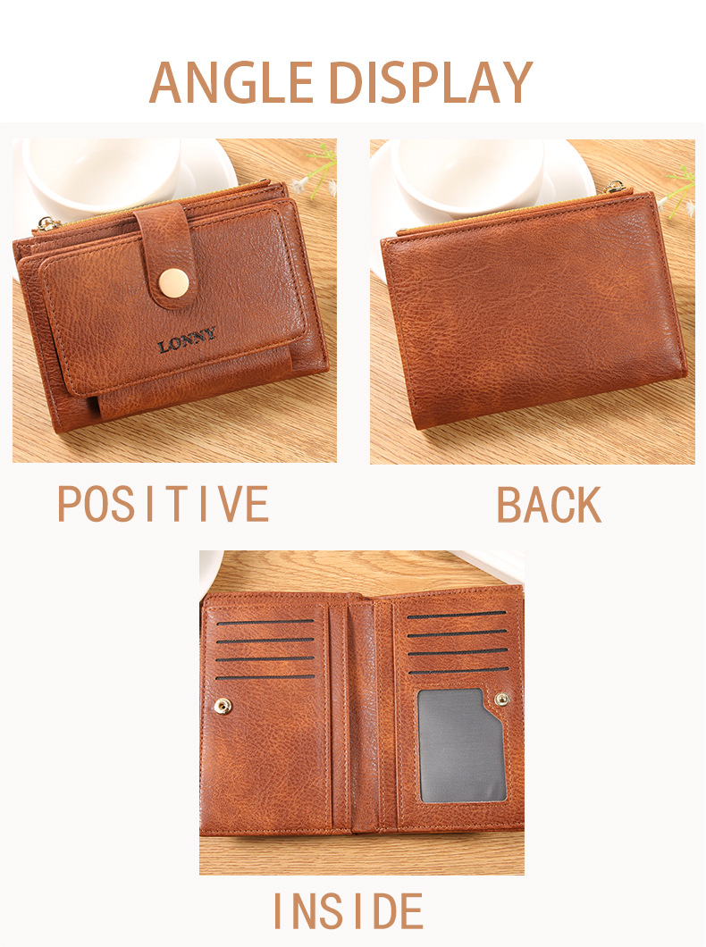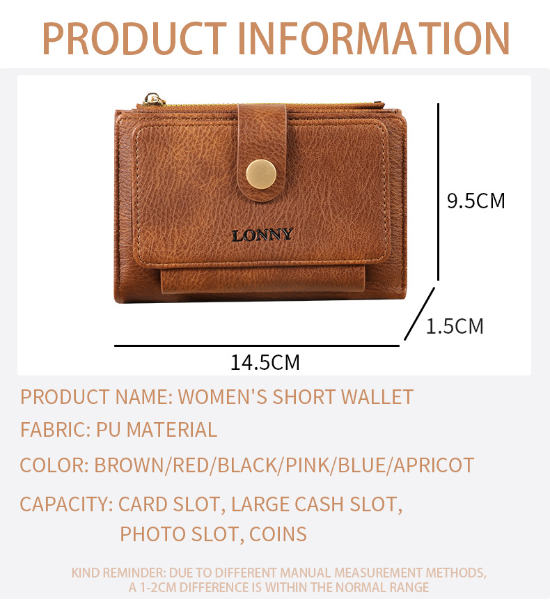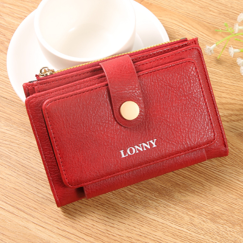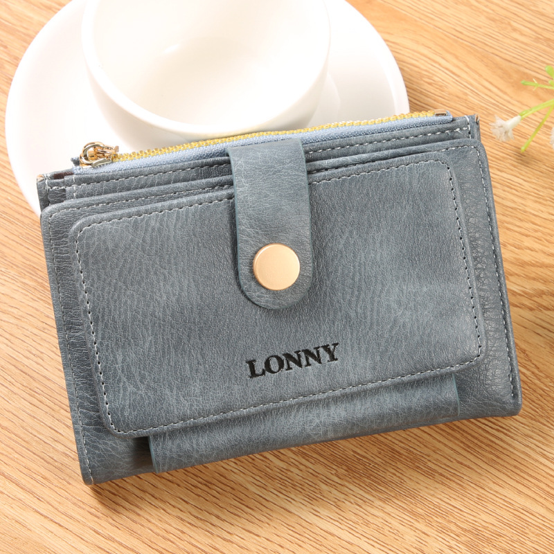 女钱包短款卡包可爱简约女士零钱包ins风女士钱包两折钱夹纯色