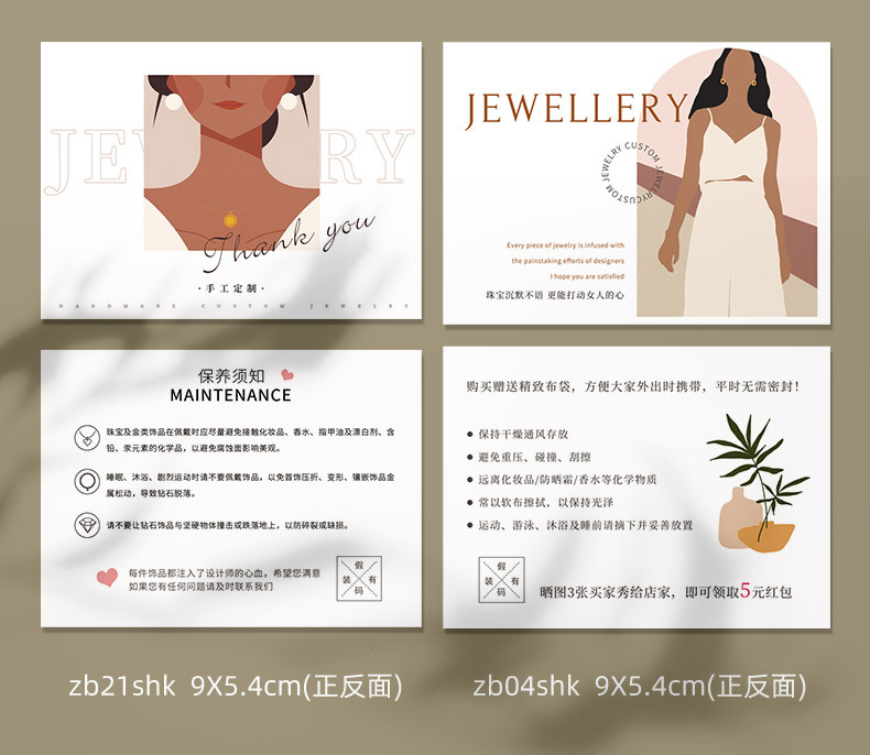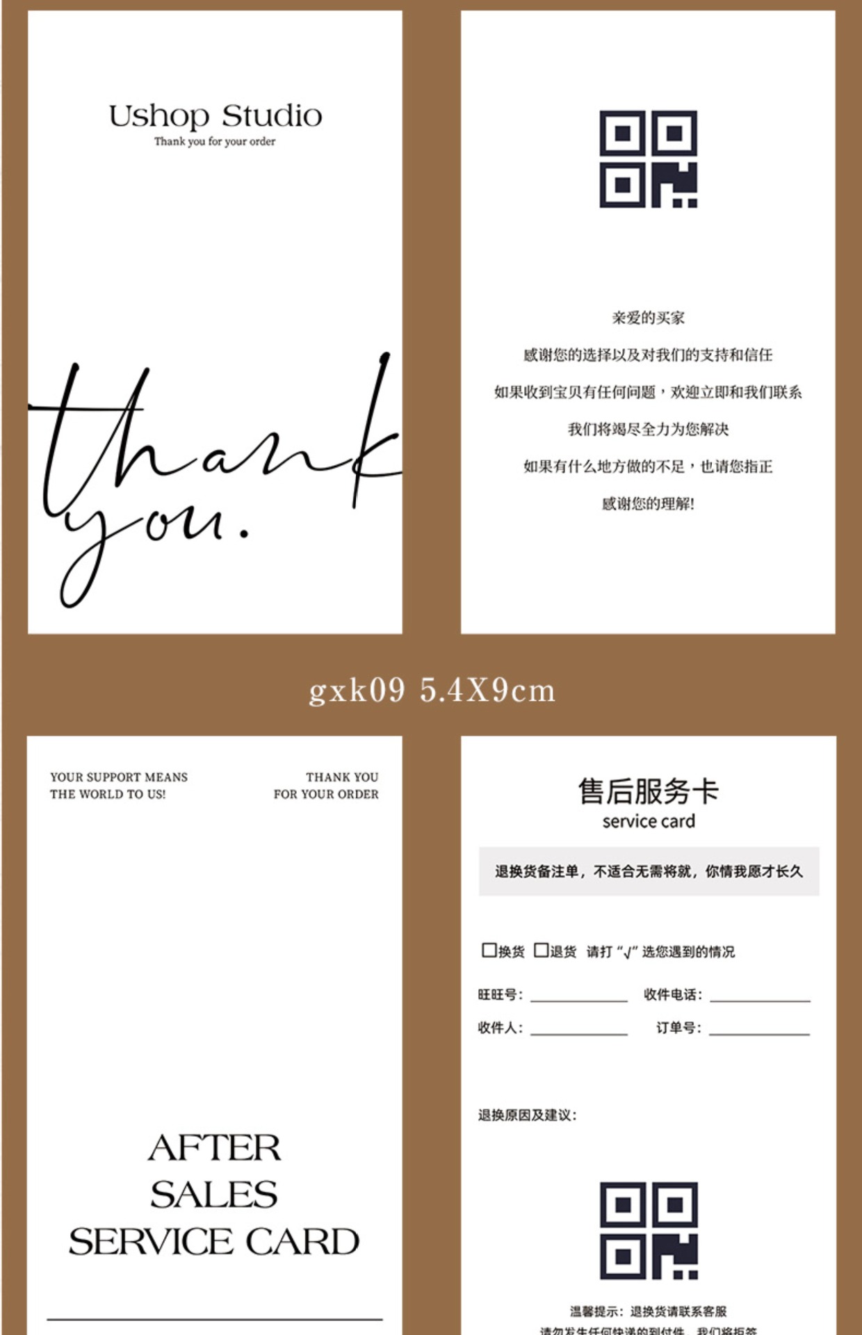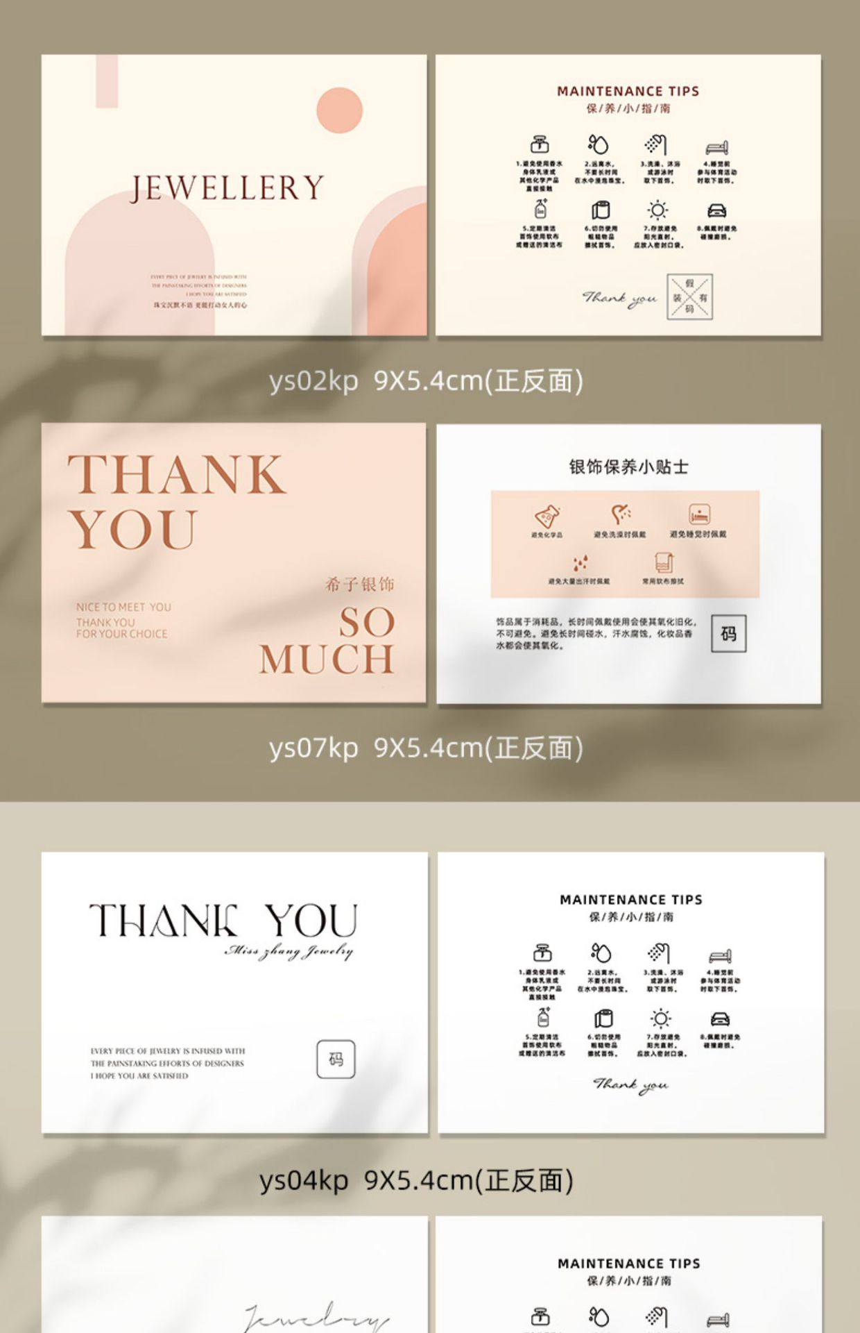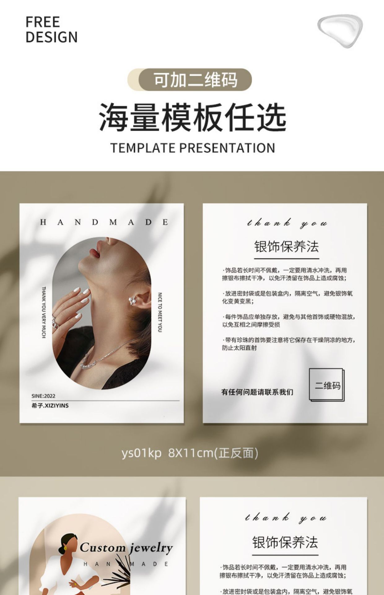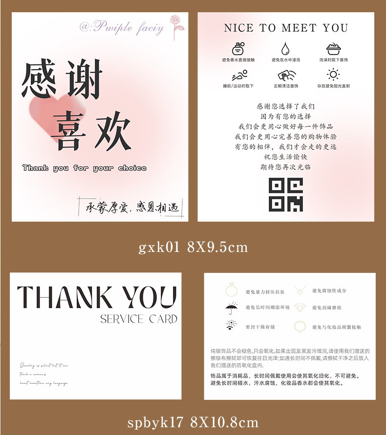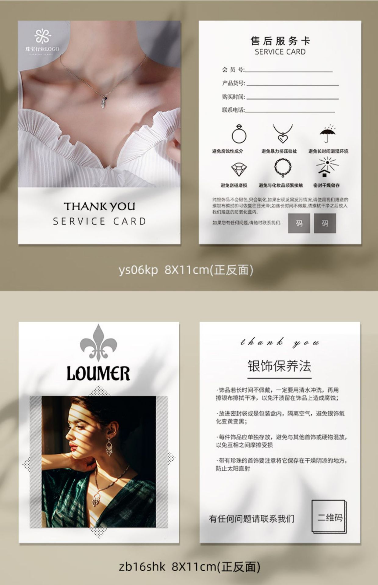 饰品售后卡片定制感谢卡硬卡设计保养卡纸制作贺卡高级明信片印刷