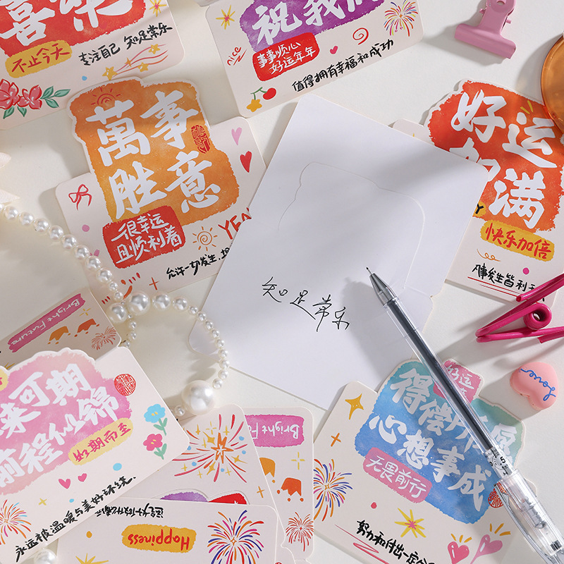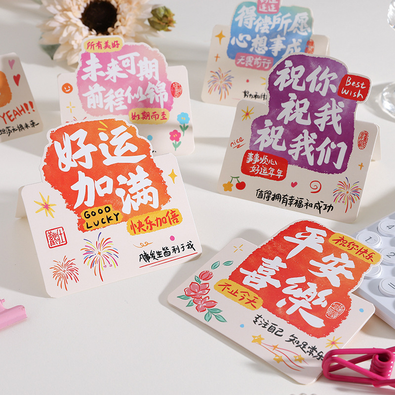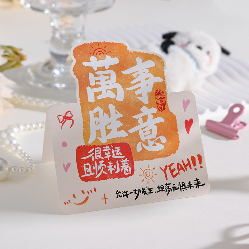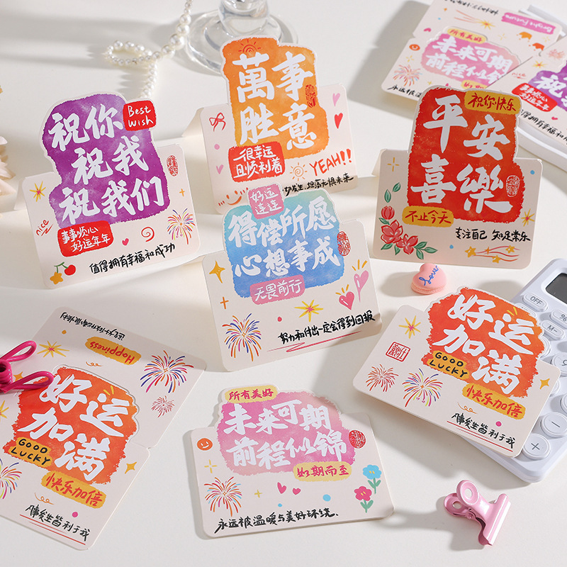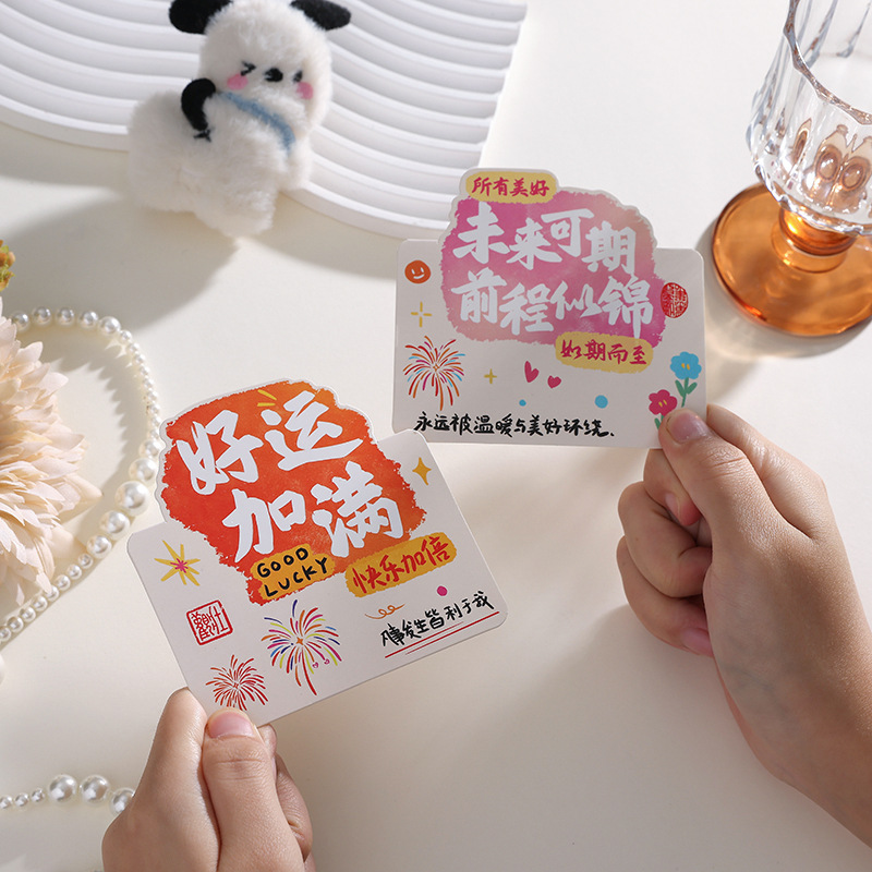 新款好运贺卡节日通用新年贺卡头好运来到励志文字小卡片祝福厂家