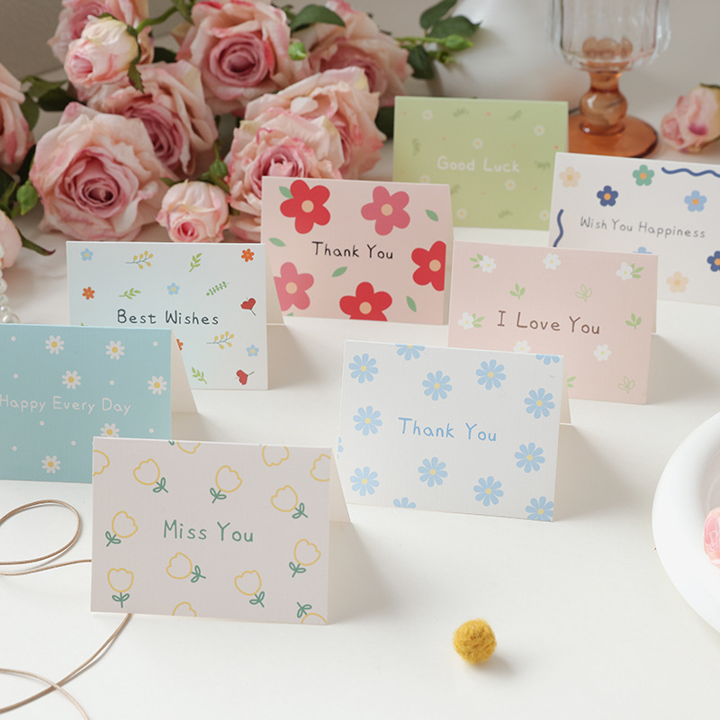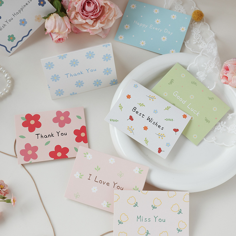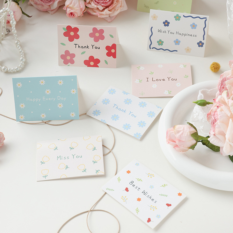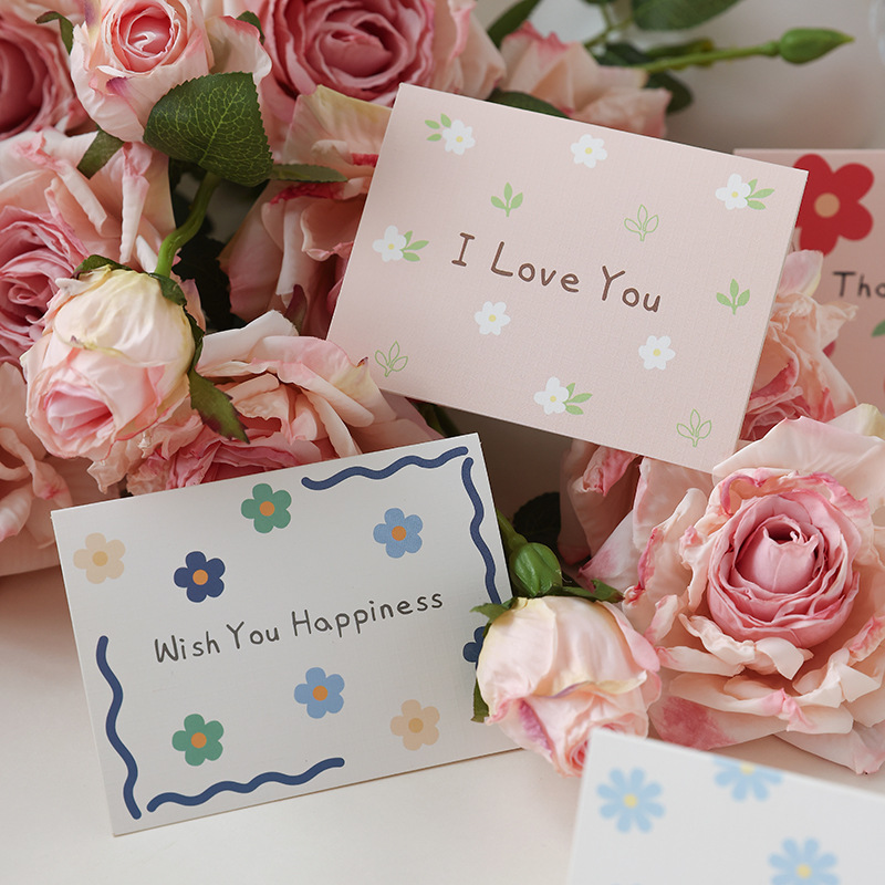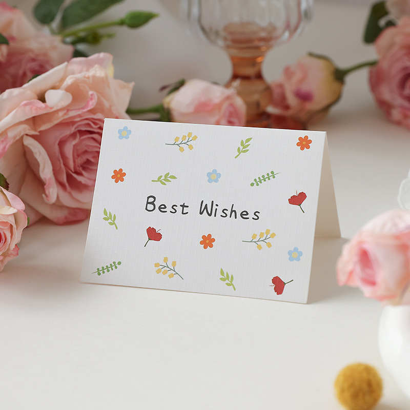 通用小碎花简约贺卡对折生日节日祝福语留言搭配礼物花束卡片批发