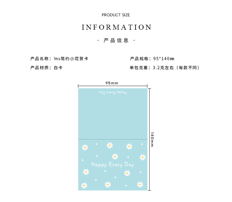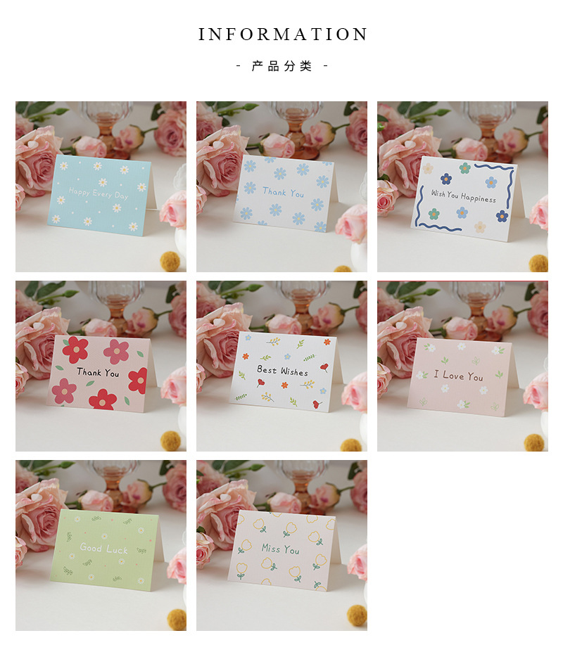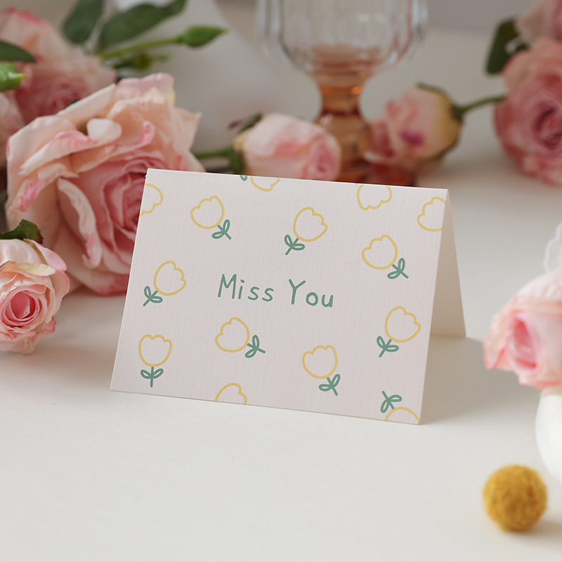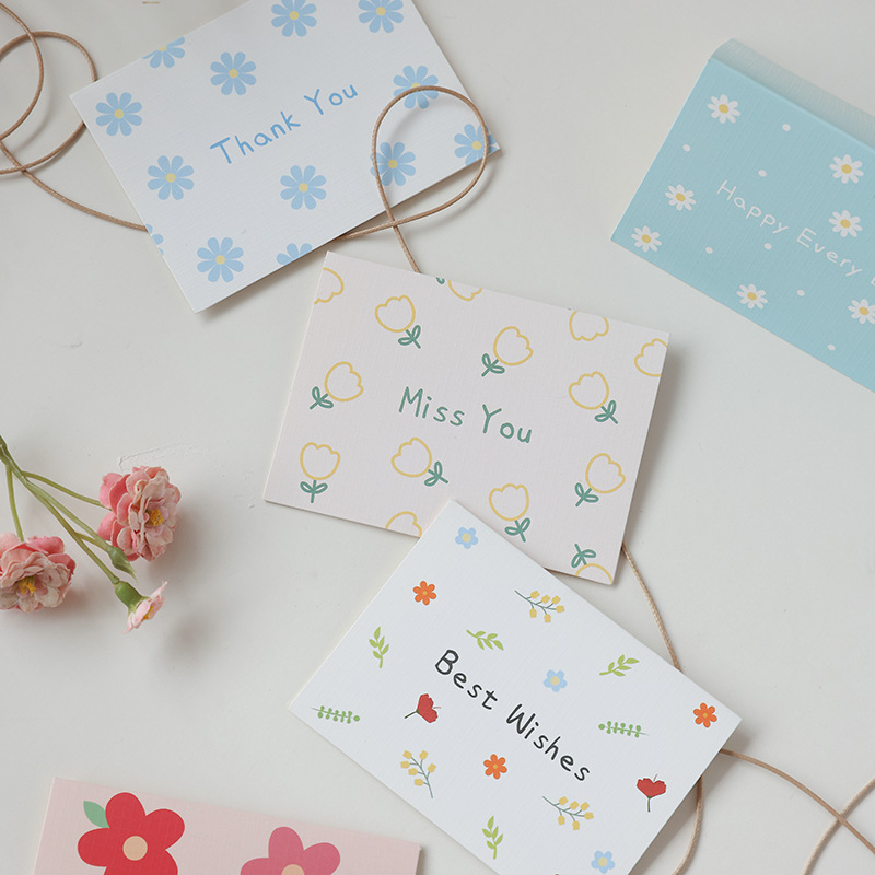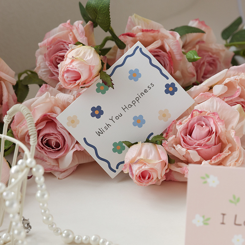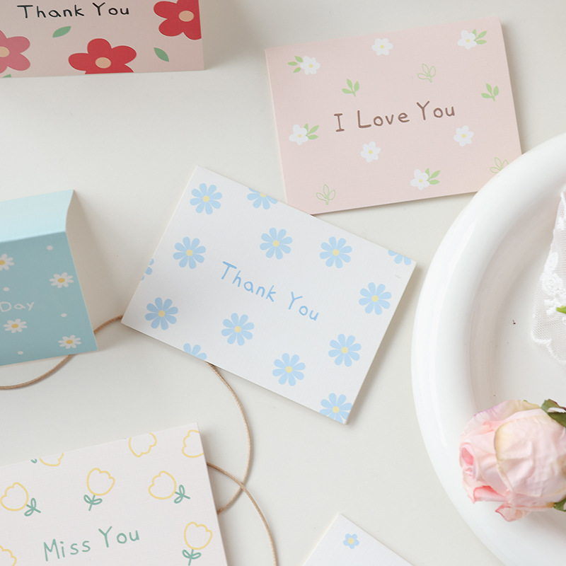 通用小碎花简约贺卡对折生日节日祝福语留言搭配礼物花束卡片批发