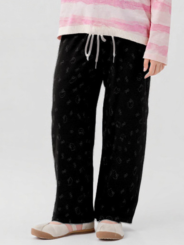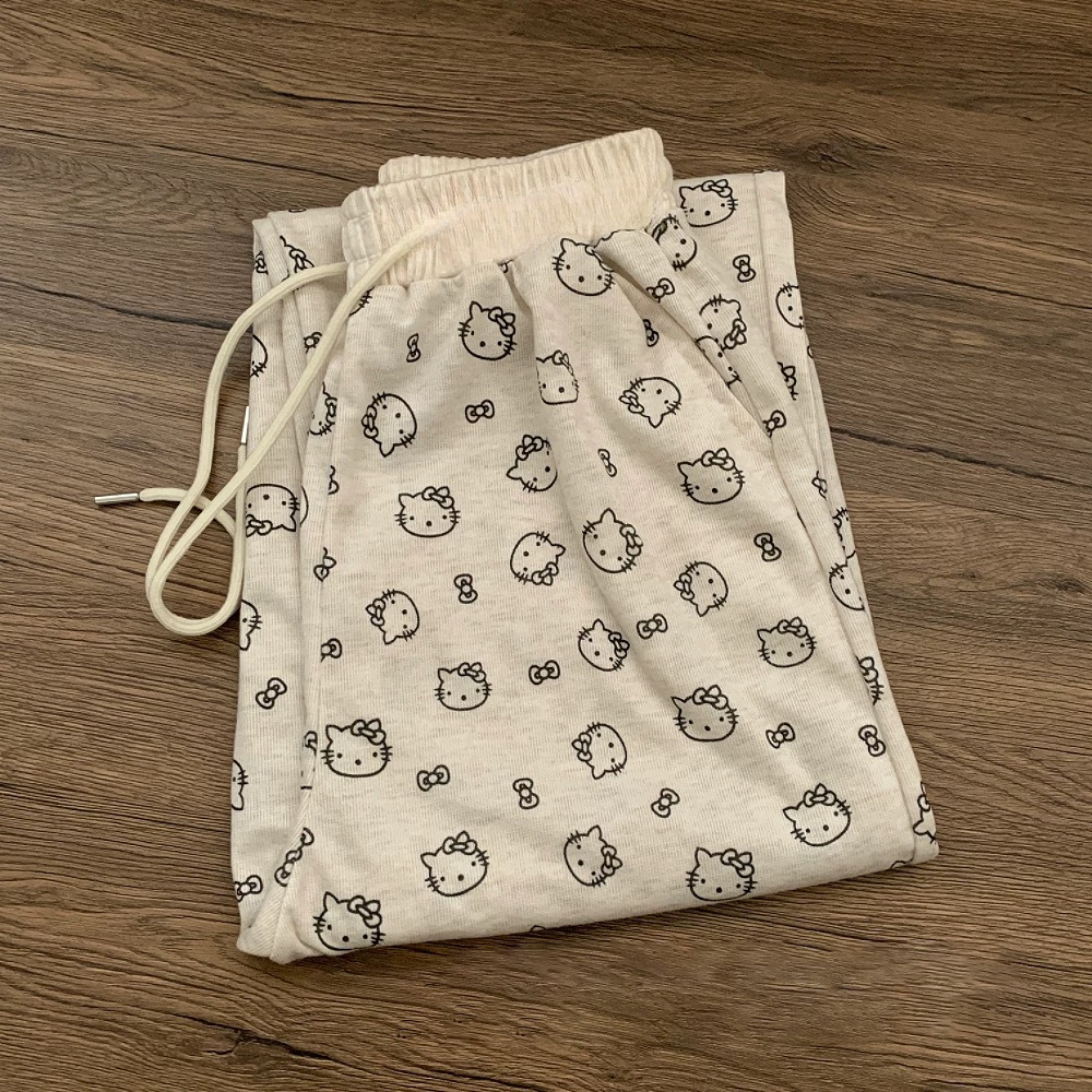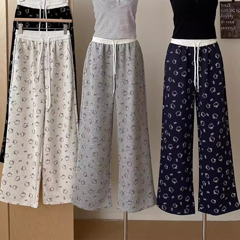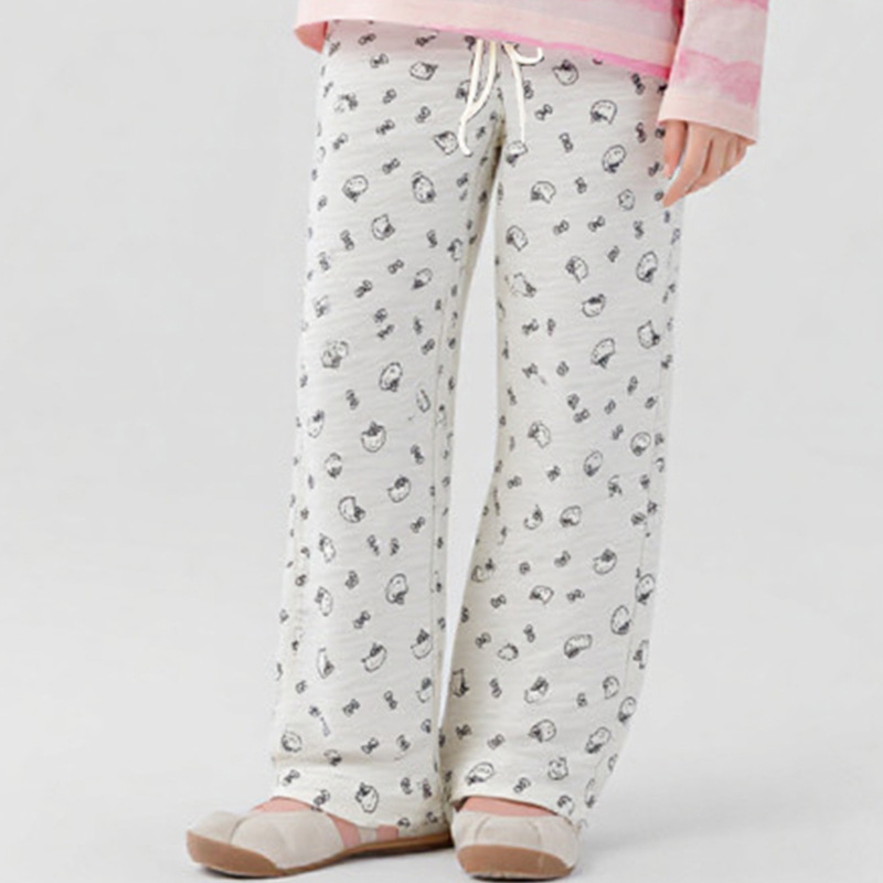 女童秋款印花阔腿裤儿童外穿蝴蝶结打底裤子宝宝弹力直筒休闲长裤