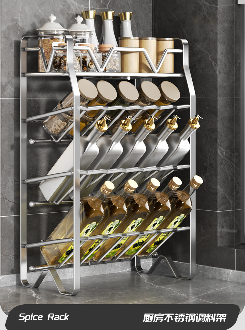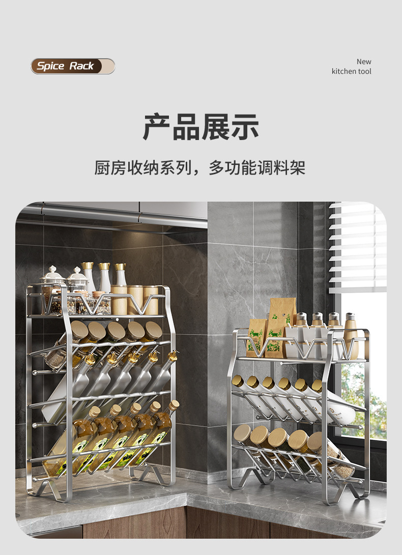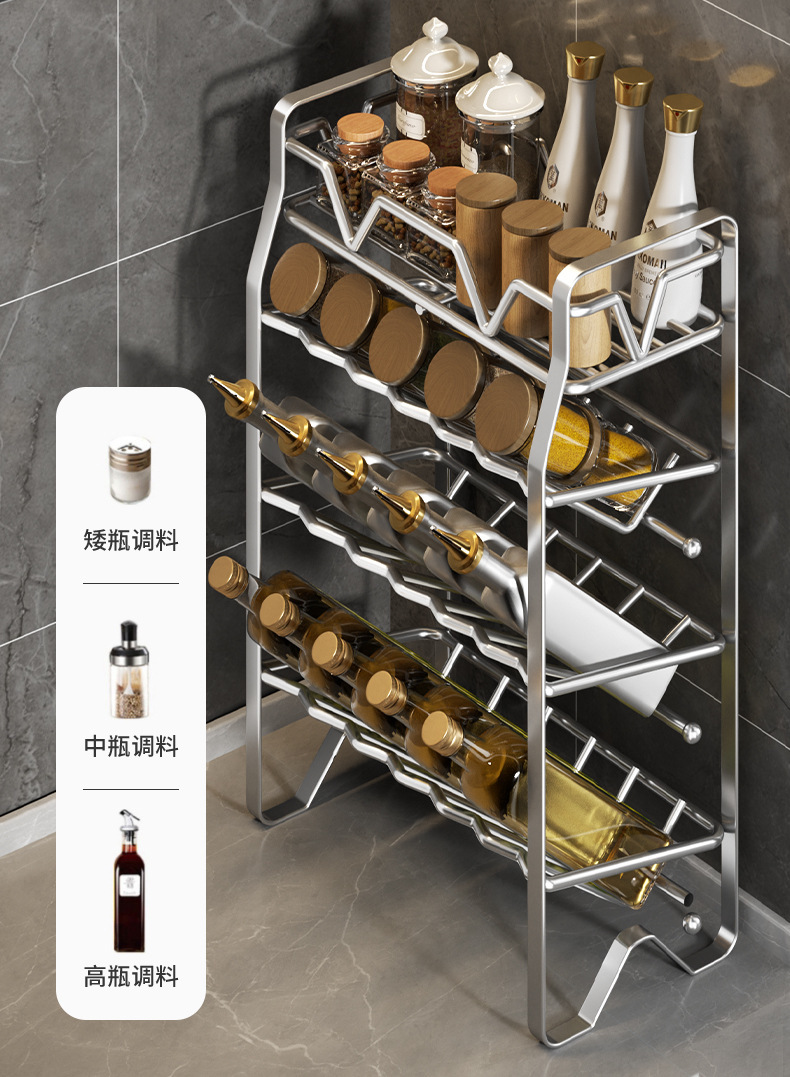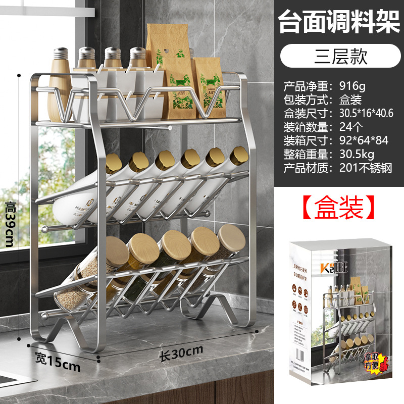 不锈钢厨房置物架调料架厨房收纳架多功能锅架多层调味料架子