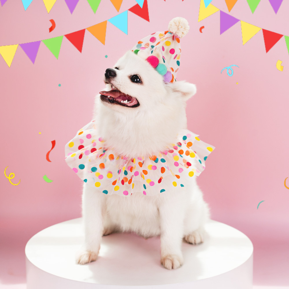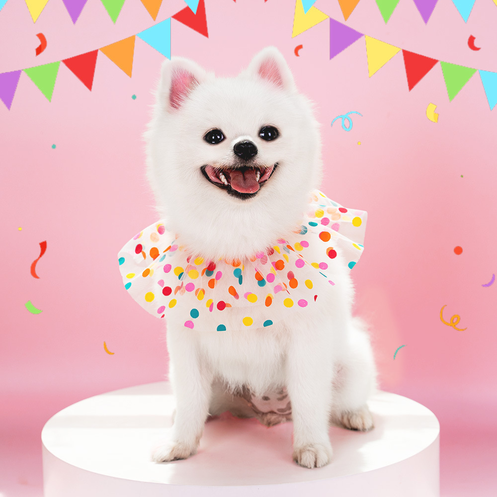 跨境宠物波点花边围兜生狗狗生日波点套装猫咪韩式派对用品厂家