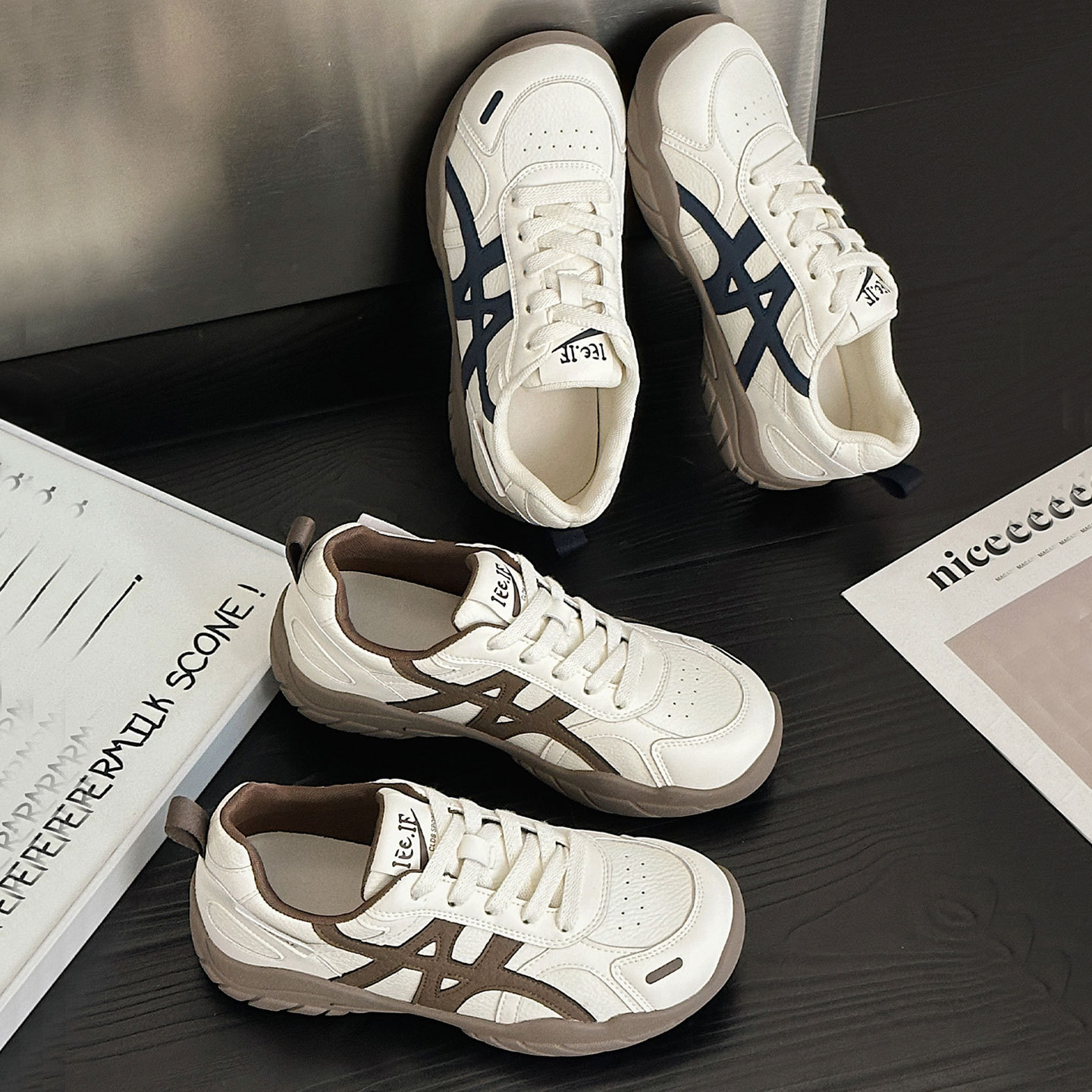 她履韩版老爹鞋女真皮厚底阿甘德训鞋2025秋季新款轻便户外休闲鞋