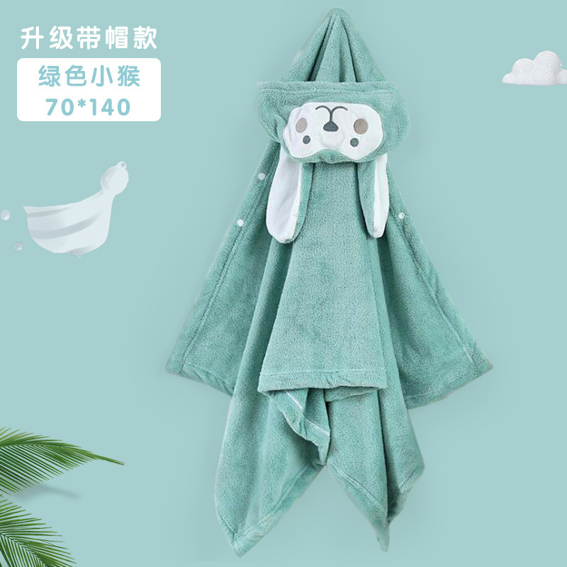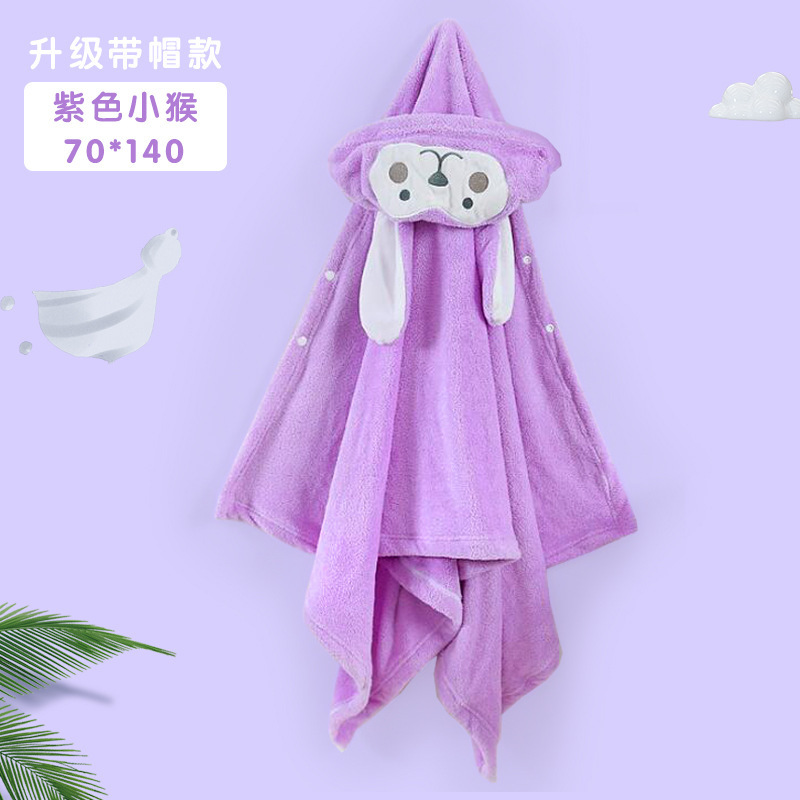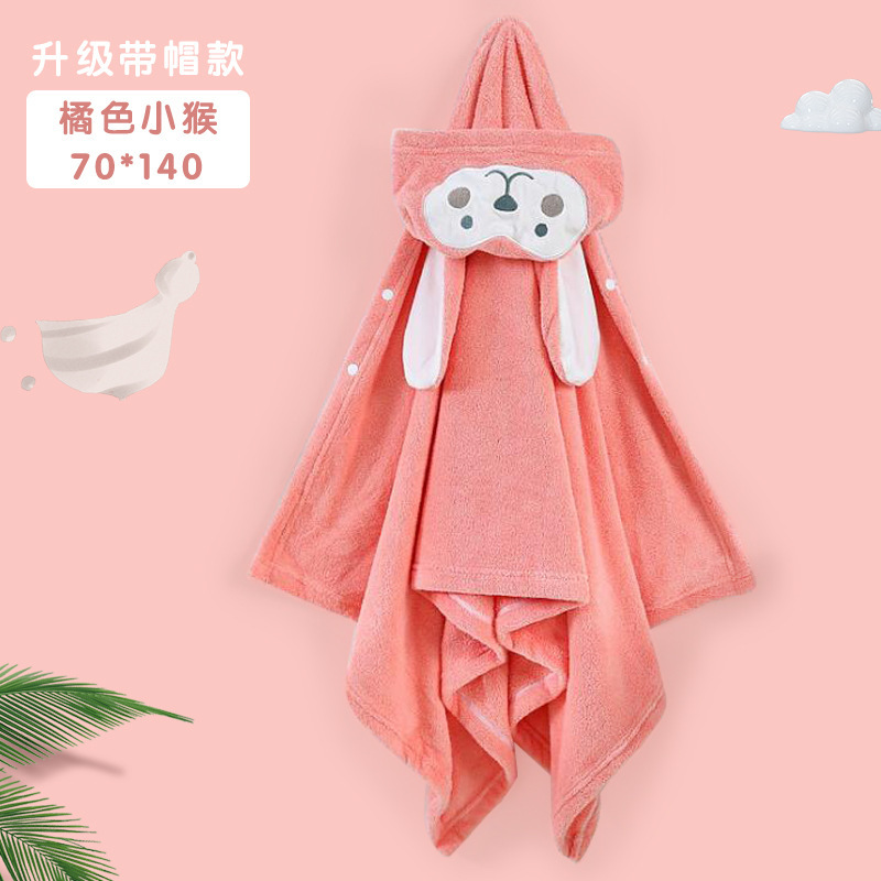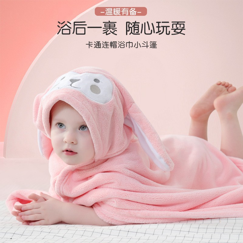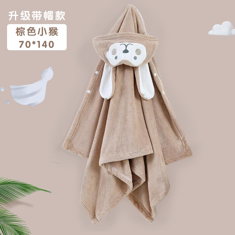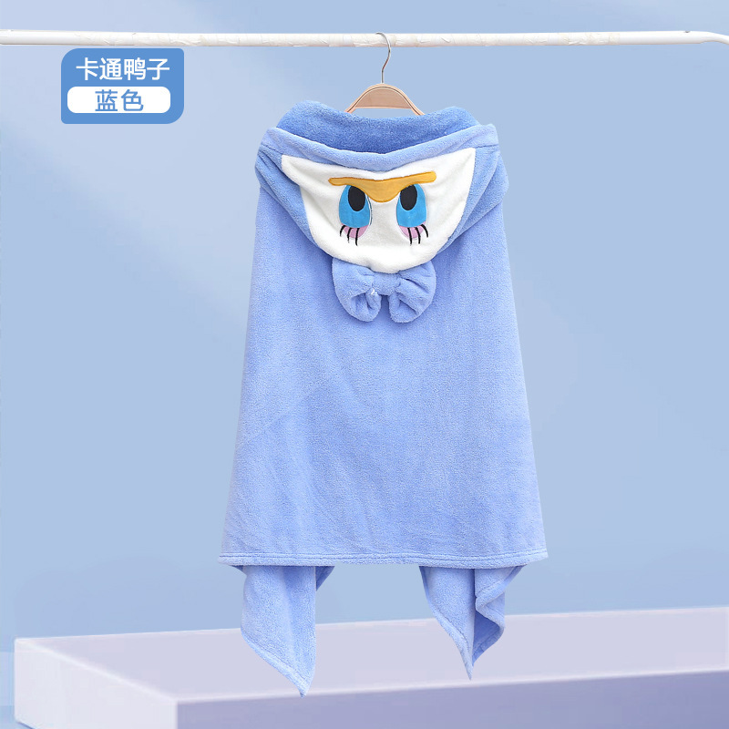 儿童可爱动物浴巾珊瑚绒加厚吸水连帽斗篷四季可用新生儿裹巾浴袍