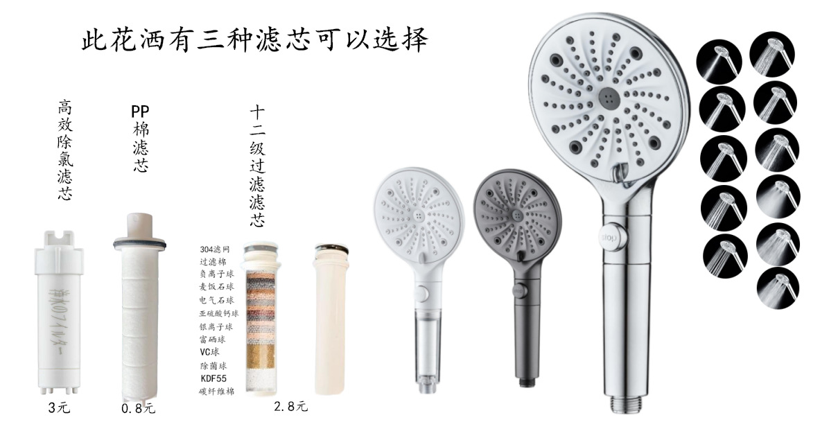 跨境手持新款花洒多功能过滤喷头淋浴微气泡莲蓬头
