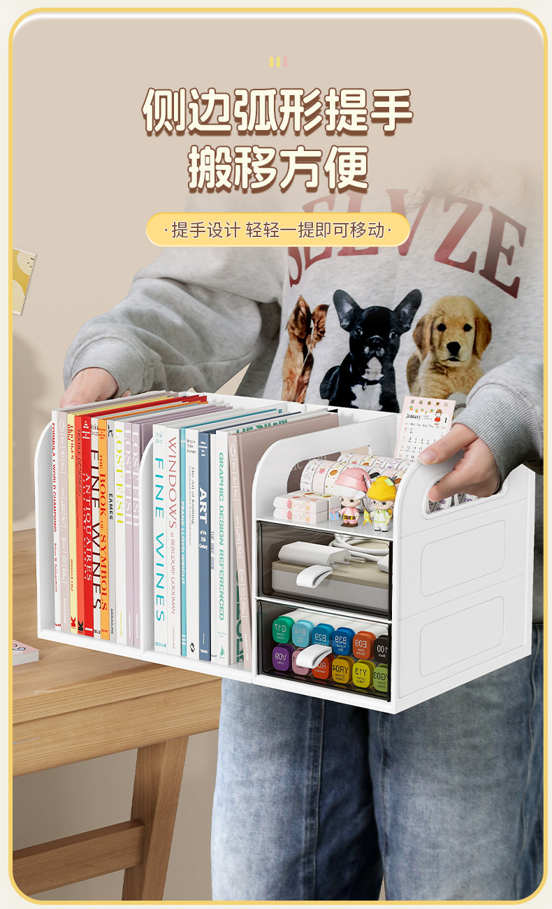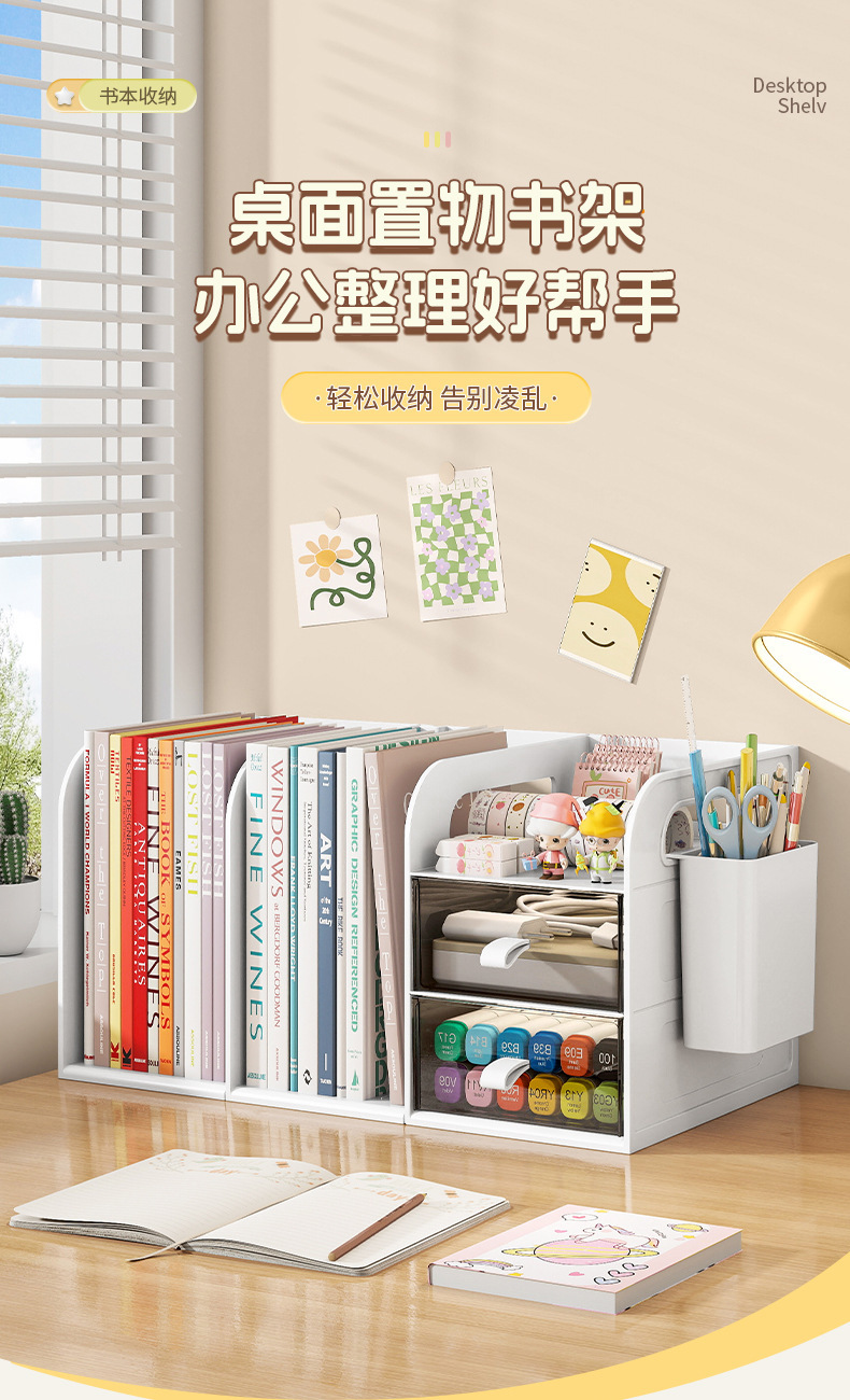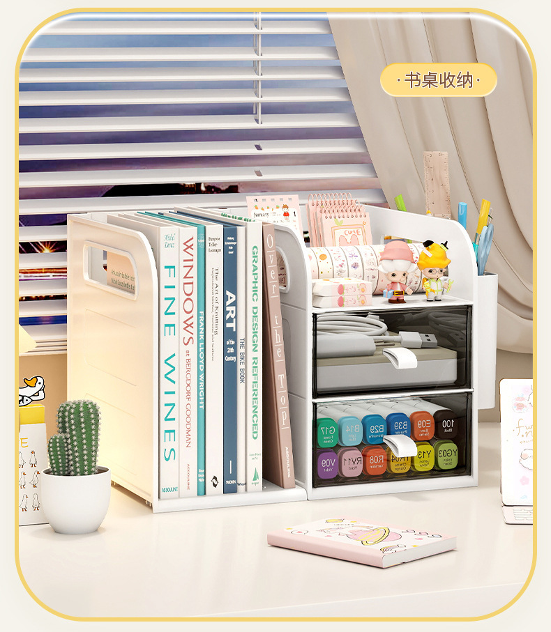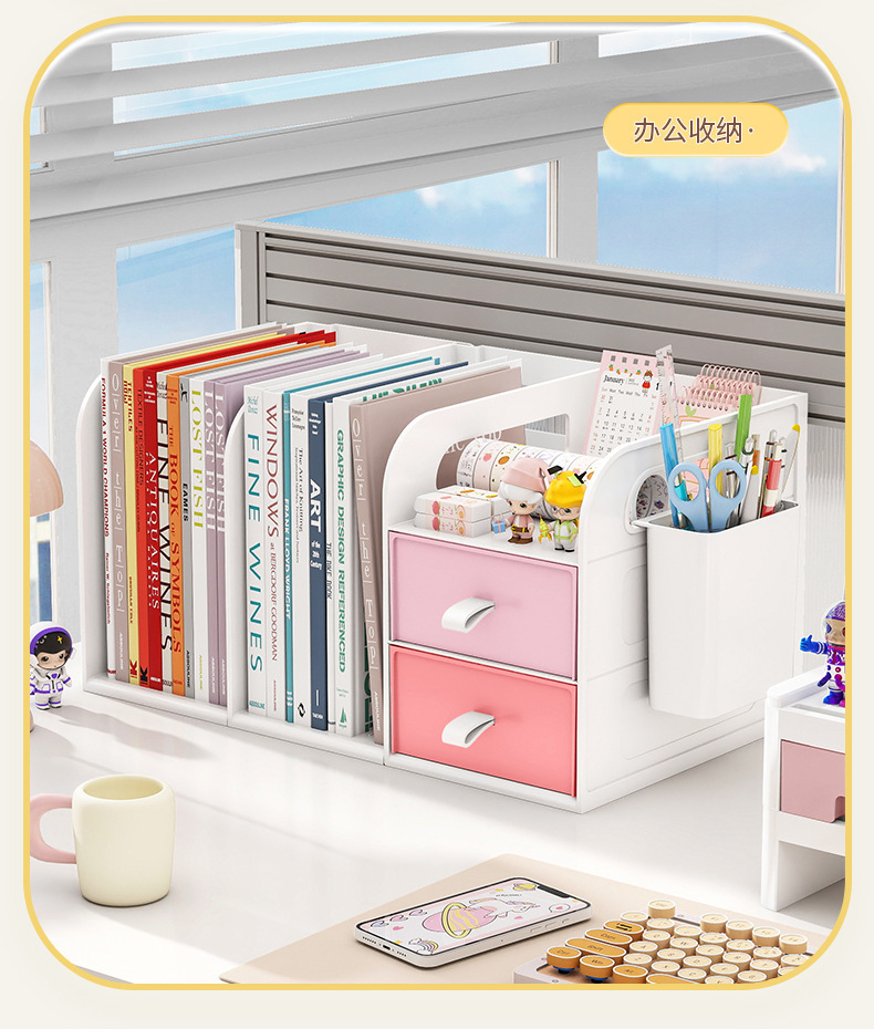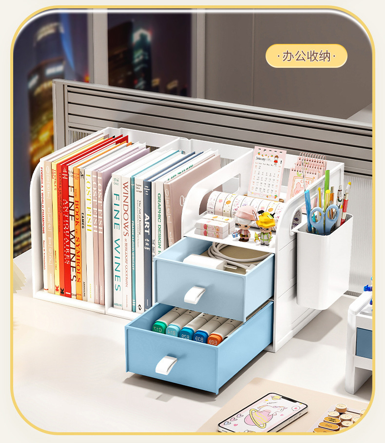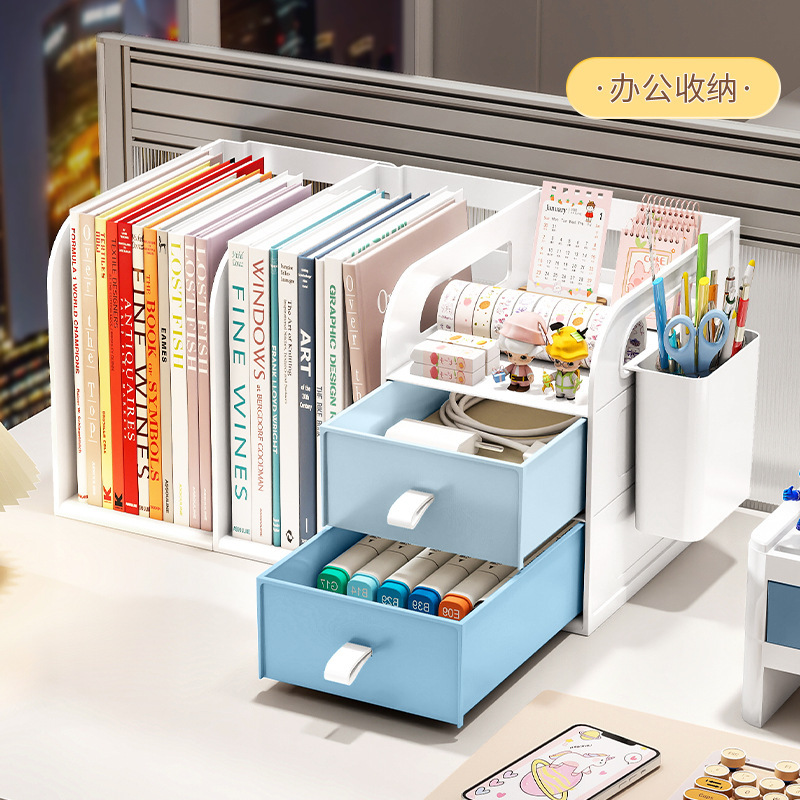 桌面书架简易学生儿童收纳整理置物架办公室桌上文件抽屉式收纳盒
