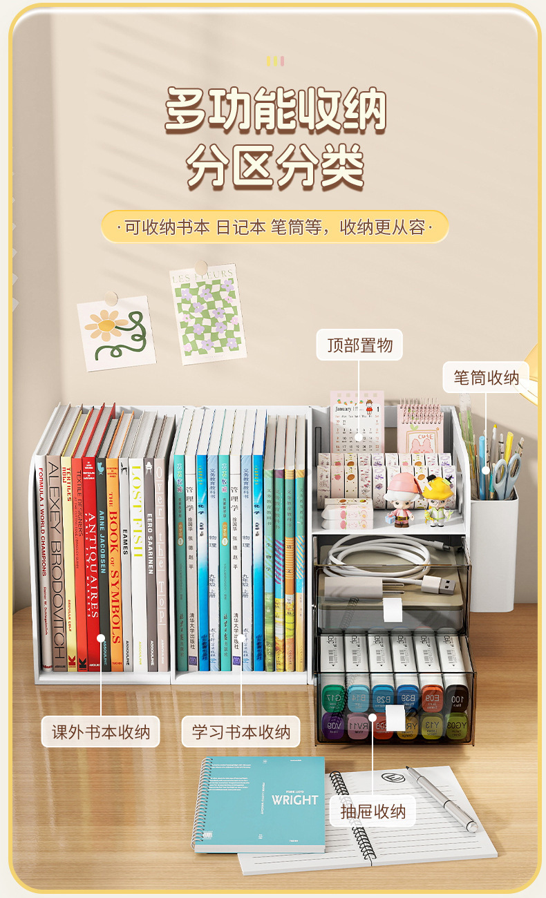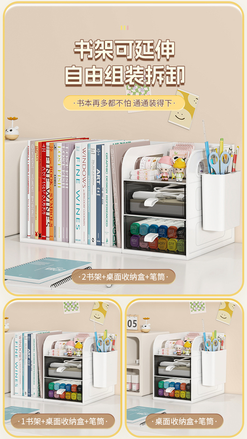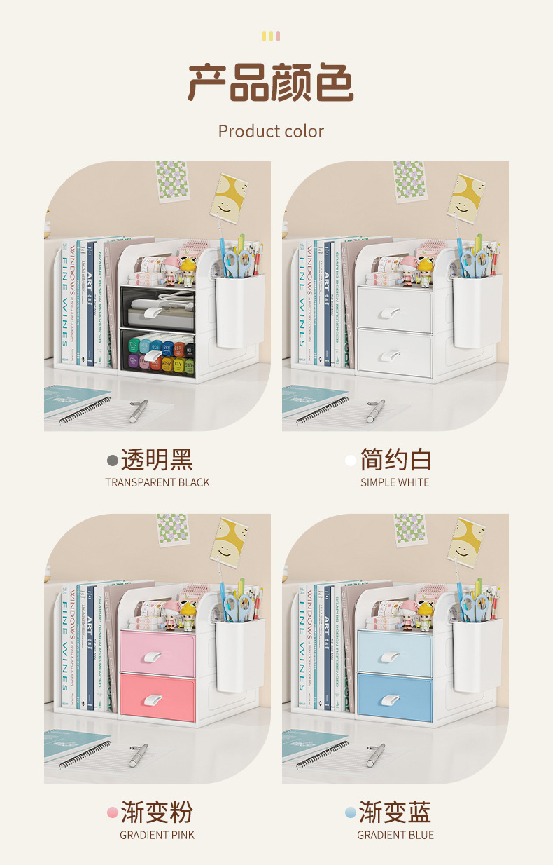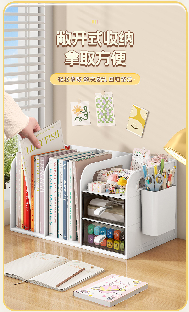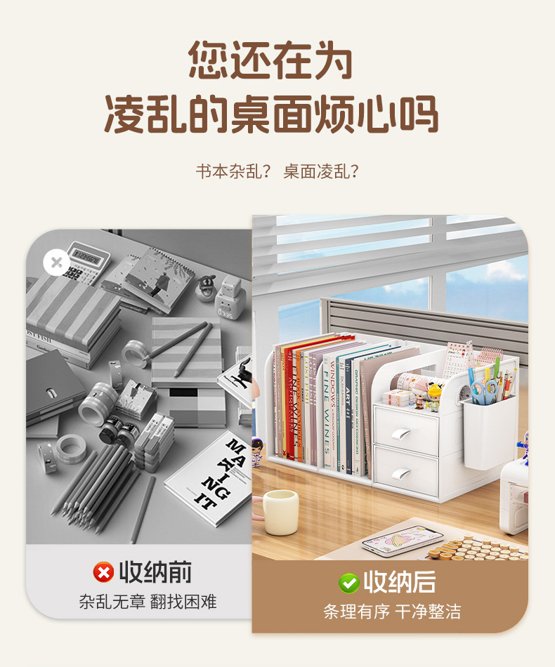 桌面书架简易学生儿童收纳整理置物架办公室桌上文件抽屉式收纳盒