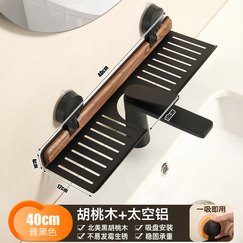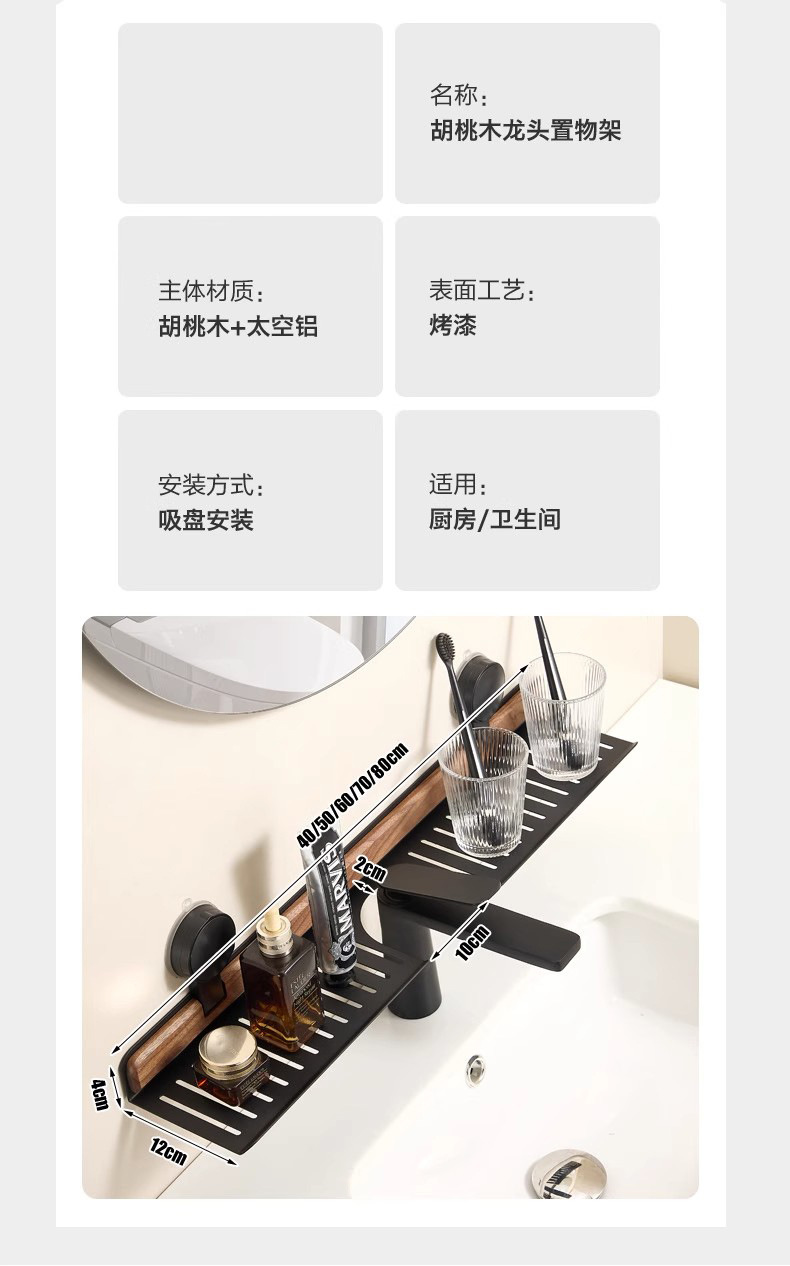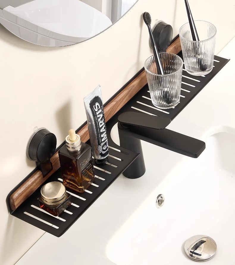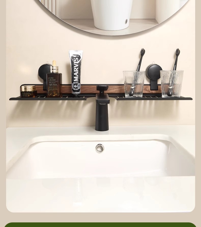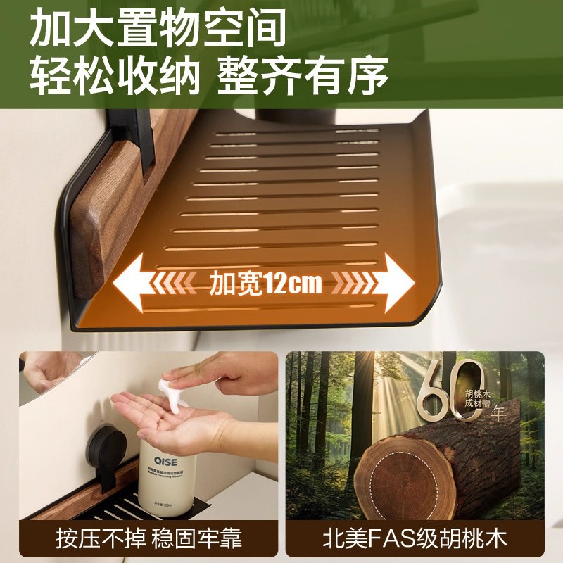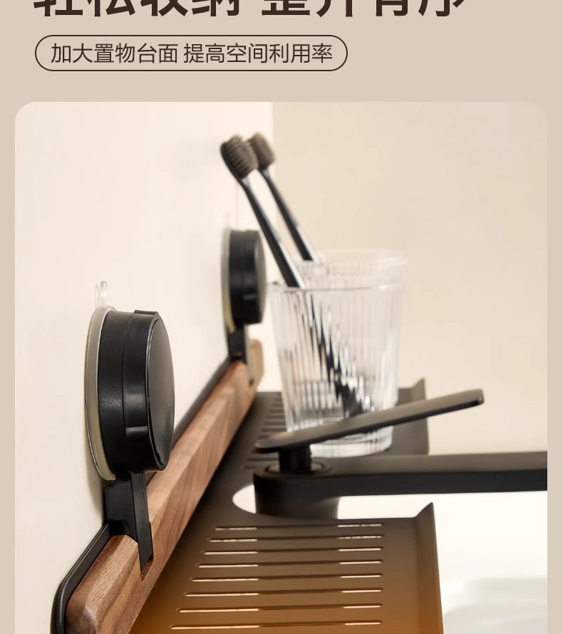 胡桃木吸盘卫生间置物架免打孔浴室镜前水龙头洗漱台洗手池收纳架