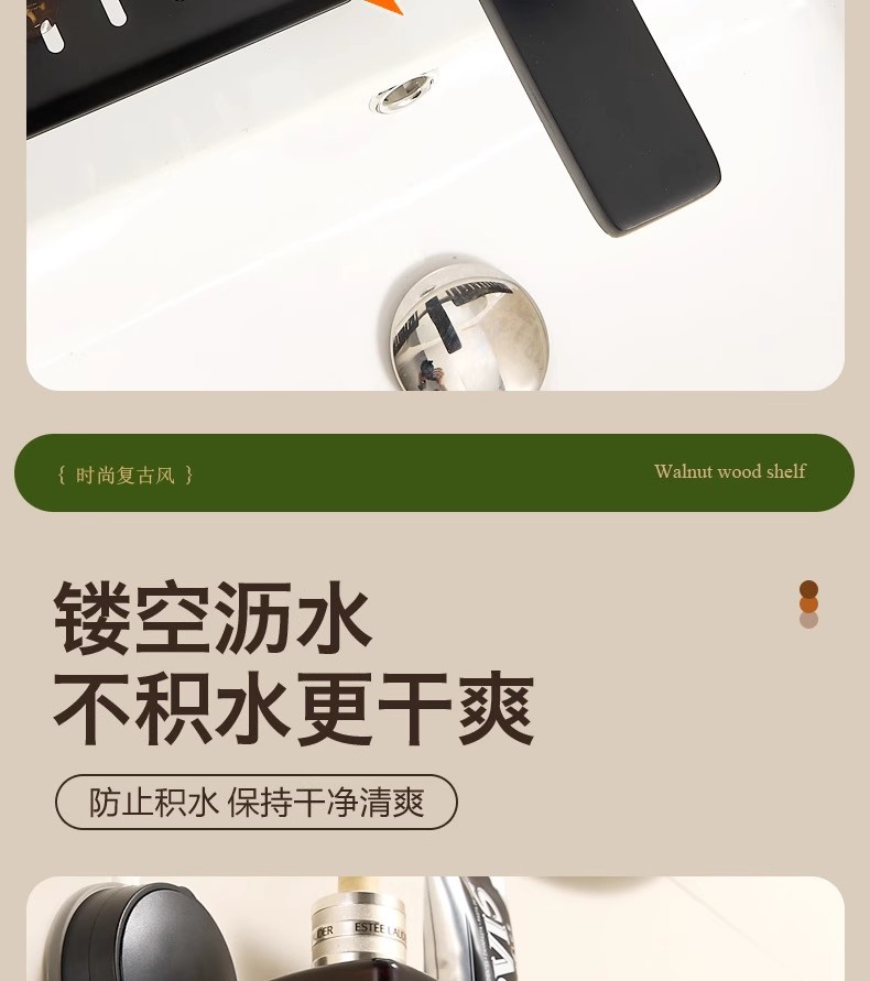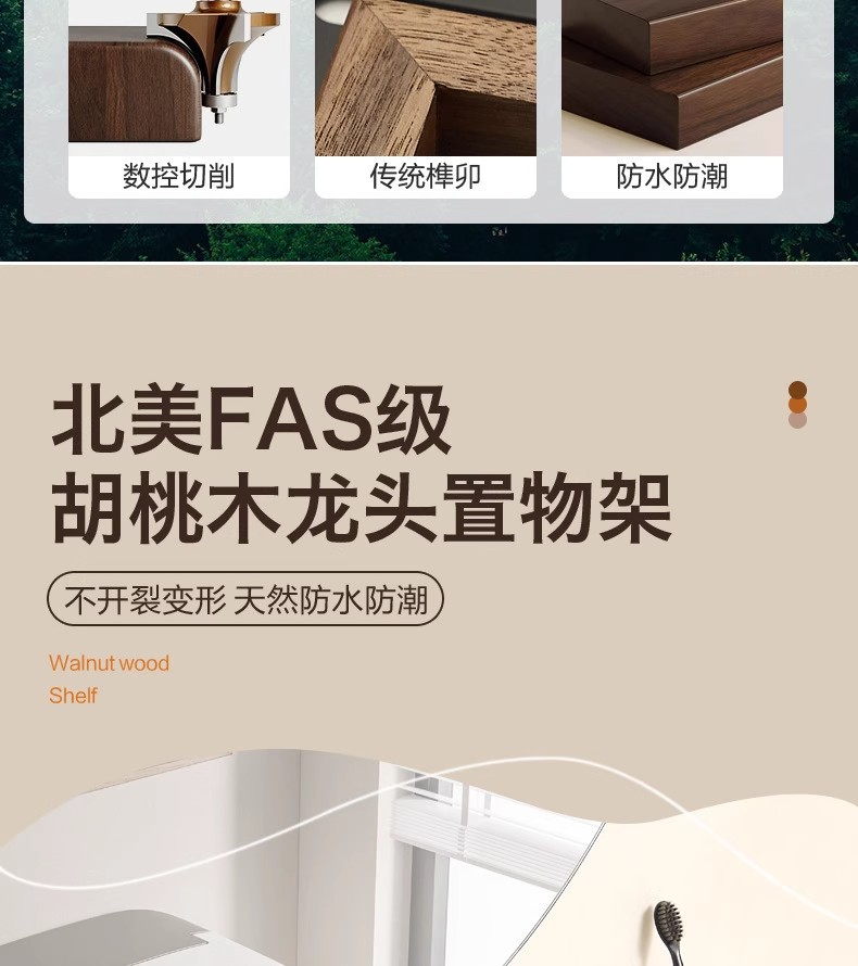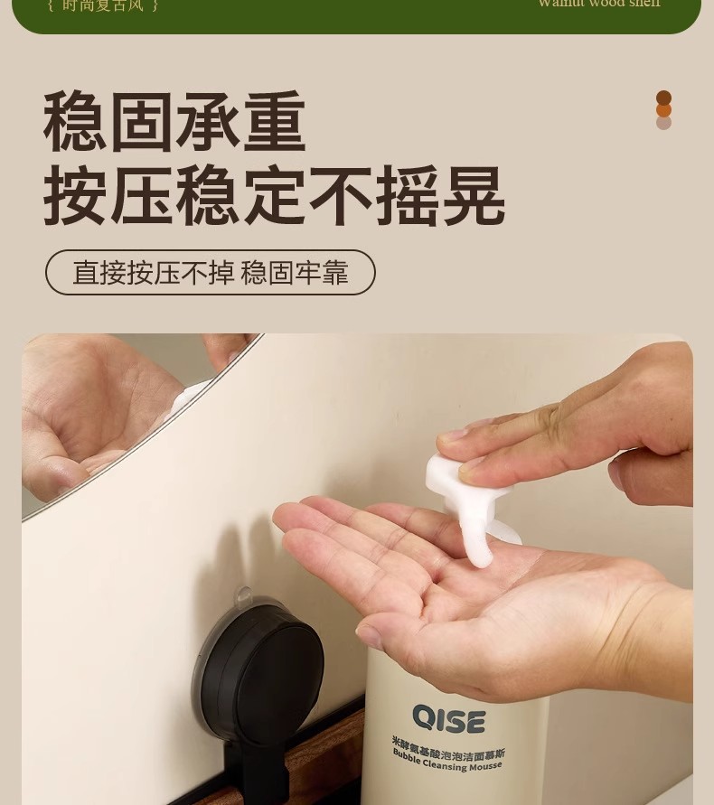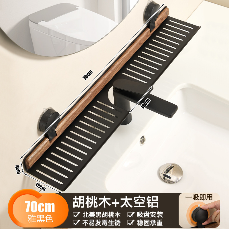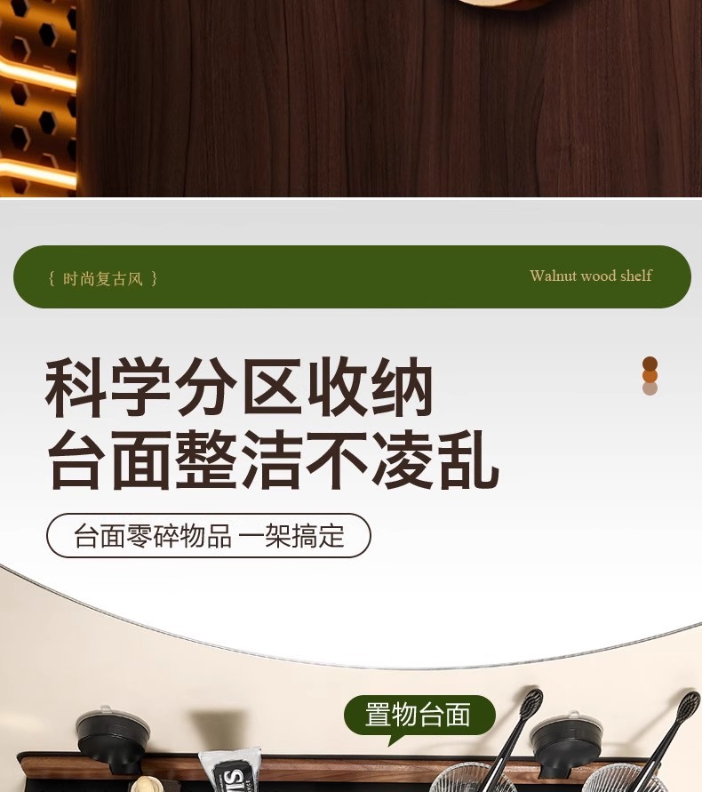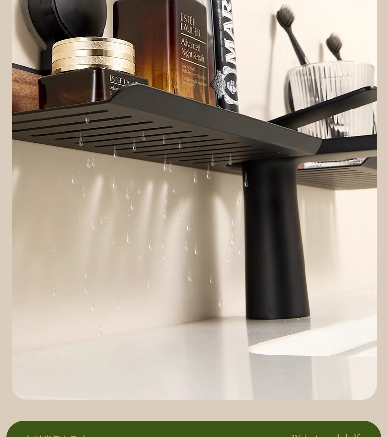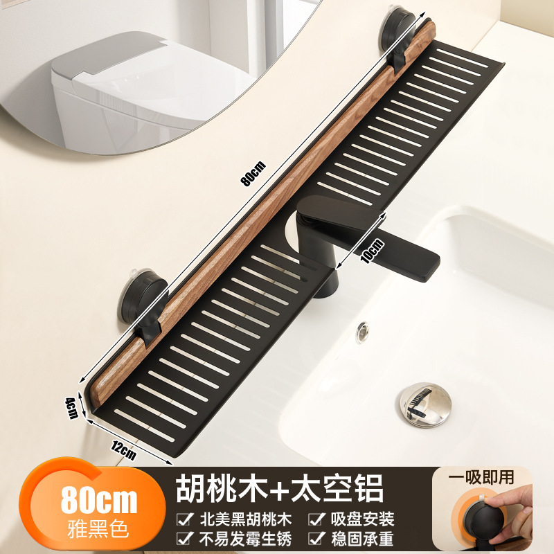 胡桃木吸盘卫生间置物架免打孔浴室镜前水龙头洗漱台洗手池收纳架