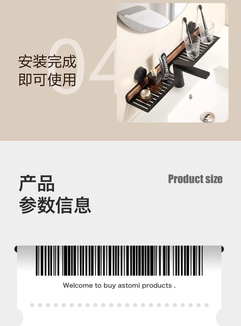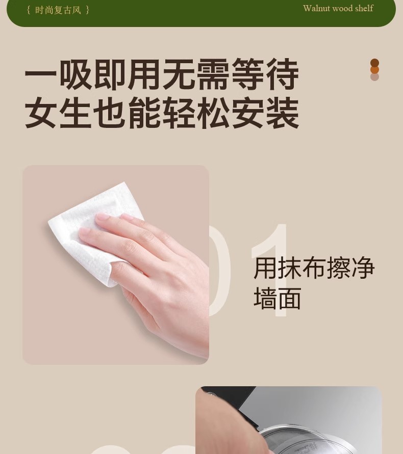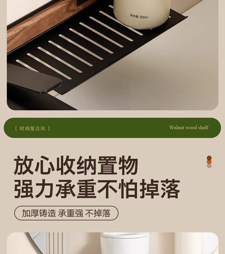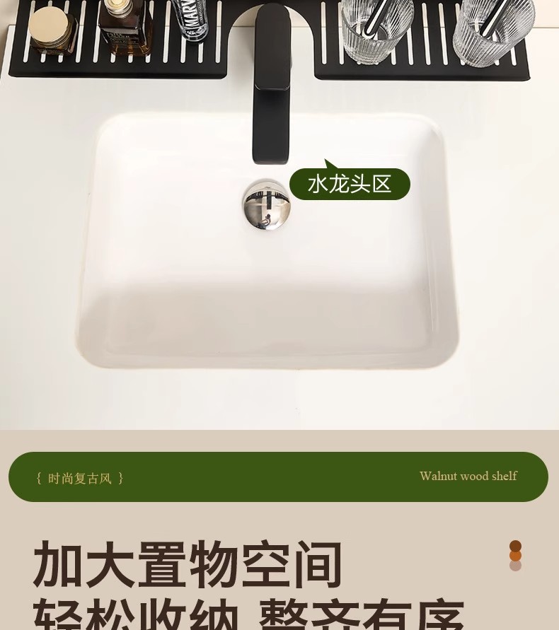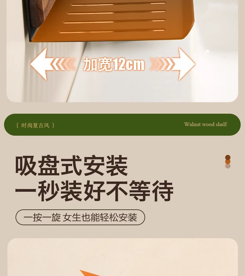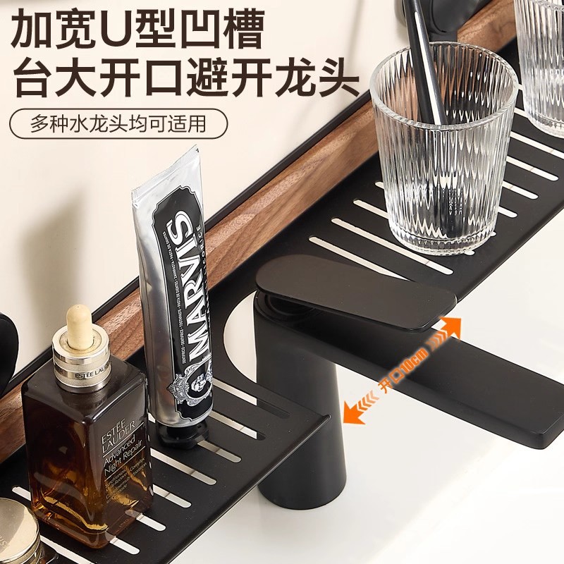 胡桃木吸盘卫生间置物架免打孔浴室镜前水龙头洗漱台洗手池收纳架