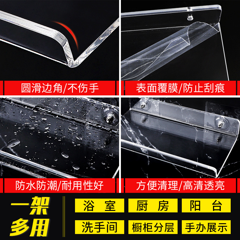 厂家批发亚克力置物架卫生间墙上免打孔收纳架浴室隔板镜柜储物架