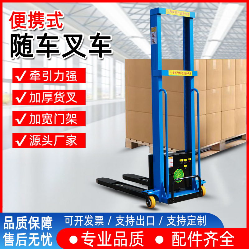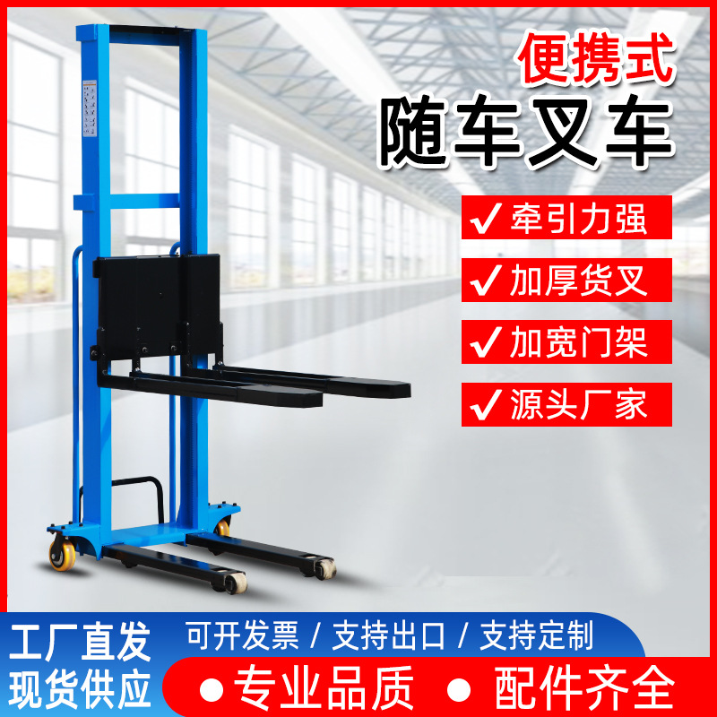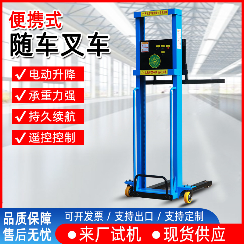便携式电动随车叉车全自动升降自体登高车搬运车堆高车半自动1吨