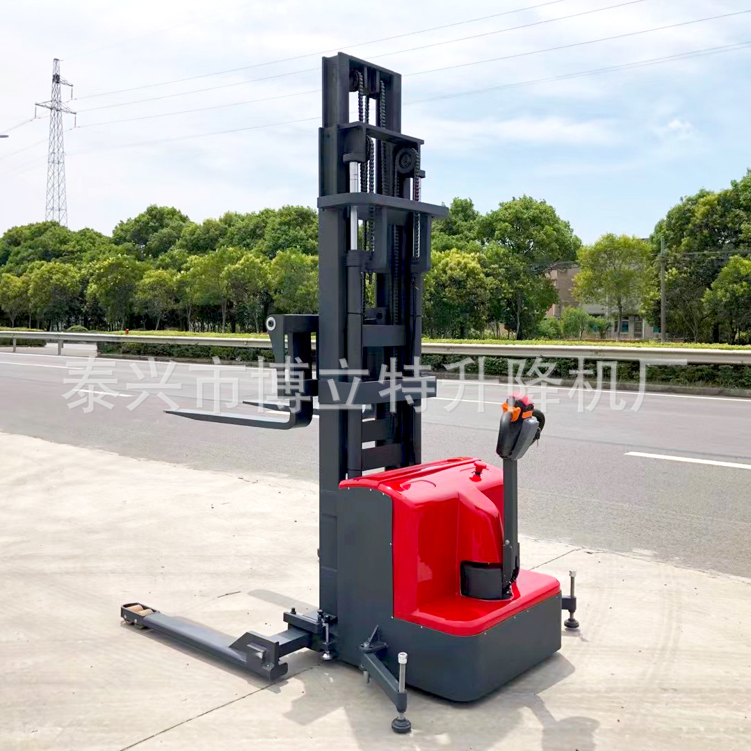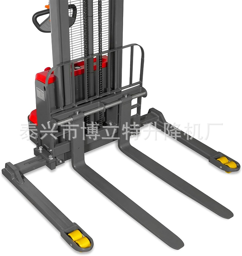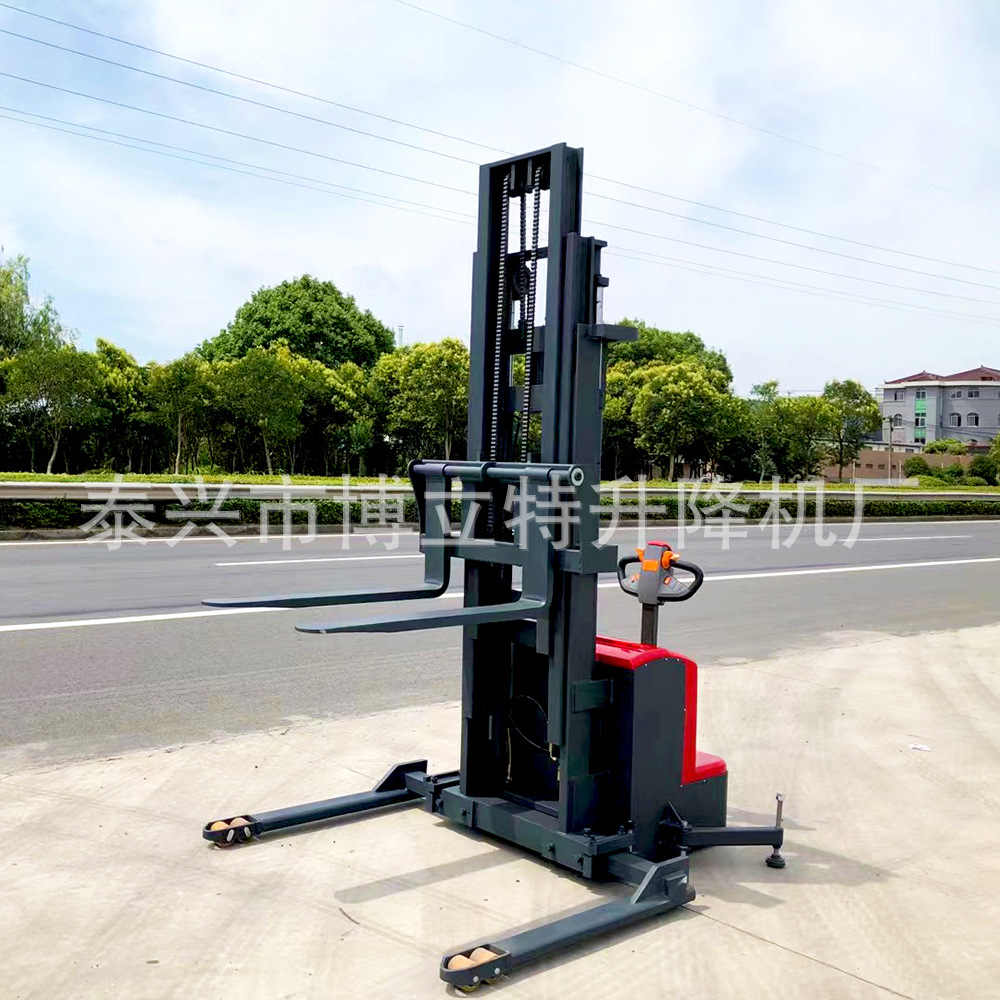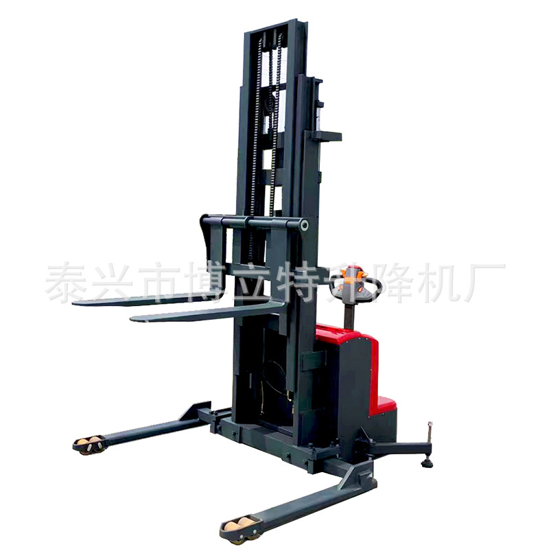 1.5吨3-6米宽腿式全电动堆高车支腿可调节液压装卸车加宽电瓶叉车
