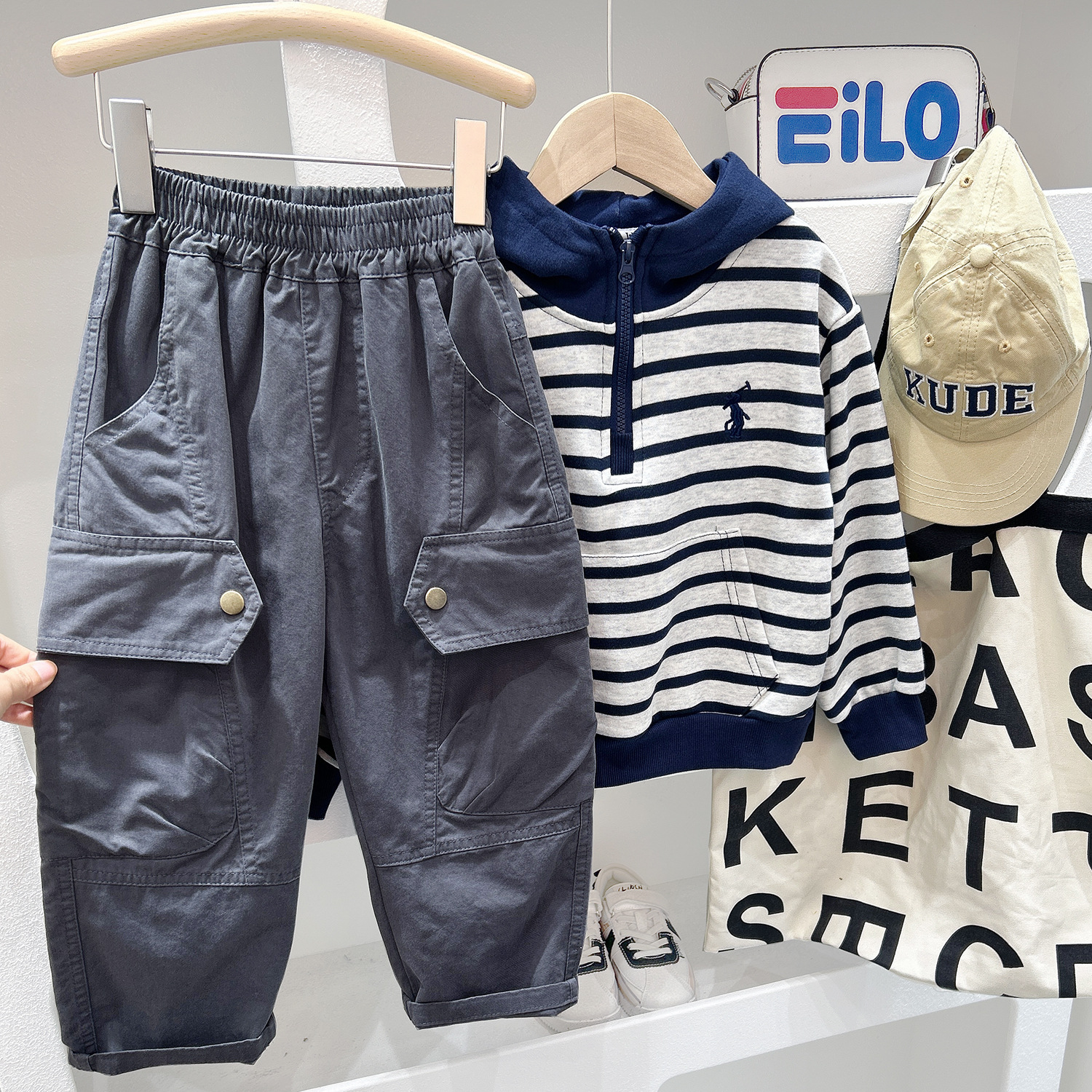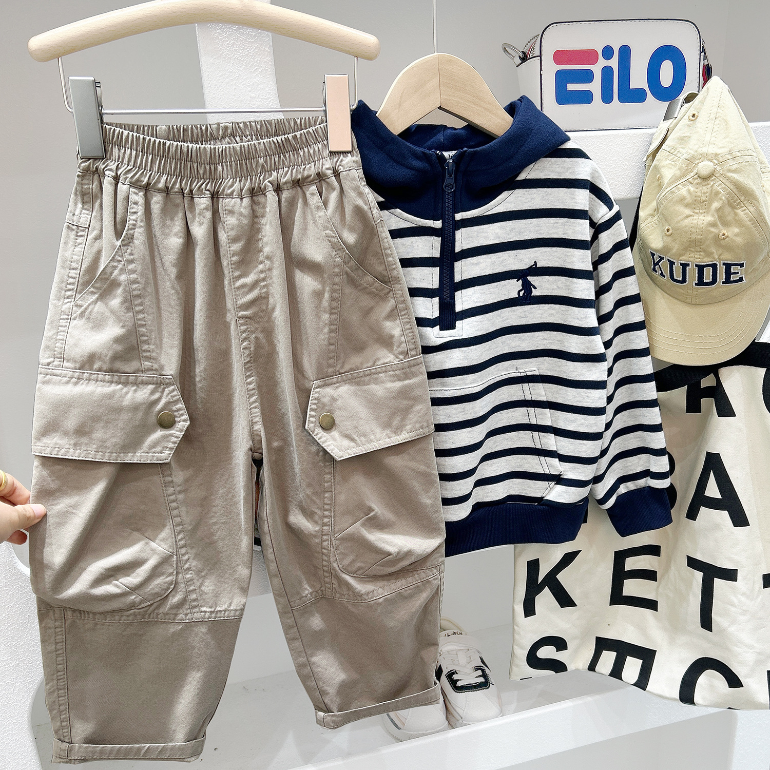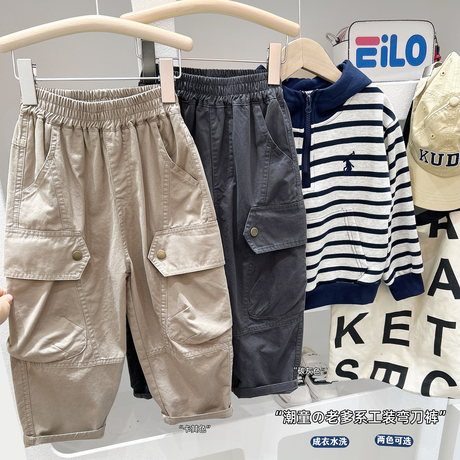 男童弯刀裤新款中大童宽松2026工装长裤中大童帅气童装韩版老爹裤