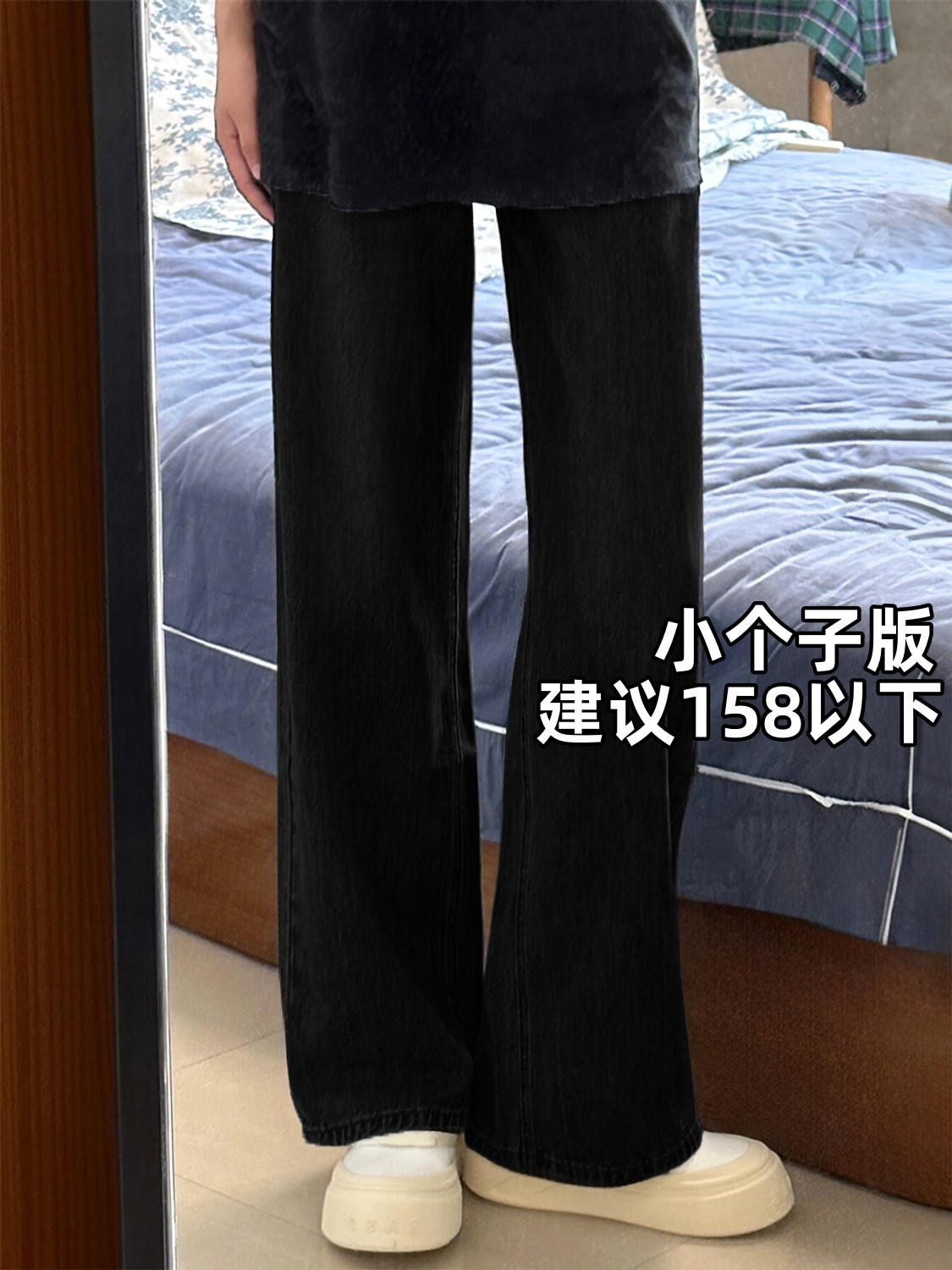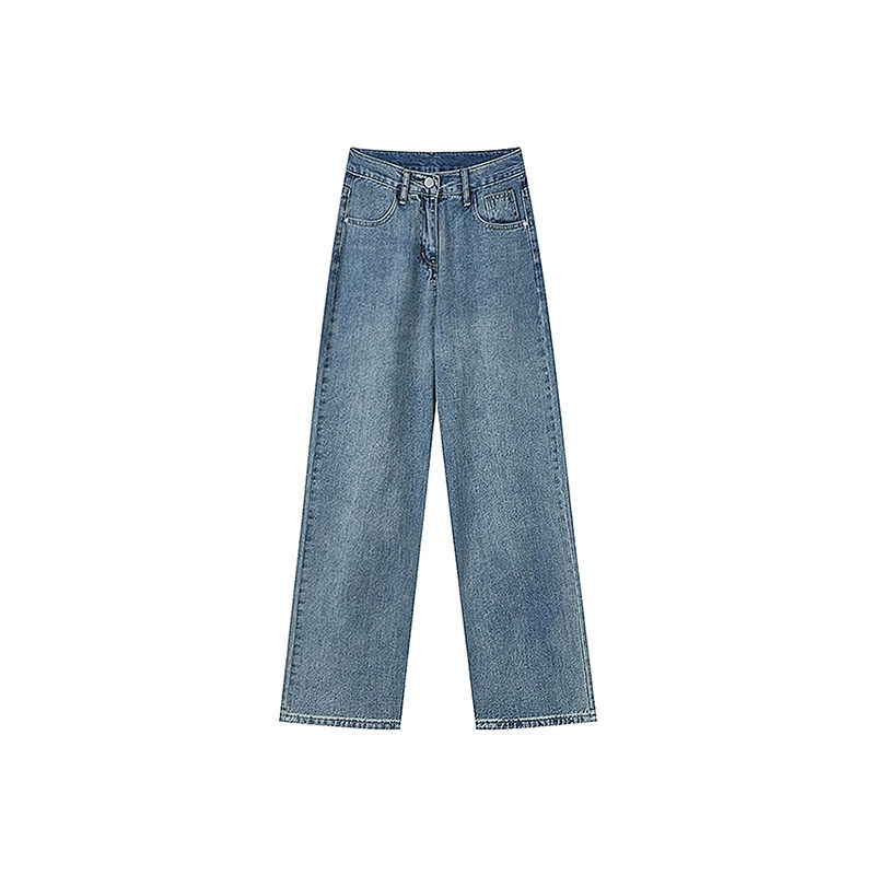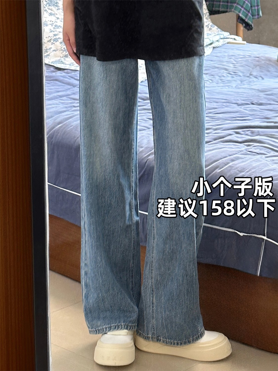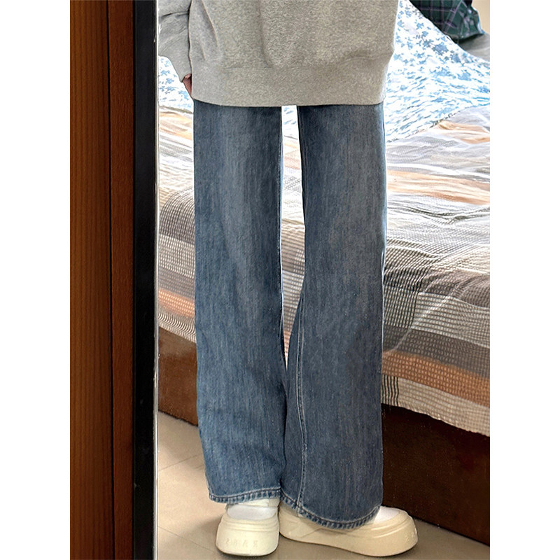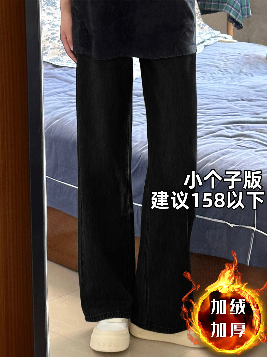 复古蓝直筒牛仔裤女秋冬加绒胖妹妹mm高腰宽松显瘦梨型身材阔腿裤
