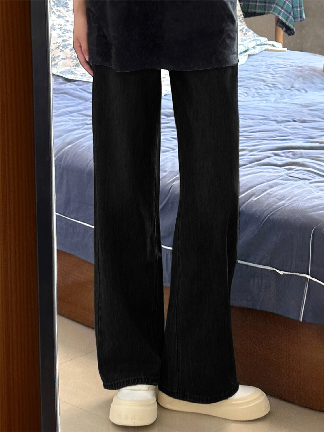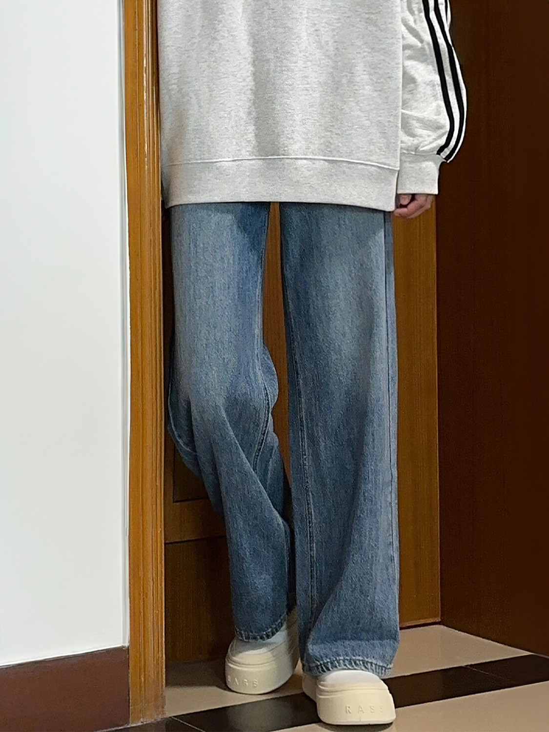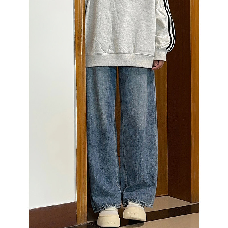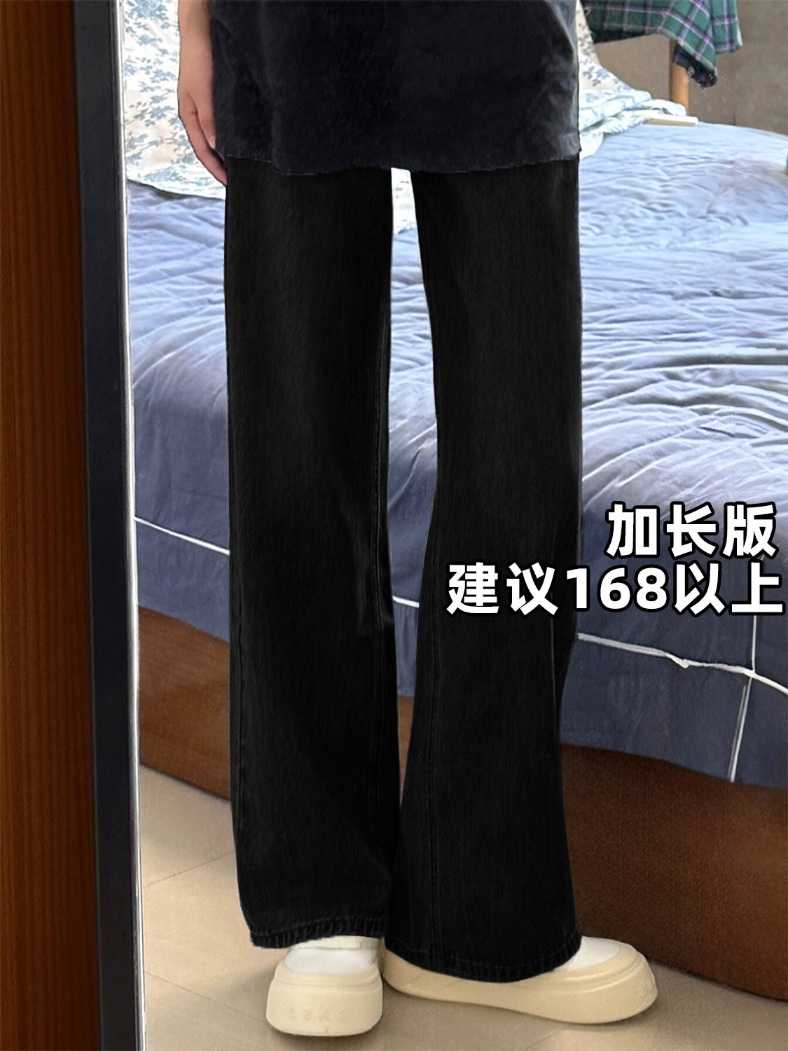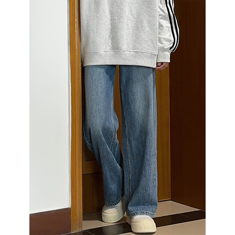 复古蓝直筒牛仔裤女秋冬加绒胖妹妹mm高腰宽松显瘦梨型身材阔腿裤