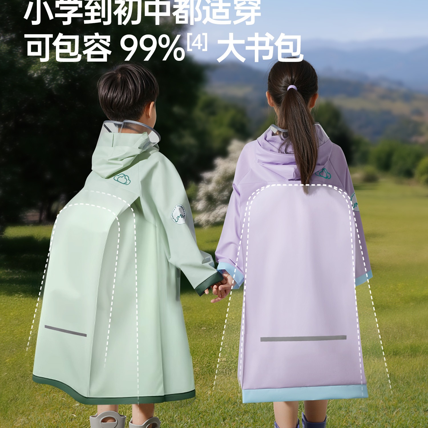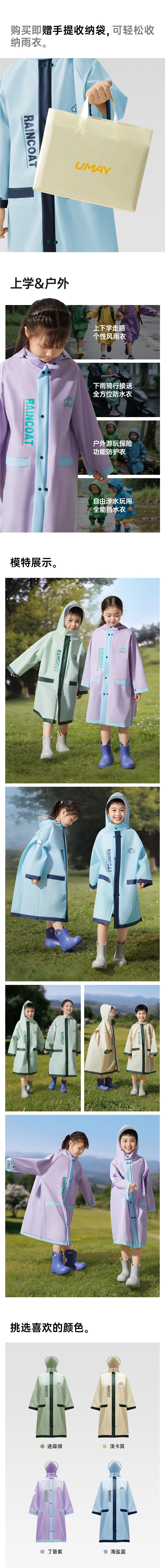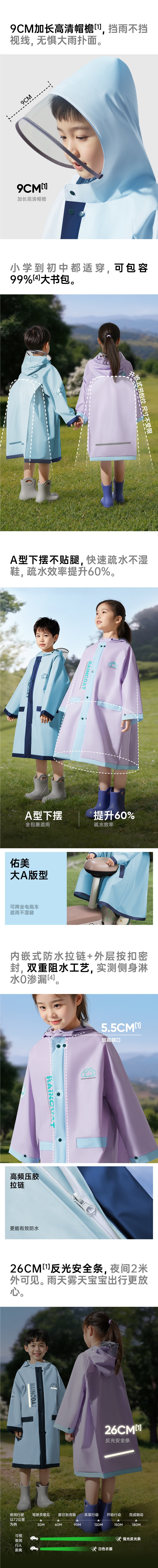 儿童雨衣男孩女孩小学生上学专用长款全身防暴雨带书包位宝宝雨披