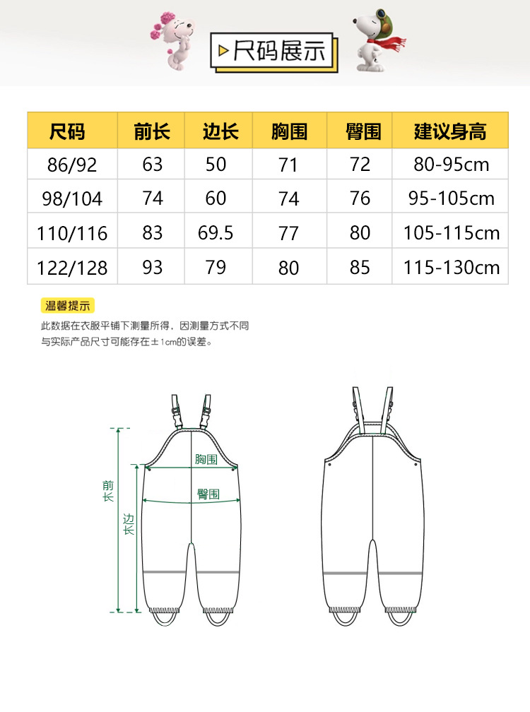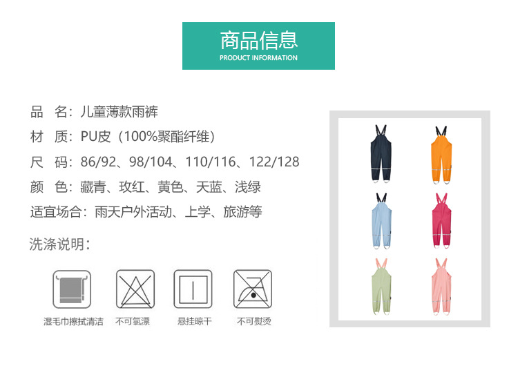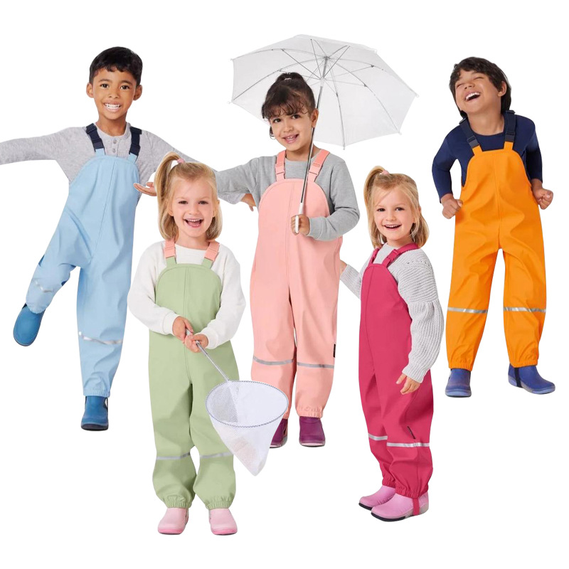 儿童雨裤防水裤男童女童幼儿园宝宝小学生连体全身背带雨裤下水裤