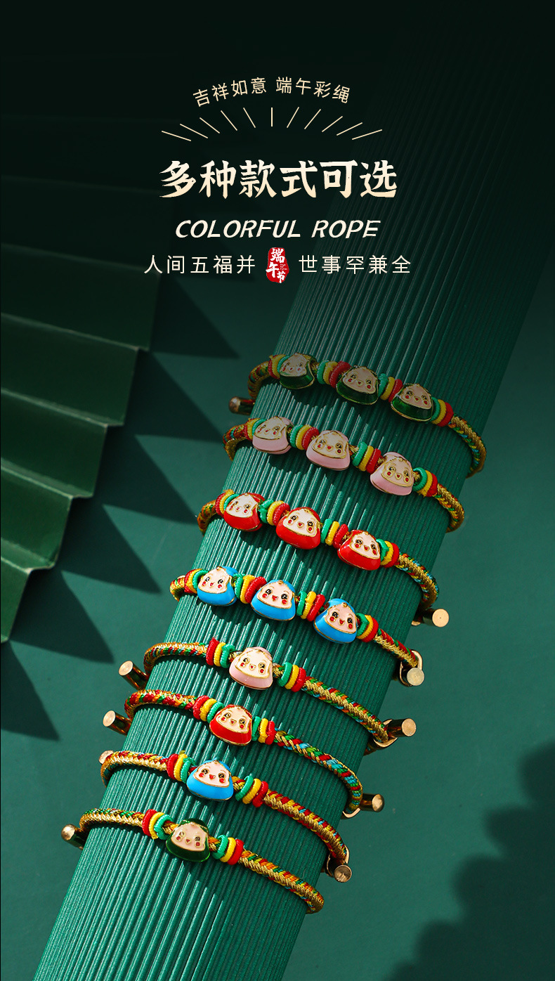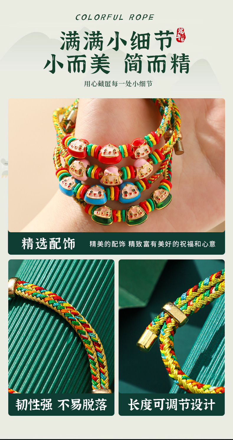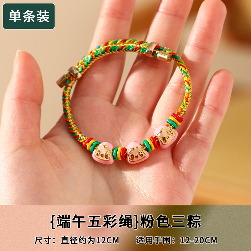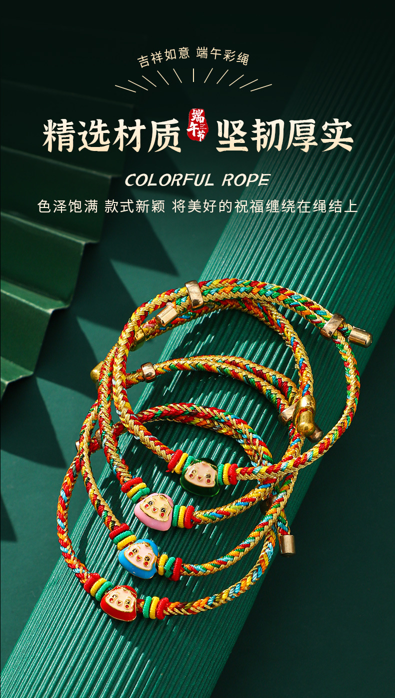 端午节五彩绳手链五色绕线可调节手工编织儿童卡通小粽子手绳礼物