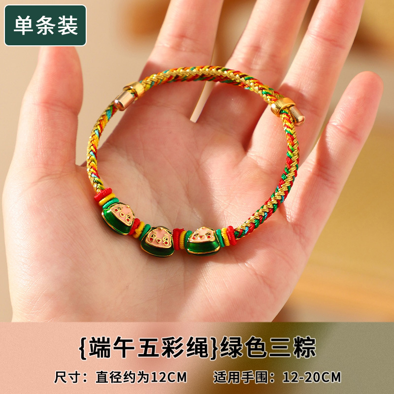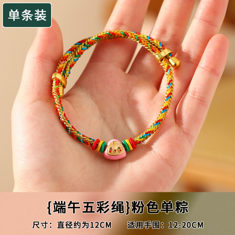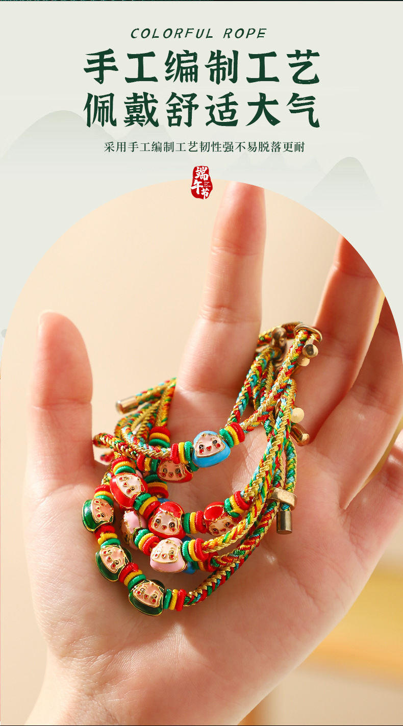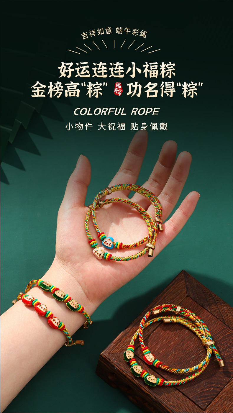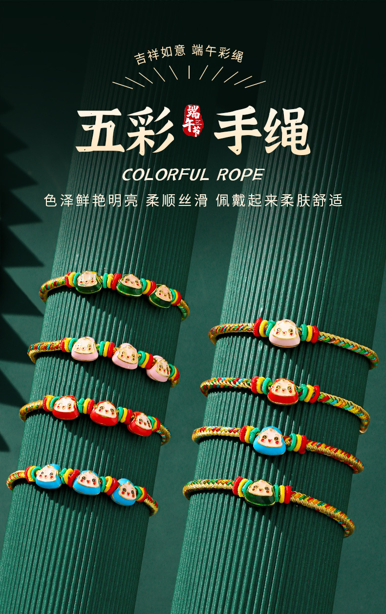 端午节五彩绳手链五色绕线可调节手工编织儿童卡通小粽子手绳礼物