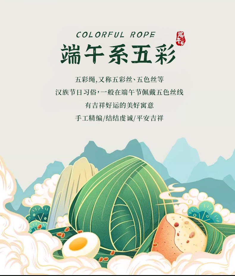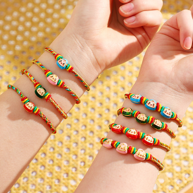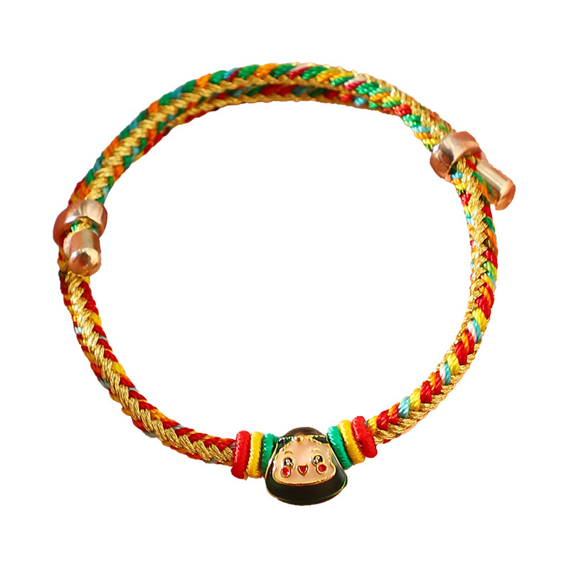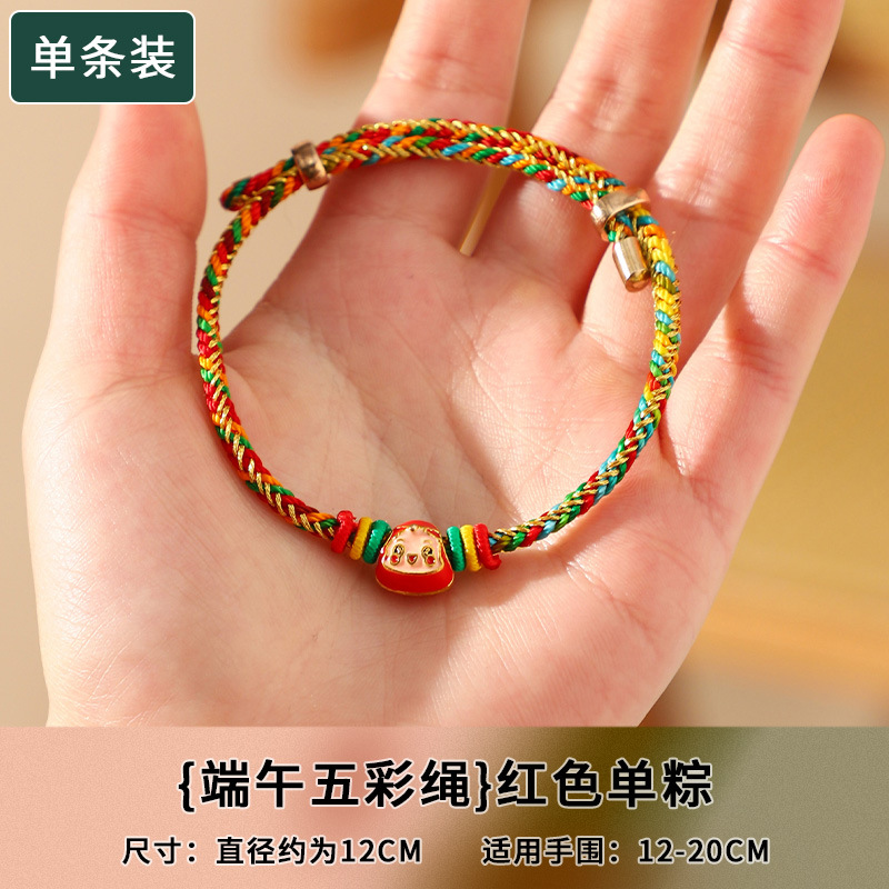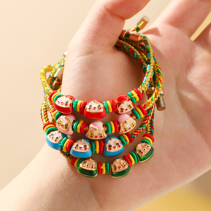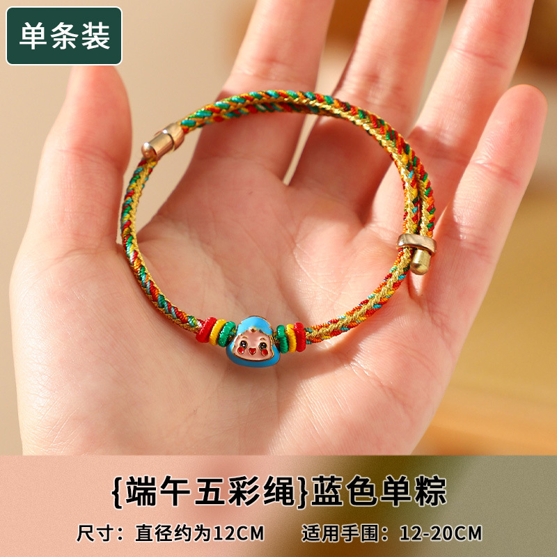端午节五彩绳手链五色绕线可调节手工编织儿童卡通小粽子手绳礼物