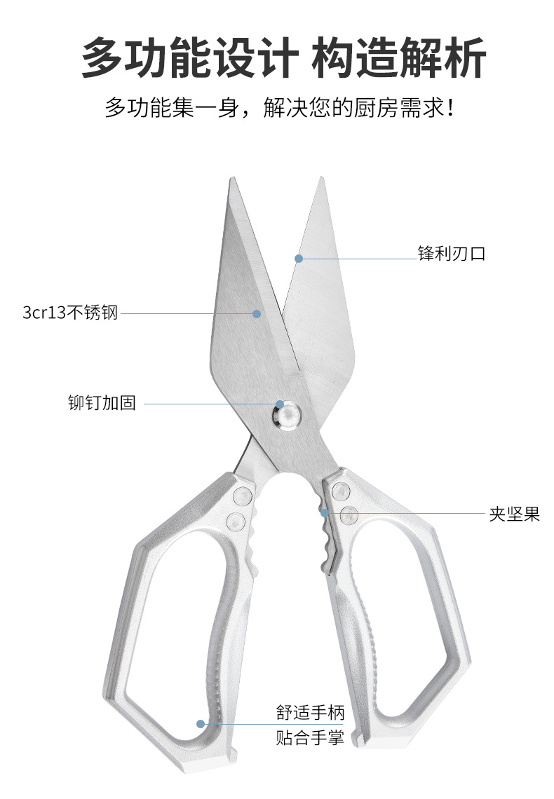 强力不锈钢加厚厨房多功能家用鸡骨剪户外露营专用烧烤加长食物剪