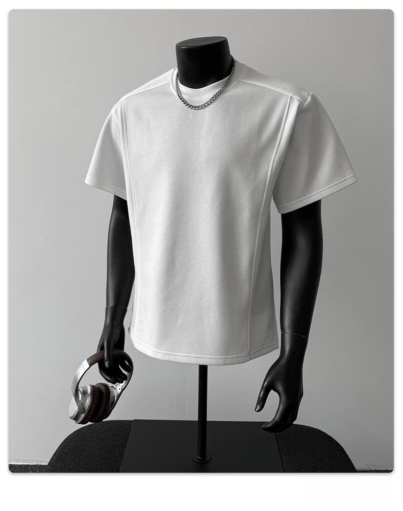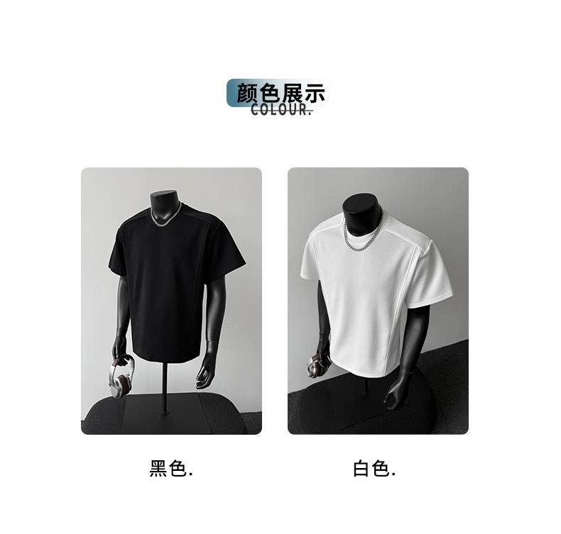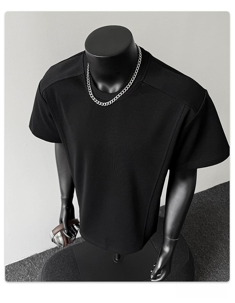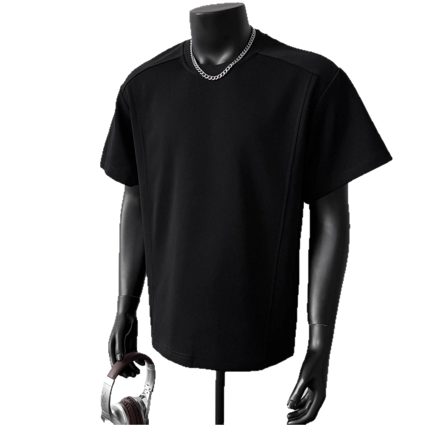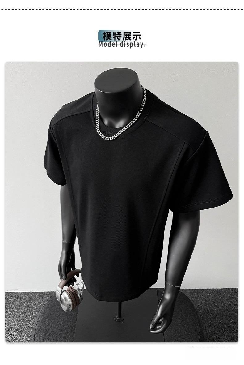 2026夏季新款轻奢痞帅男装正肩挺阔高级感短袖T恤男拼接圆领上衣