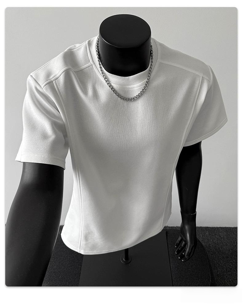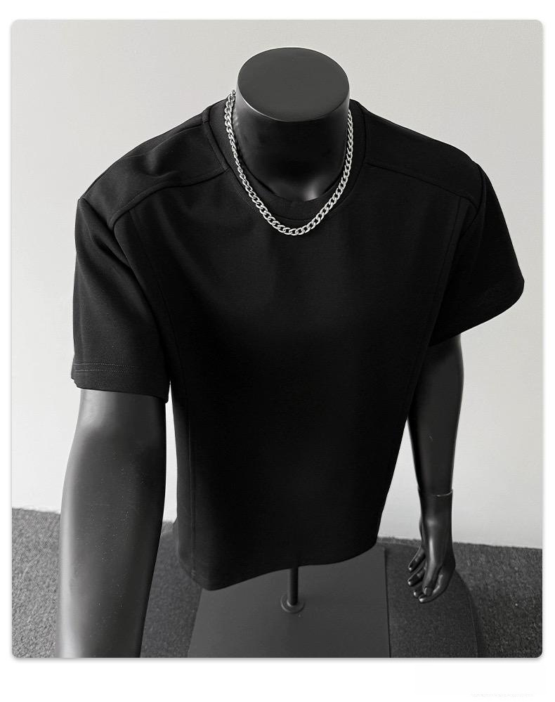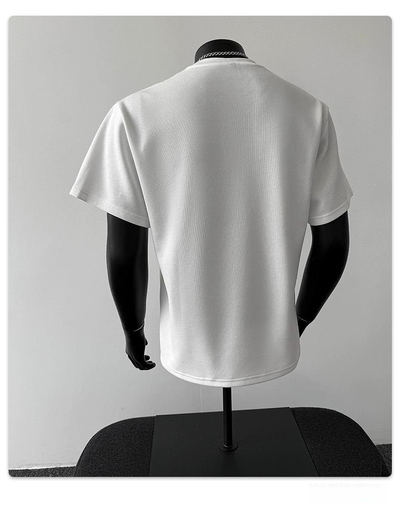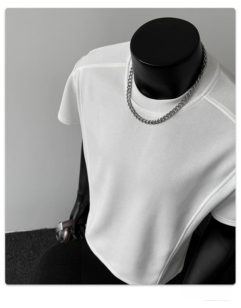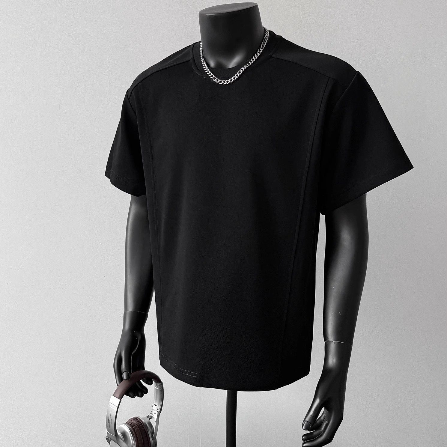 2026夏季新款轻奢痞帅男装正肩挺阔高级感短袖T恤男拼接圆领上衣