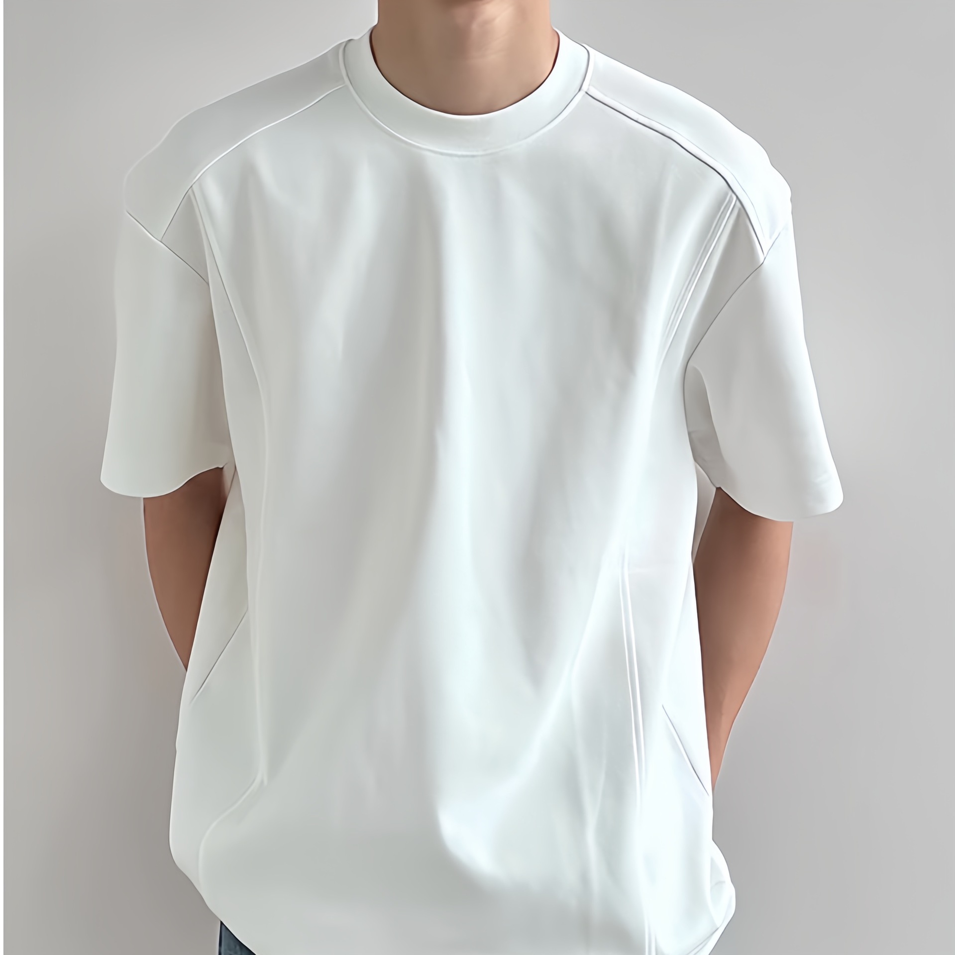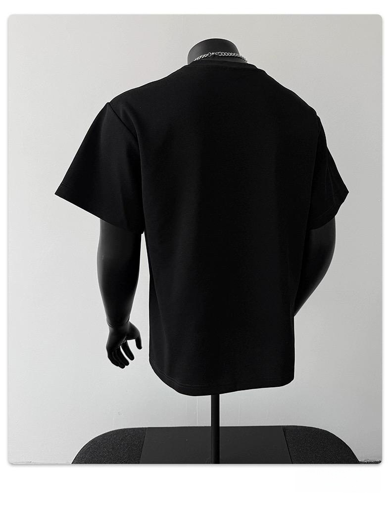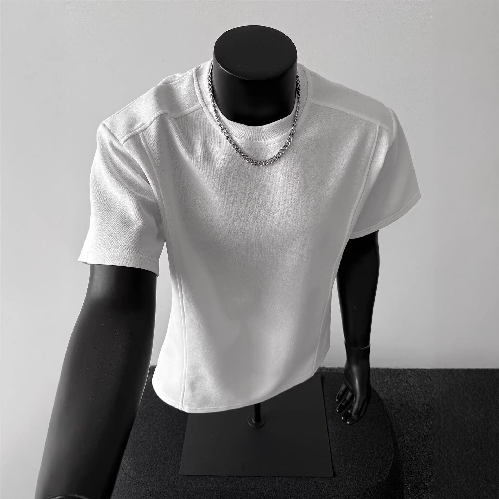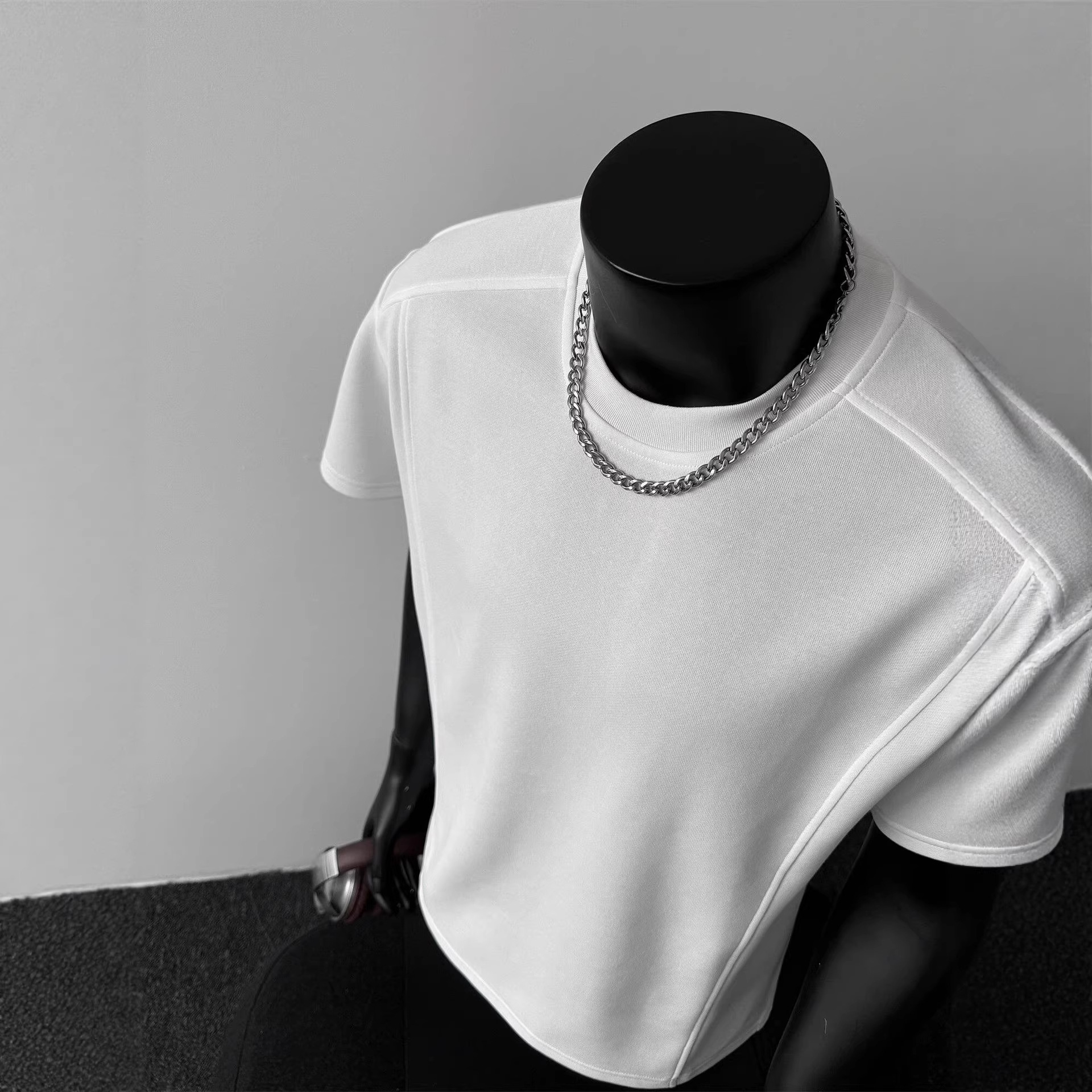 2026夏季新款轻奢痞帅男装正肩挺阔高级感短袖T恤男拼接圆领上衣