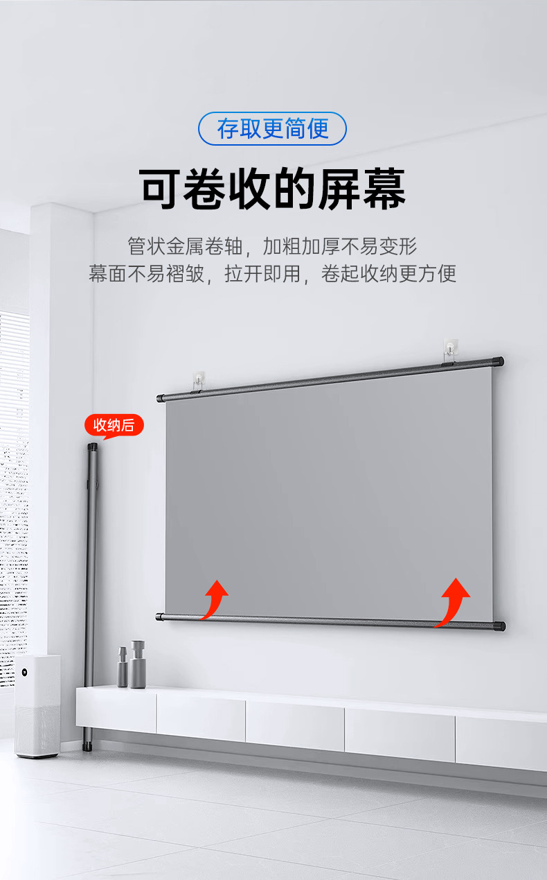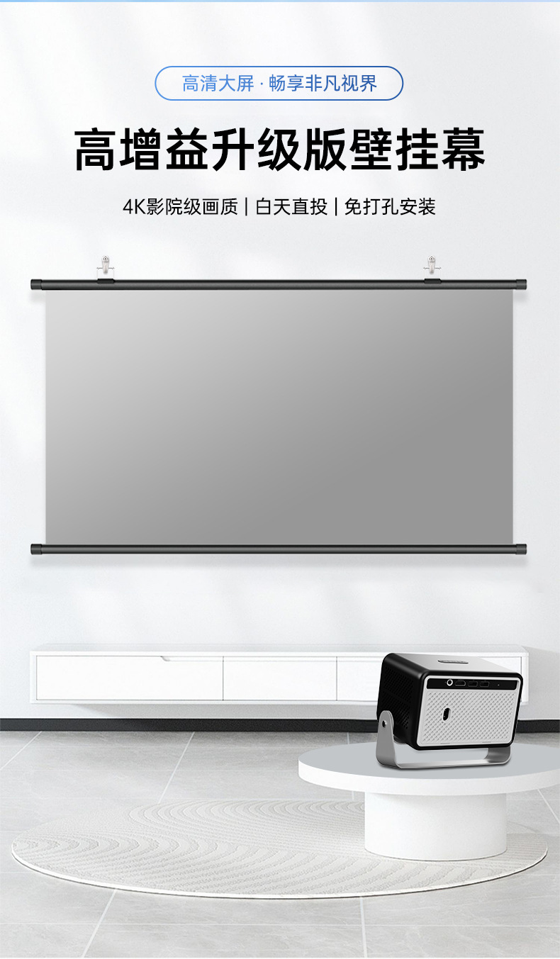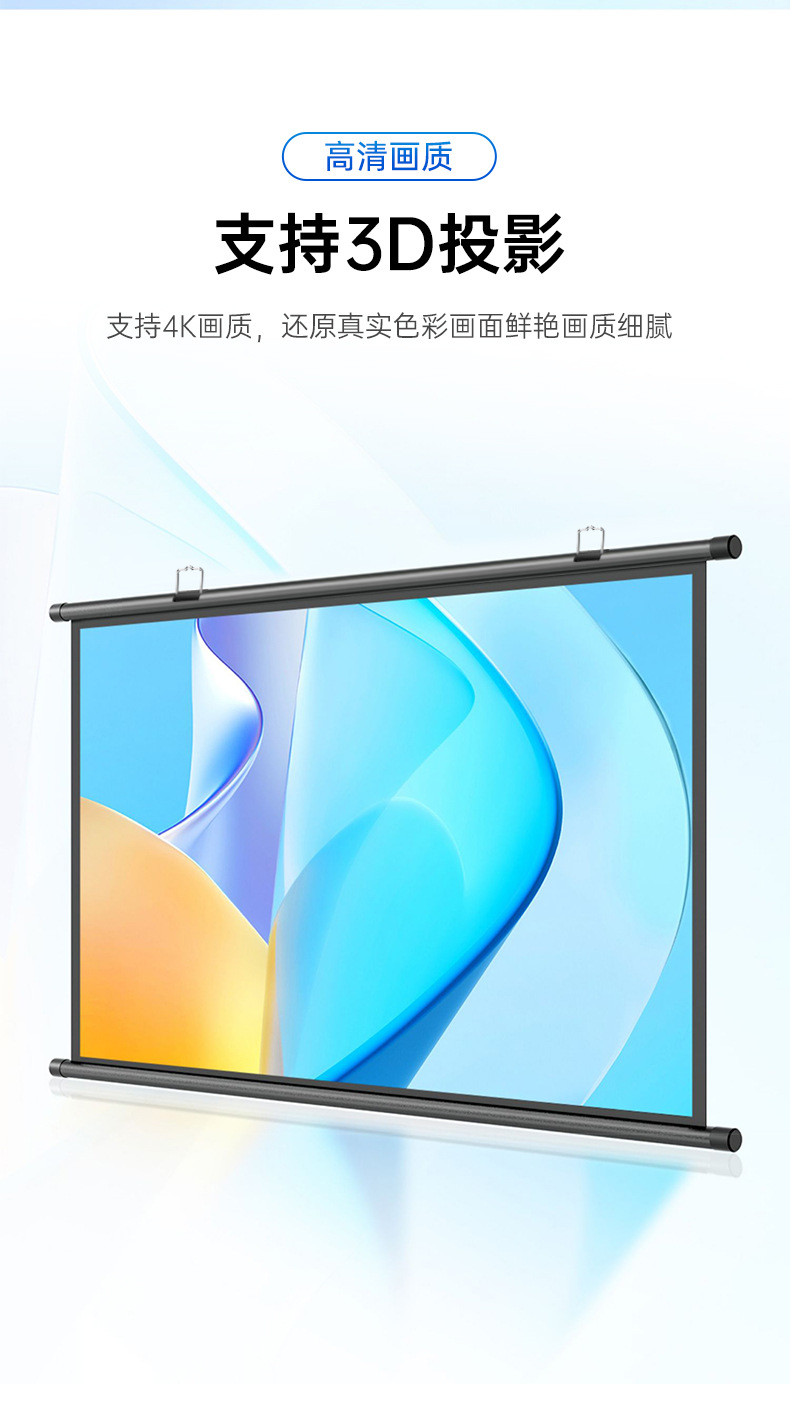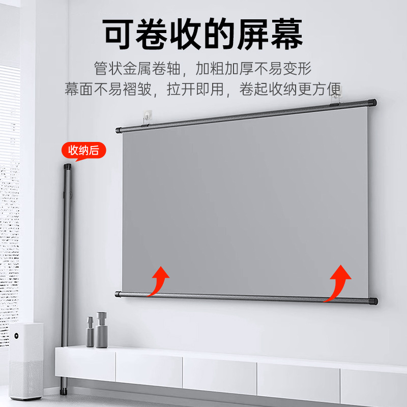 投影幕布家用4K超高清金属抗光幕免打孔客厅卧室办公便携壁挂幕布