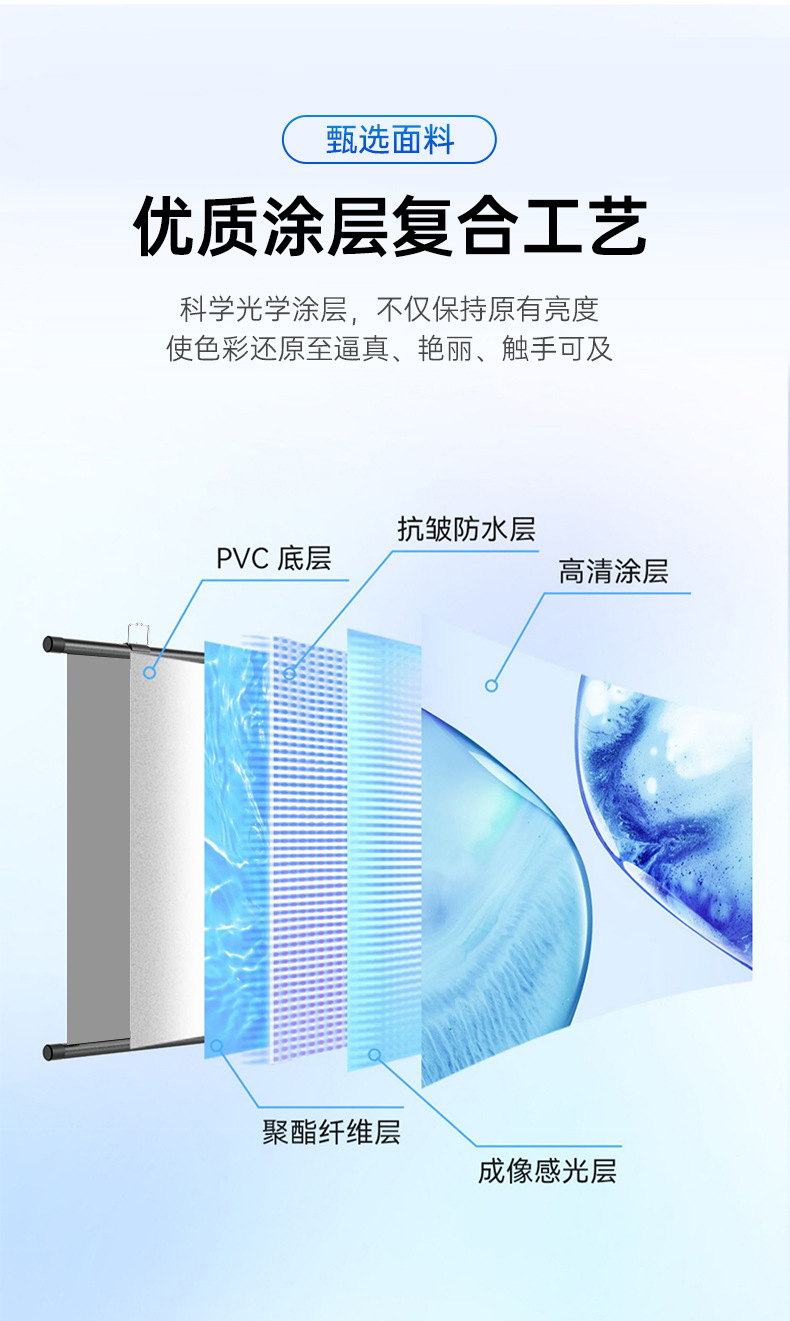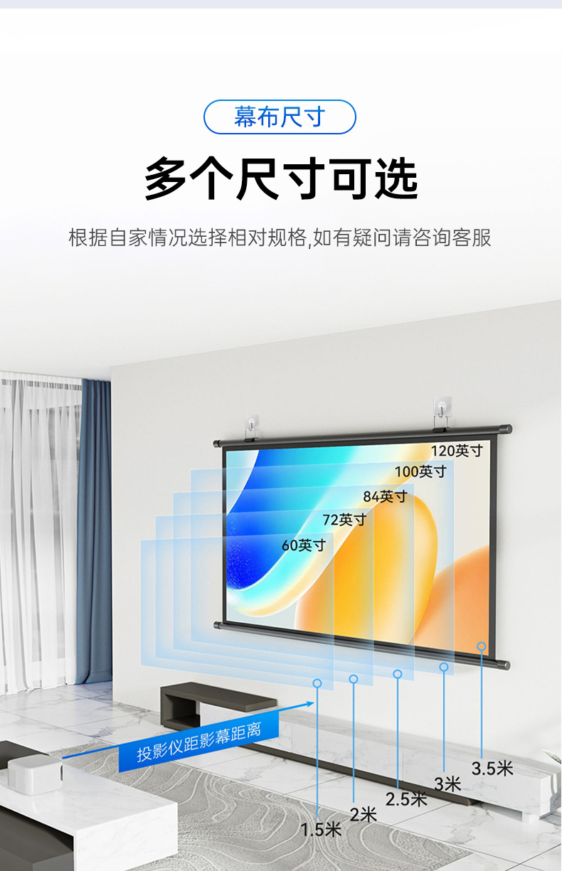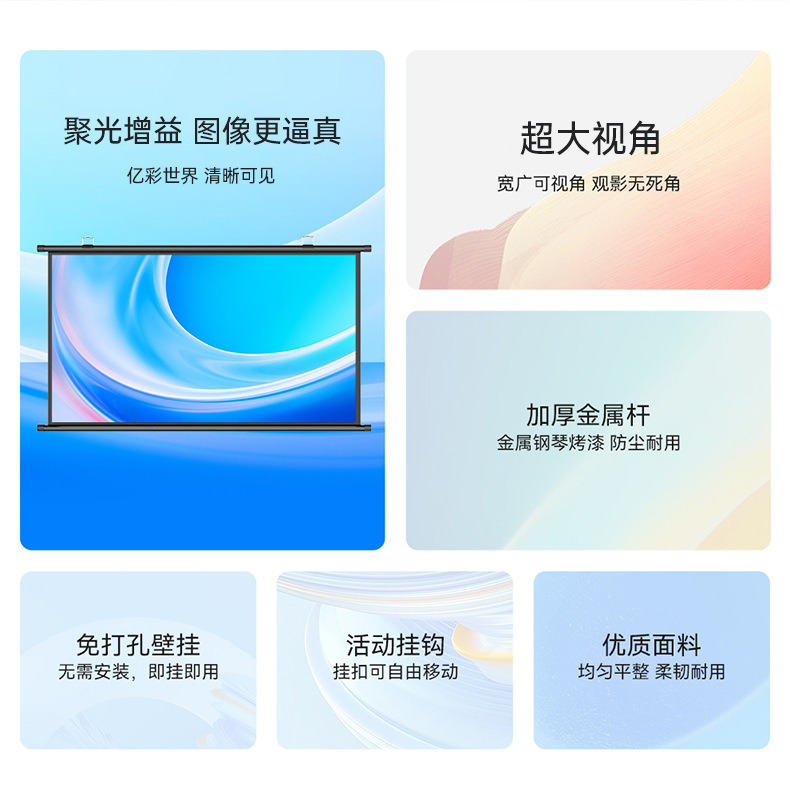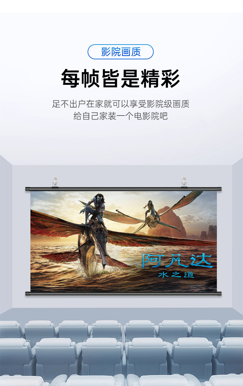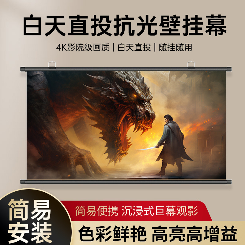 投影幕布家用4K超高清金属抗光幕免打孔客厅卧室办公便携壁挂幕布
