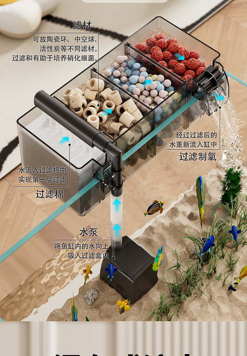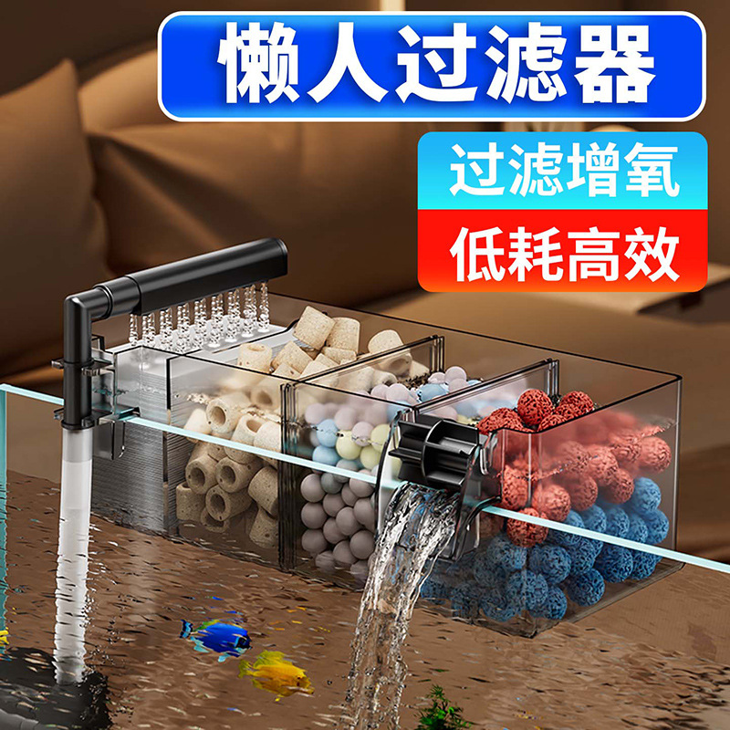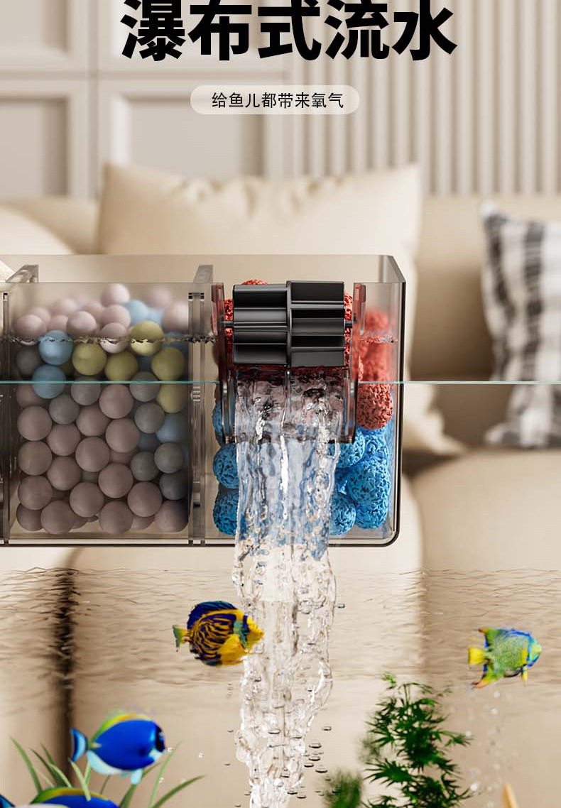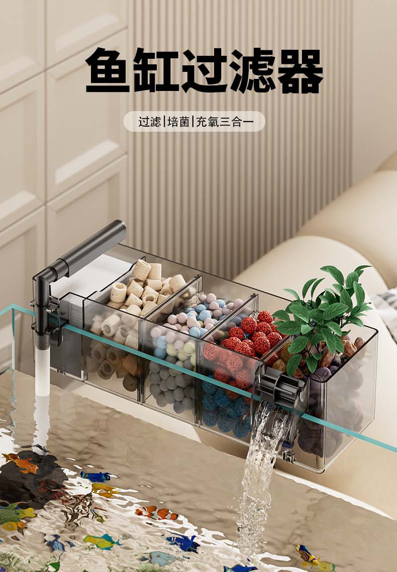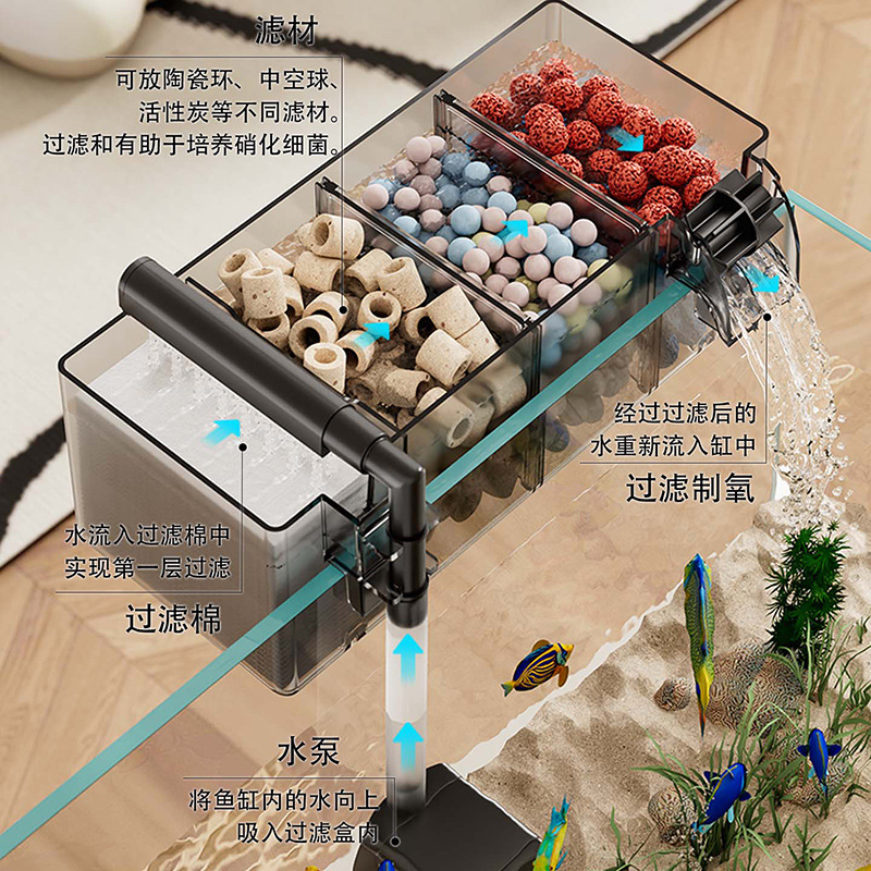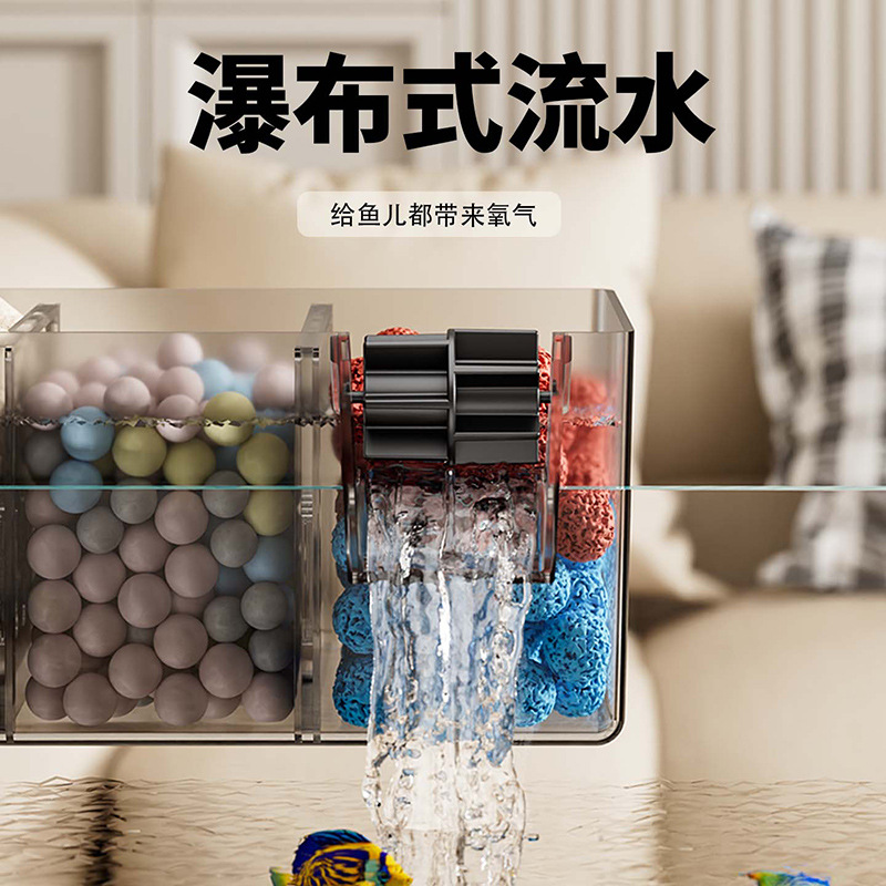 鱼缸新过滤器三合一净水循环净水循环小型瀑布式壁挂多格增氧循环