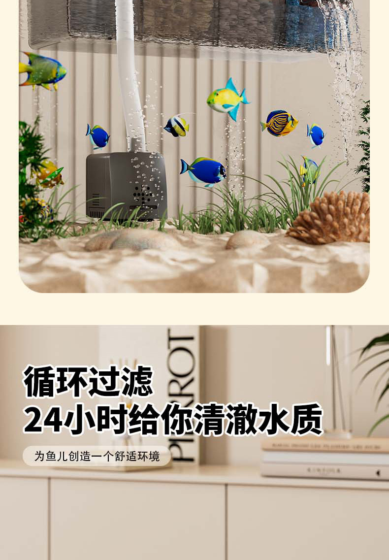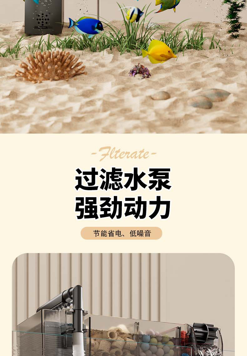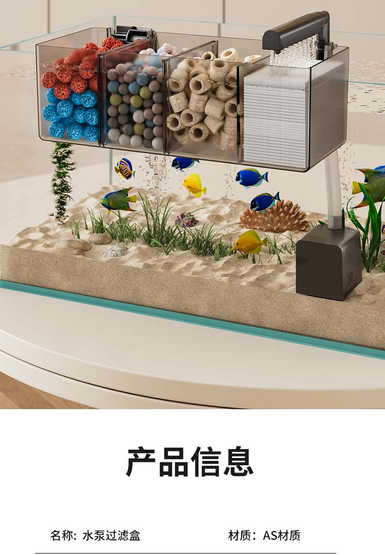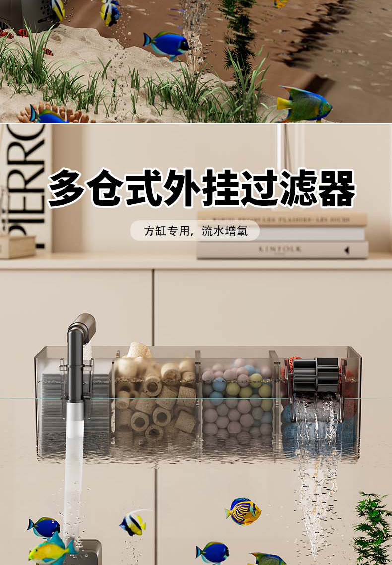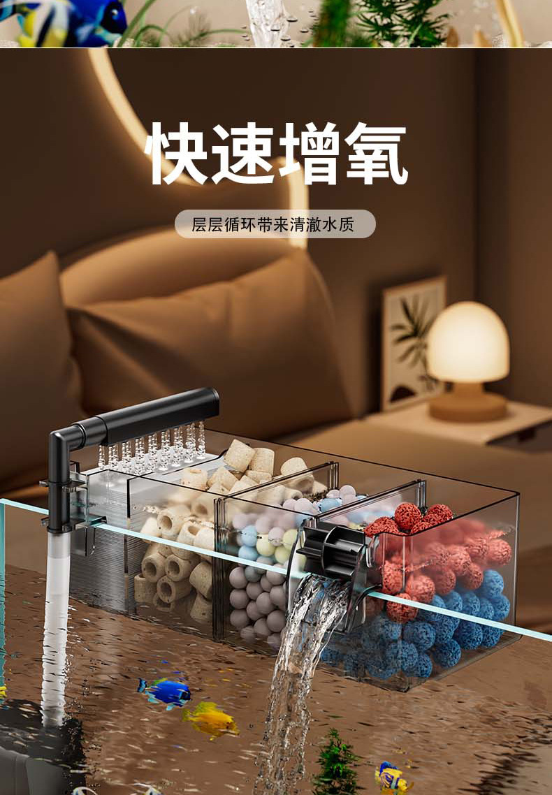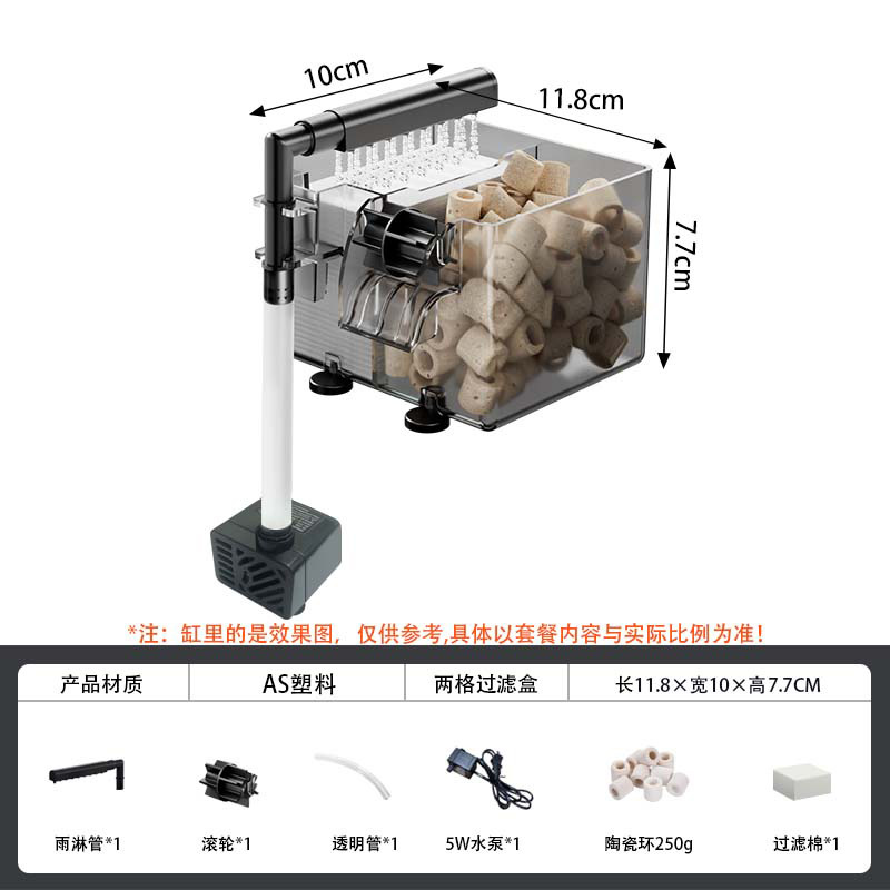 鱼缸新过滤器三合一净水循环净水循环小型瀑布式壁挂多格增氧循环