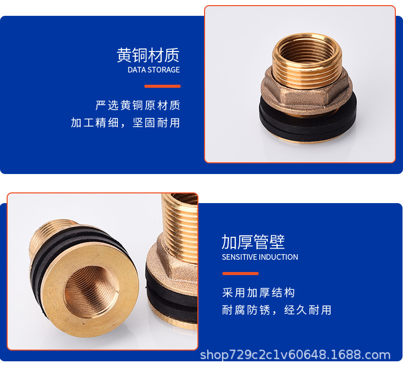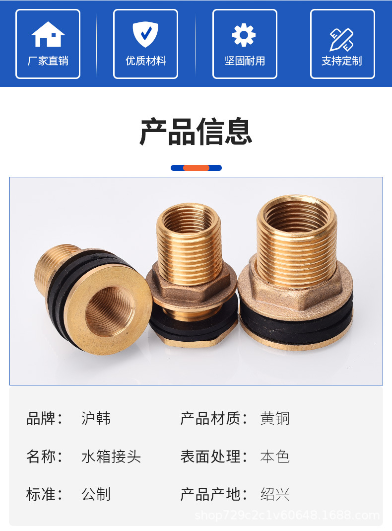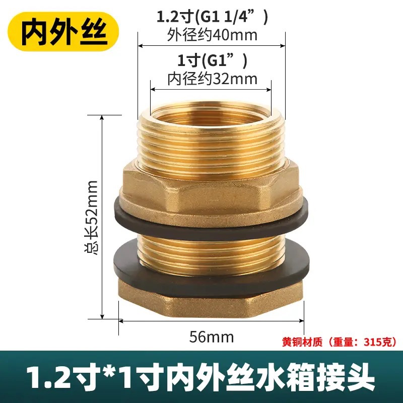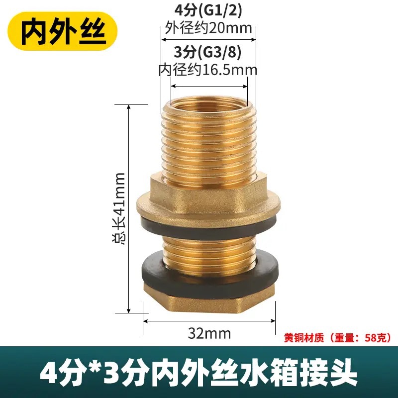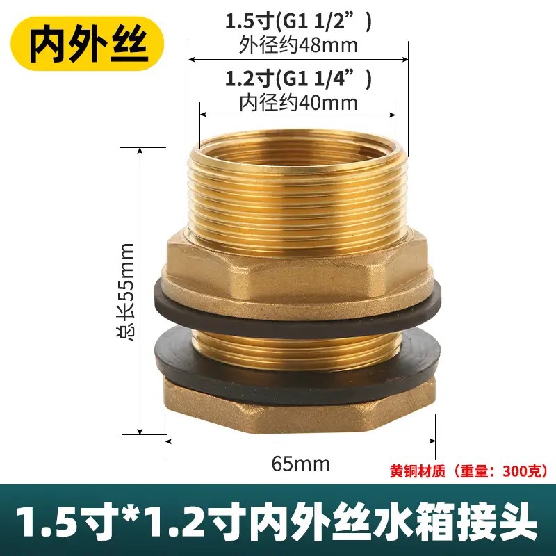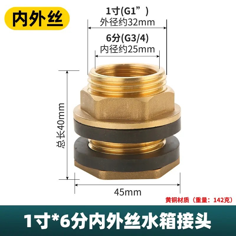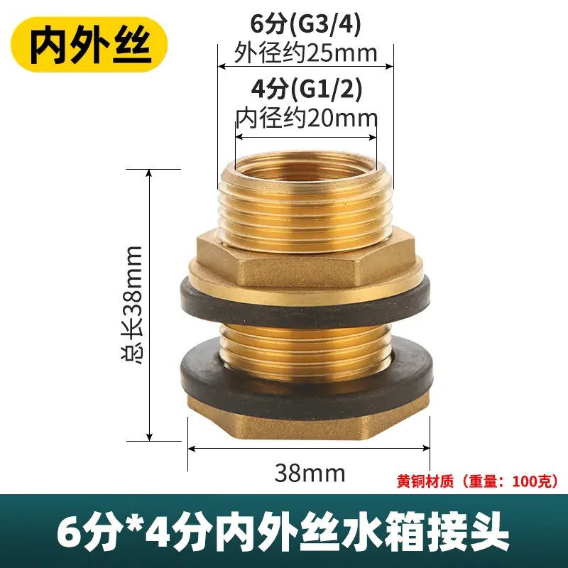 黄铜内外丝水箱接头3/4/6分1寸接口加厚加长水塔水池鱼缸水桶配件