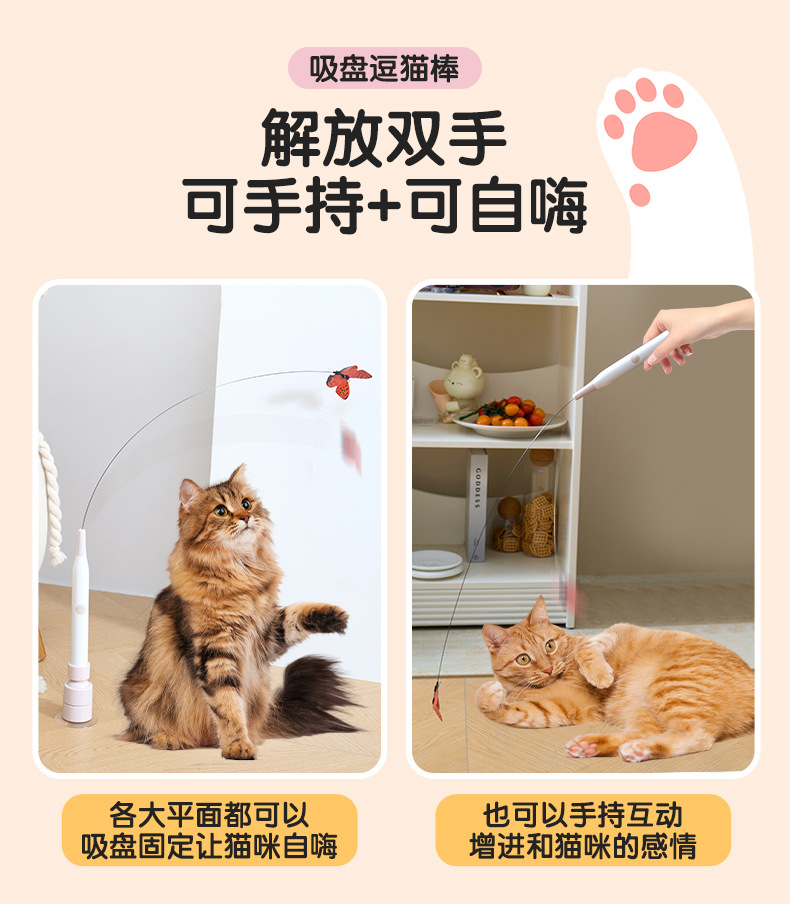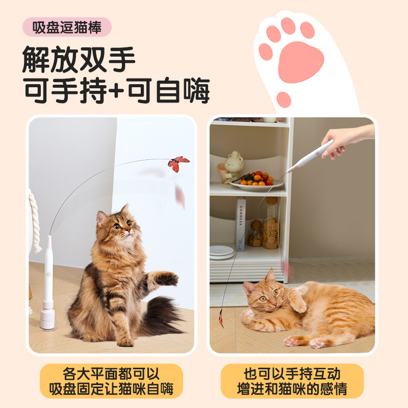 猫咪电动玩具自嗨解闷自动逗猫可吸附可手持强力吸盘长杆充电逗猫