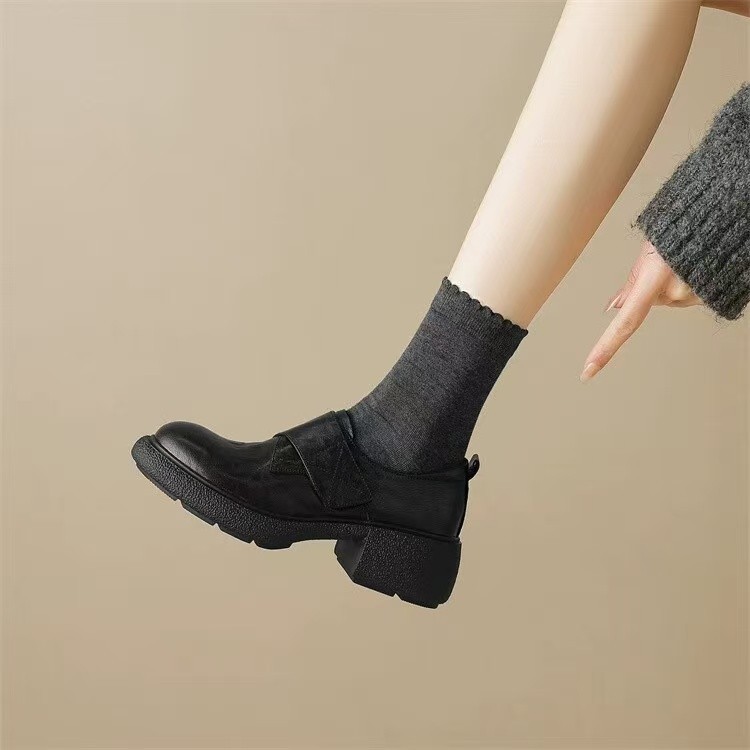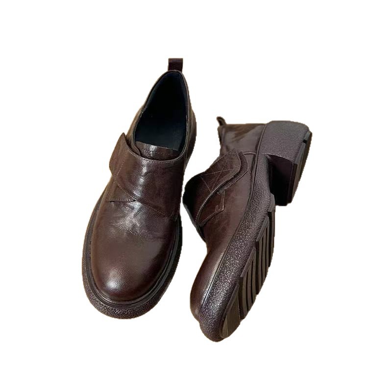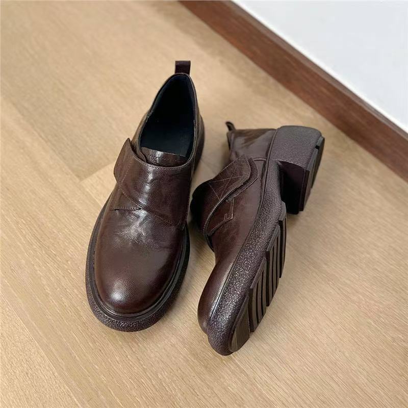 超软皮一脚蹬乐福鞋女厚底魔术贴小皮鞋通勤高级感粗跟单鞋懒人鞋